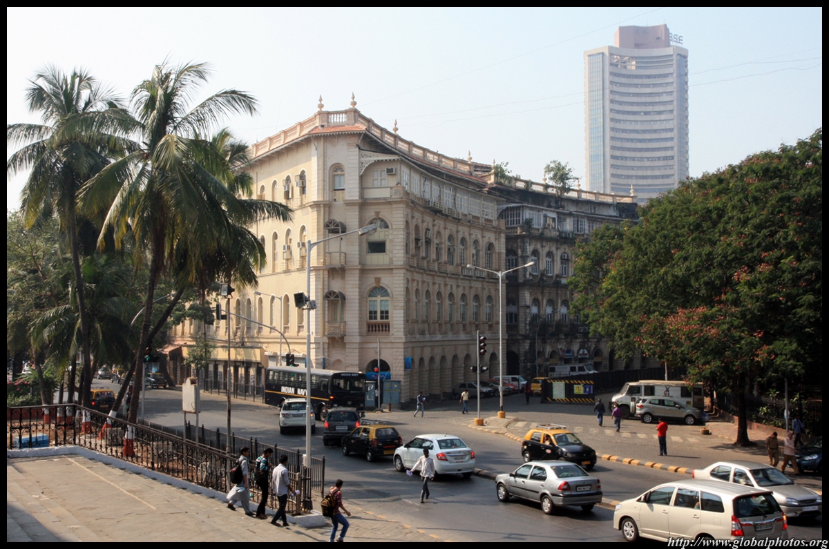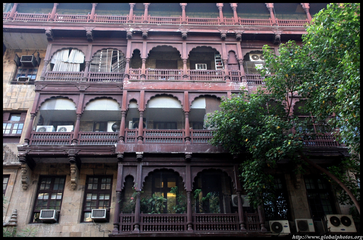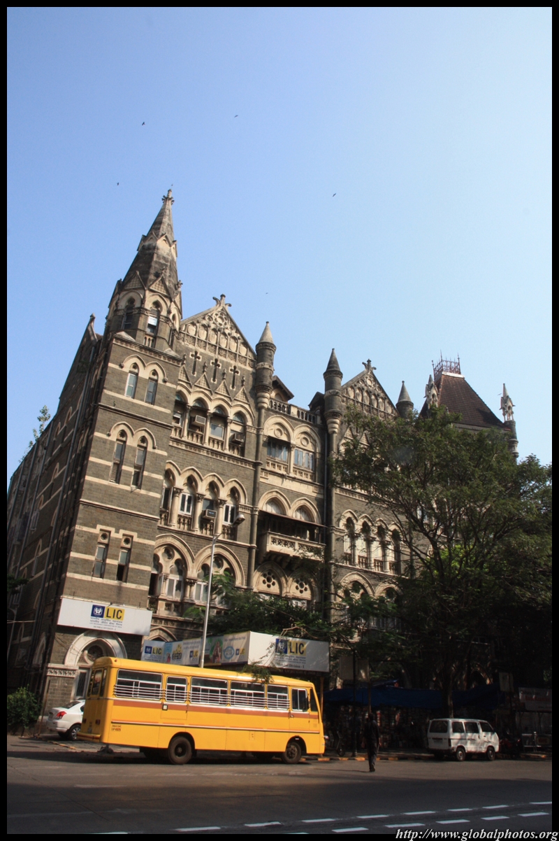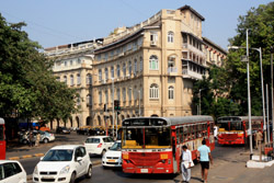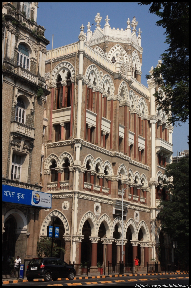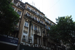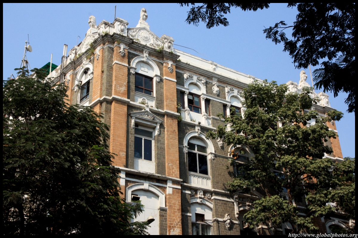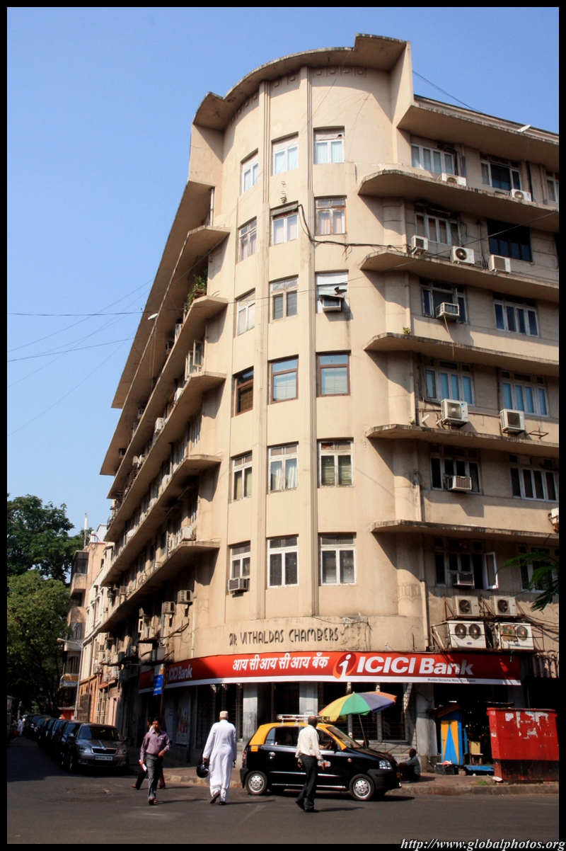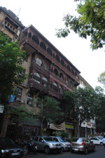 D Naoroji Road used to run parallel to the ramparts and was widened in 1865 to connect the public buildings near Flora Fountain with Victoria Terminus. On the western side of the street are well-laid-out buildings while the eastern side shows a more organic, chaotic side of the city. These buildings on the western side were built under strict design controls in 1896, with mandatory arcades and government approval of the designs.
