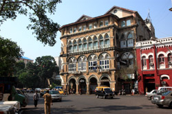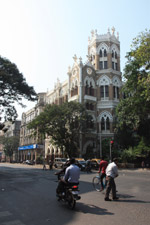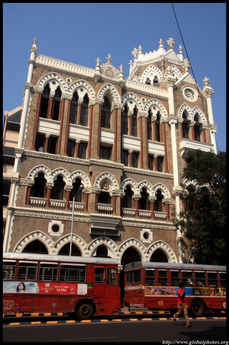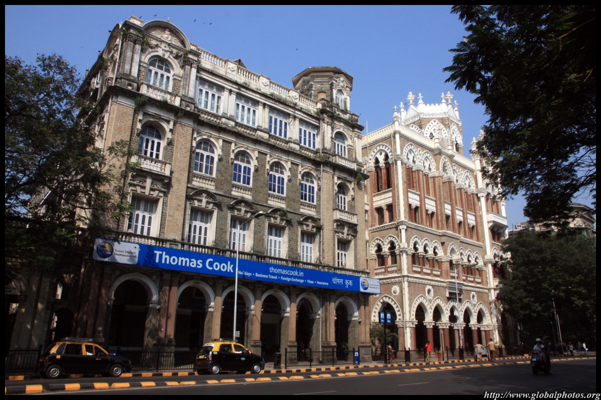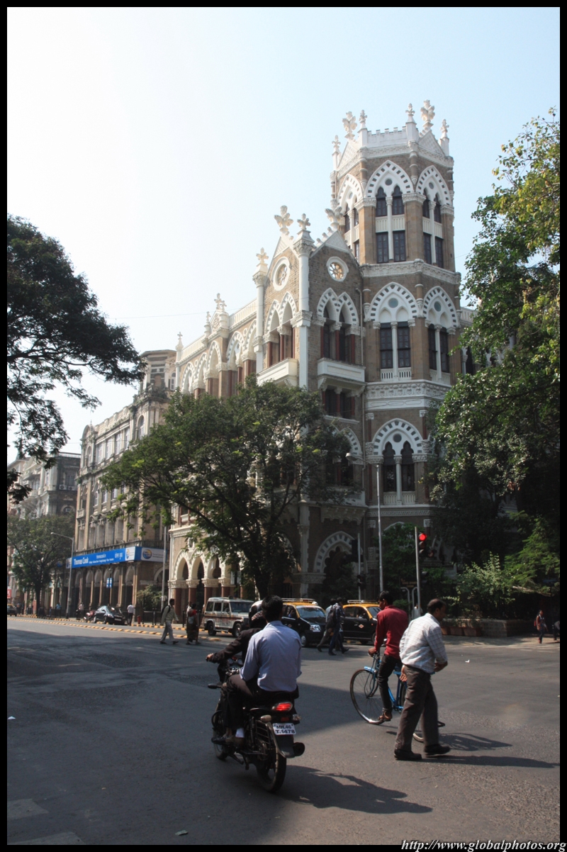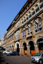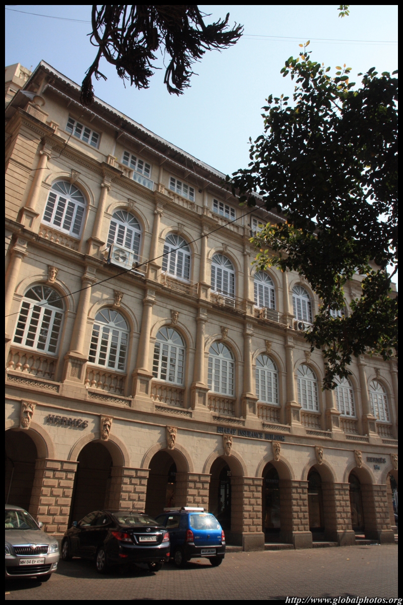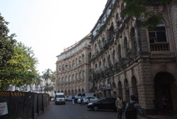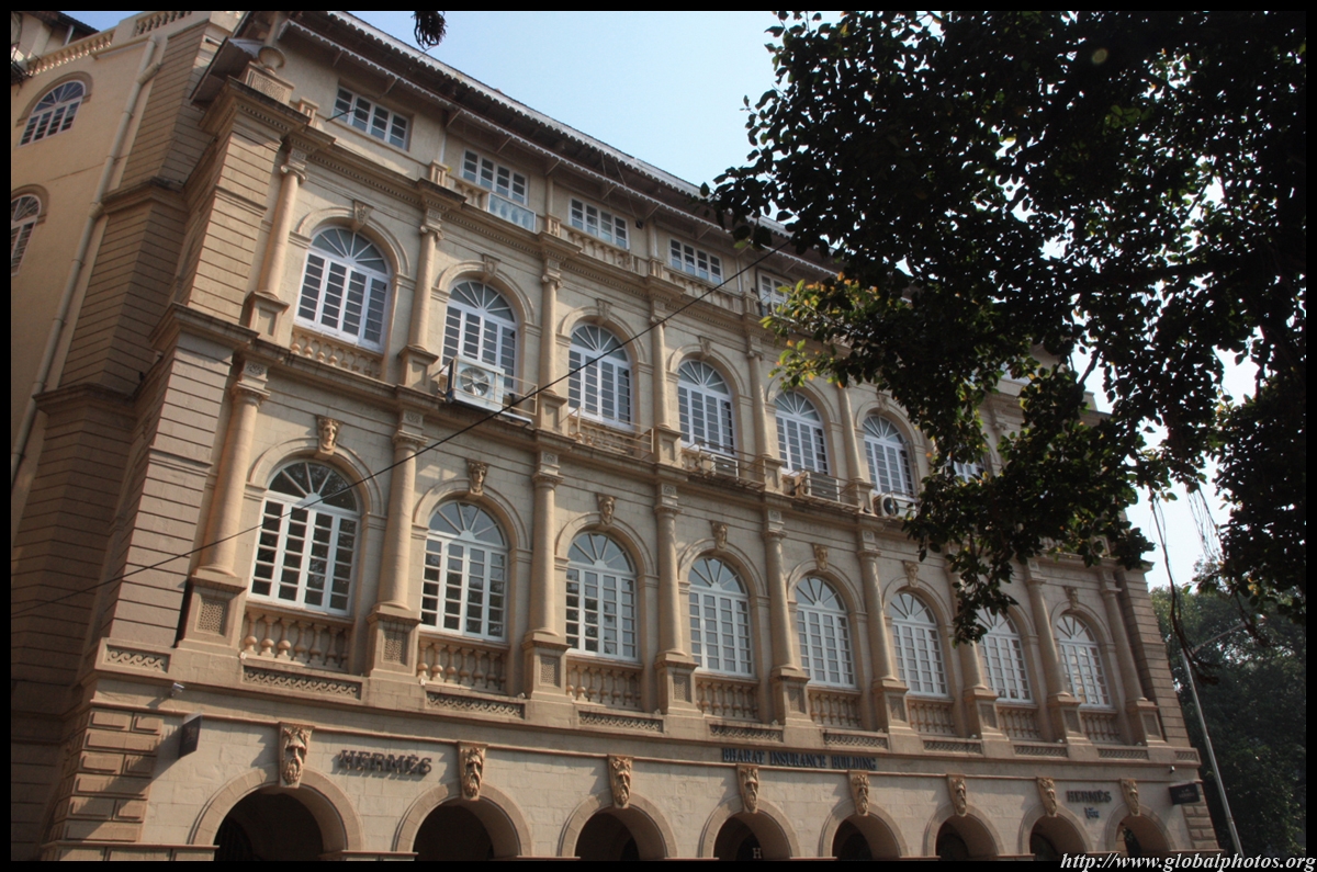D Naoroji Road used to run parallel to the ramparts and was widened in 1865 to connect the public buildings near Flora Fountain with Victoria Terminus. On the western side of the street are well-laid-out buildings while the eastern side shows a more organic, chaotic side of the city. These buildings on the western side were built under strict design controls in 1896, with mandatory arcades and government approval of the designs.