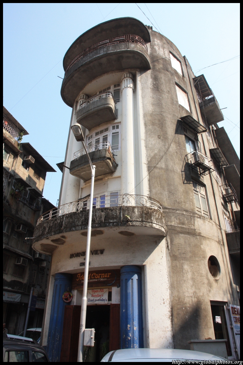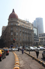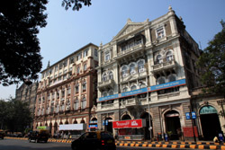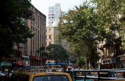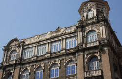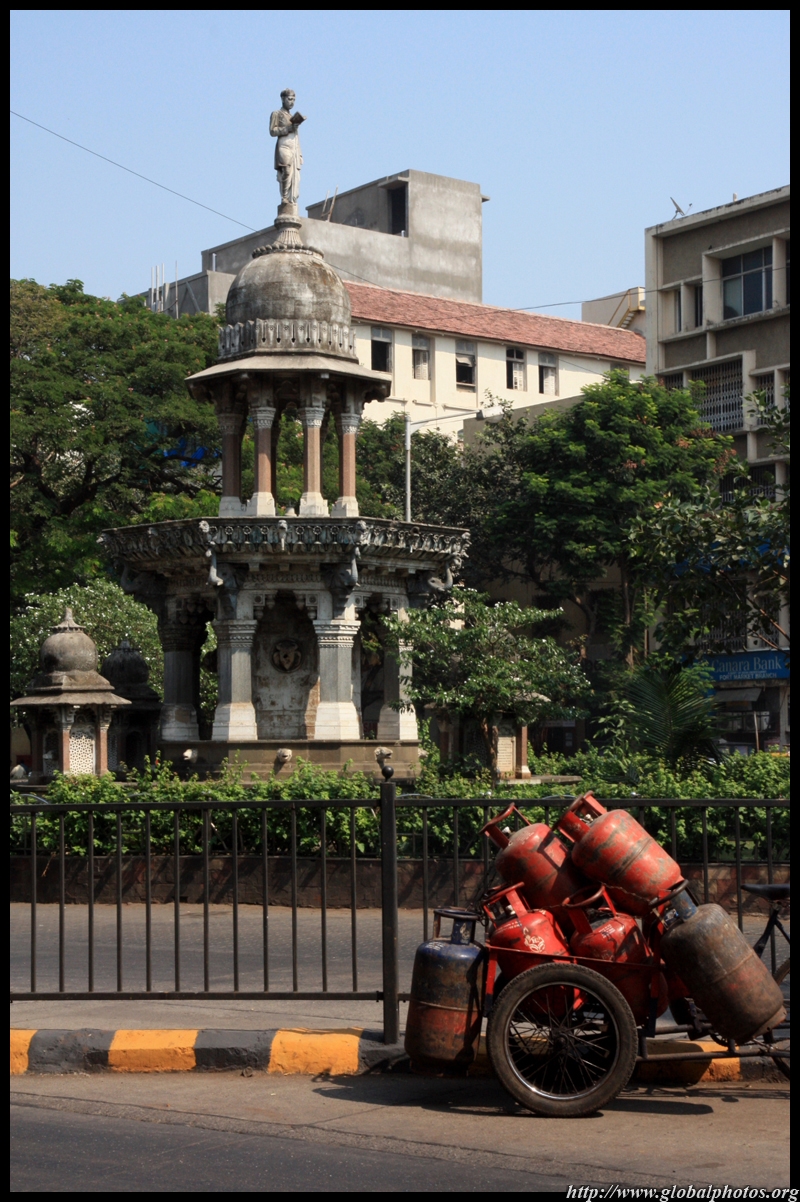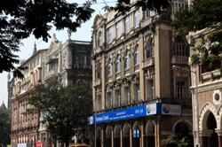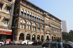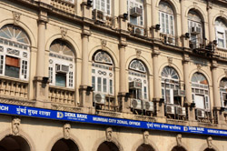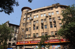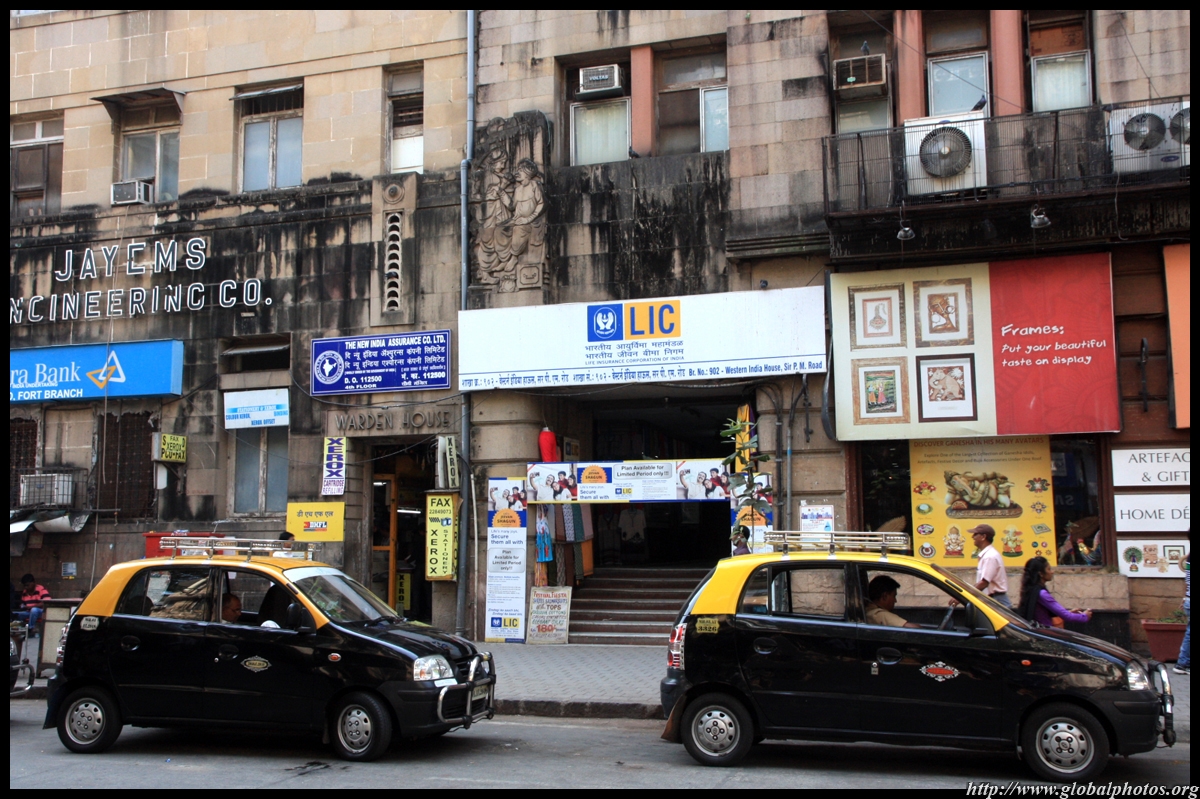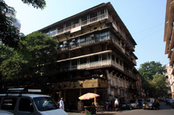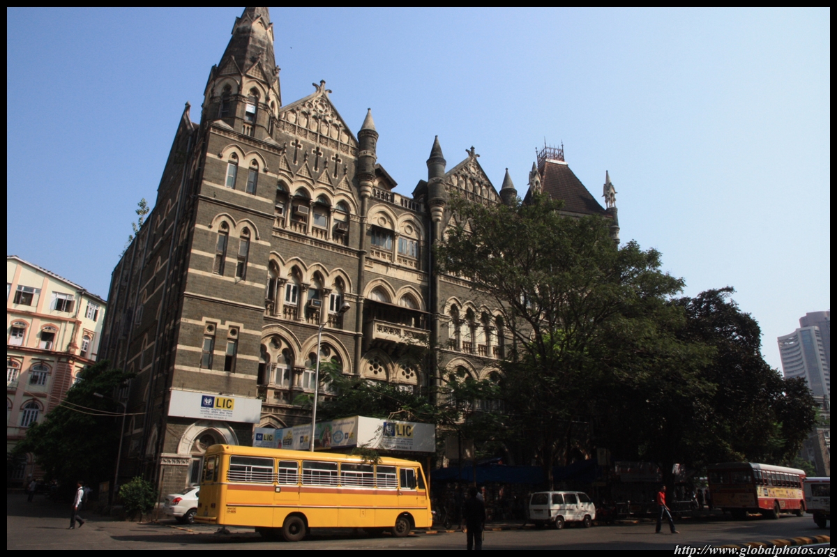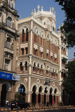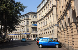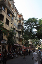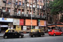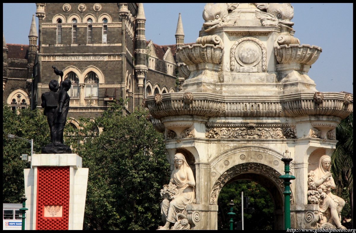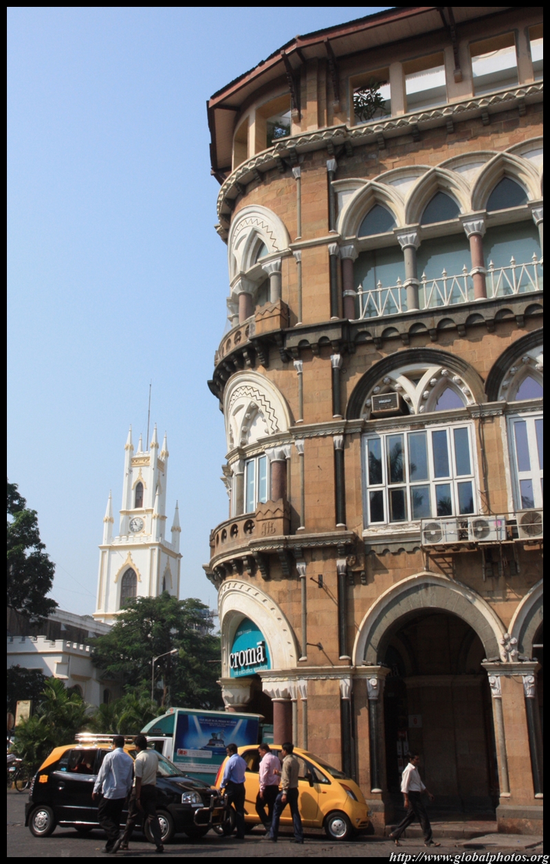 D Naoroji Road used to run parallel to the ramparts and was widened in 1865 to connect the public buildings near Flora Fountain with Victoria Terminus. On the western side of the street are well-laid-out buildings while the eastern side shows a more organic, chaotic side of the city. These buildings on the western side were built under strict design controls in 1896, with mandatory arcades and government approval of the designs.