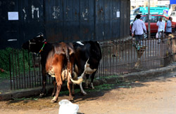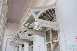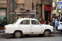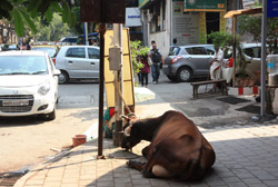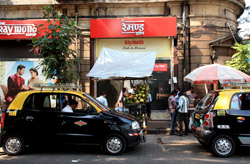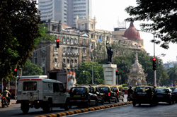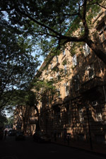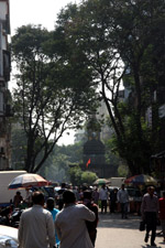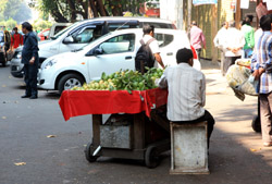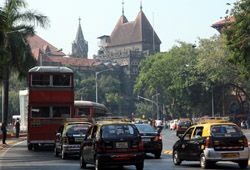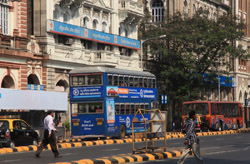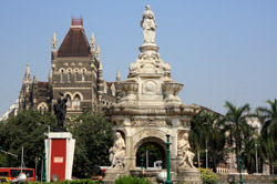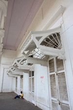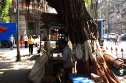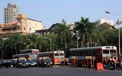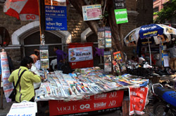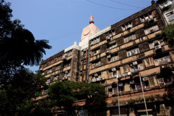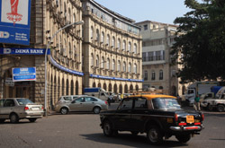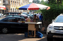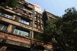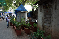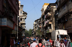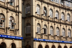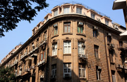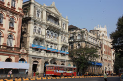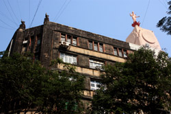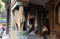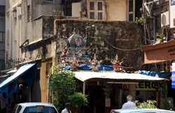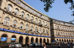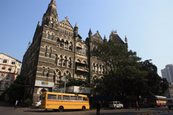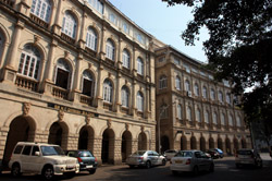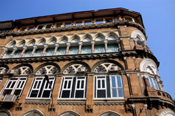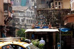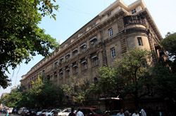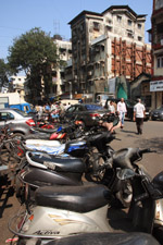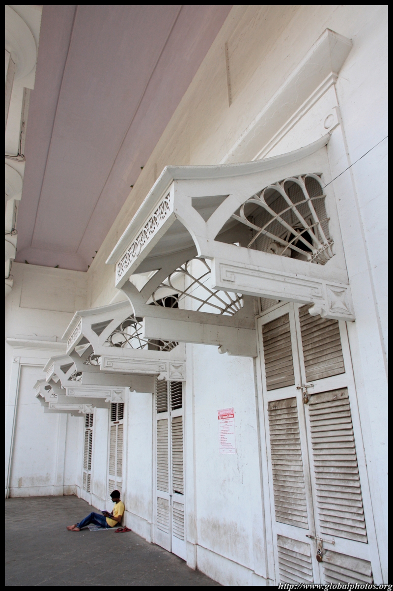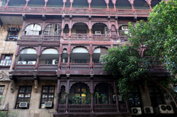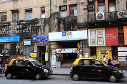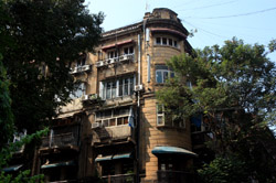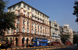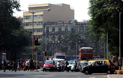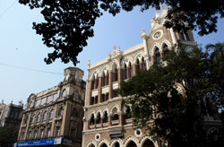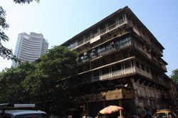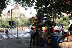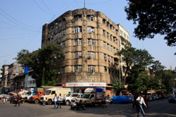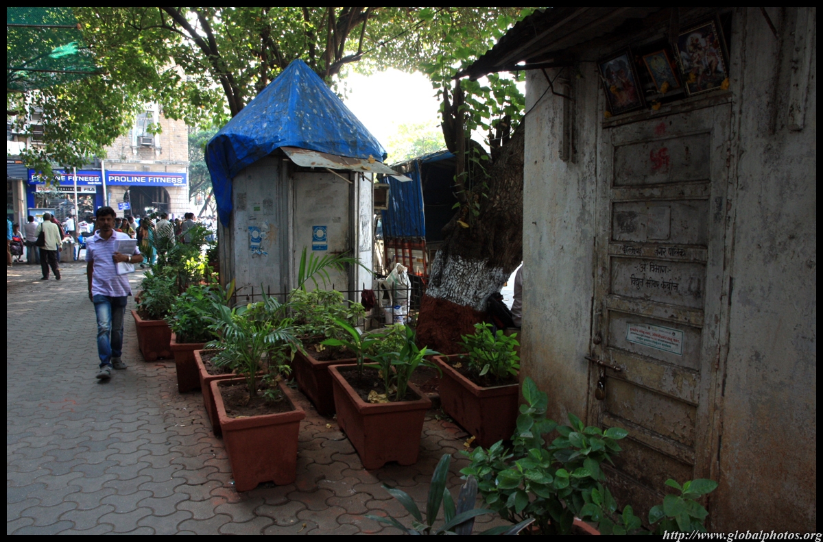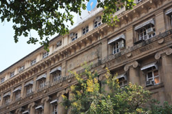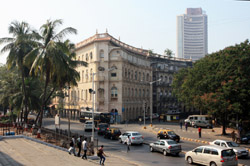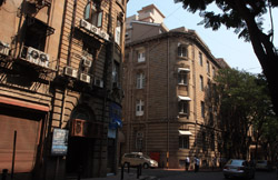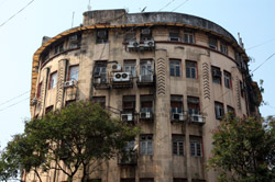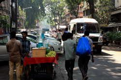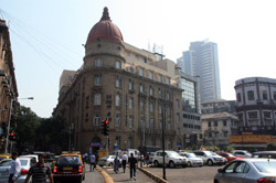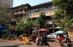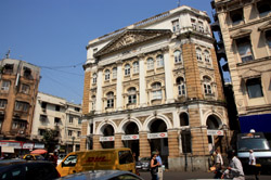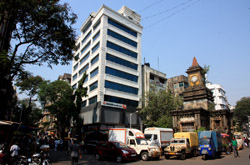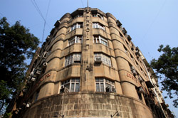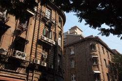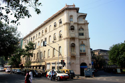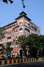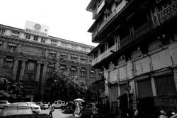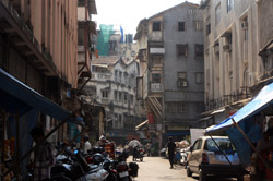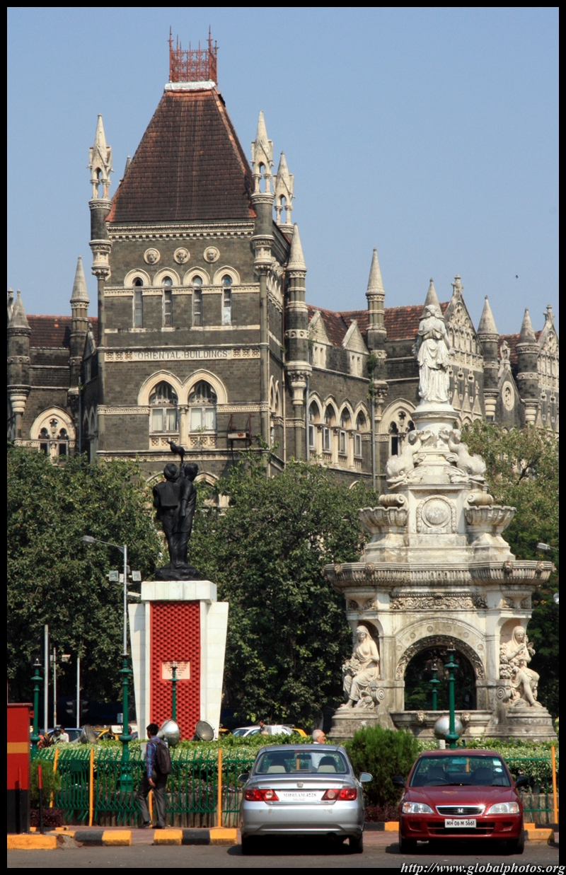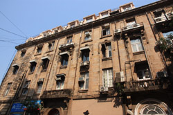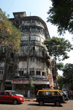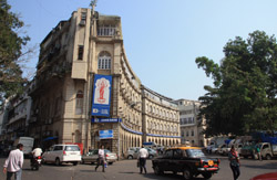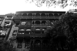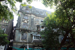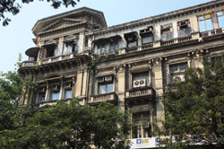 D Naoroji Road used to run parallel to the ramparts and was widened in 1865 to connect the public buildings near Flora Fountain with Victoria Terminus. On the western side of the street are well-laid-out buildings while the eastern side shows a more organic, chaotic side of the city. These buildings on the western side were built under strict design controls in 1896, with mandatory arcades and government approval of the designs.