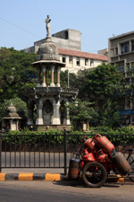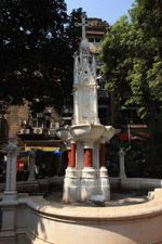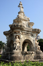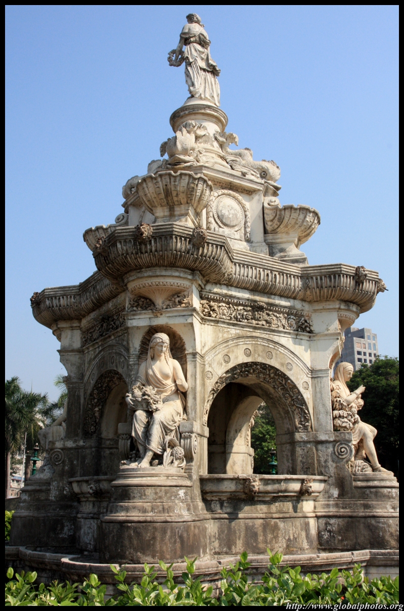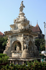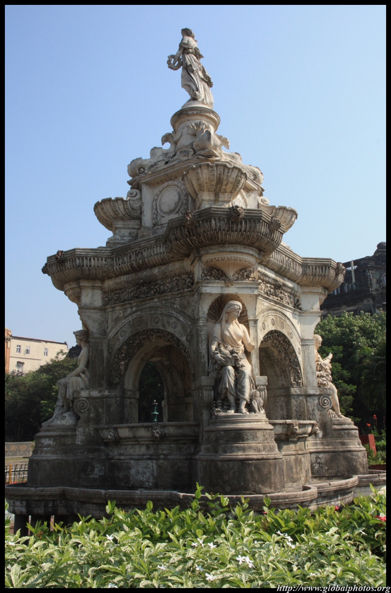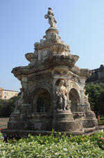 The Flora Fountain is sculpted in Portland stone and was placed here in 1869. At a cost of 9000 pounds sterling, it originally marked a main gate into the Fort. Unfortunately, the surrounding landscape has been blighted by a parking lot.