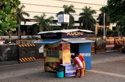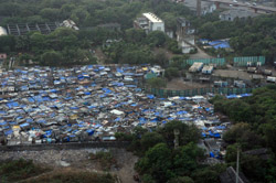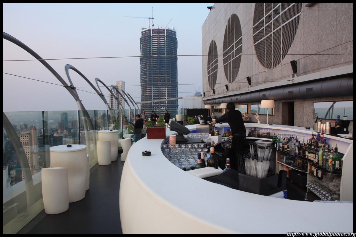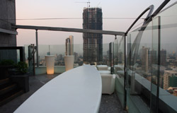 The outdoor bar opens at 5:30pm, just in time for sunset during the dry season. Below are the slums, which are within walking distance from the hotel.