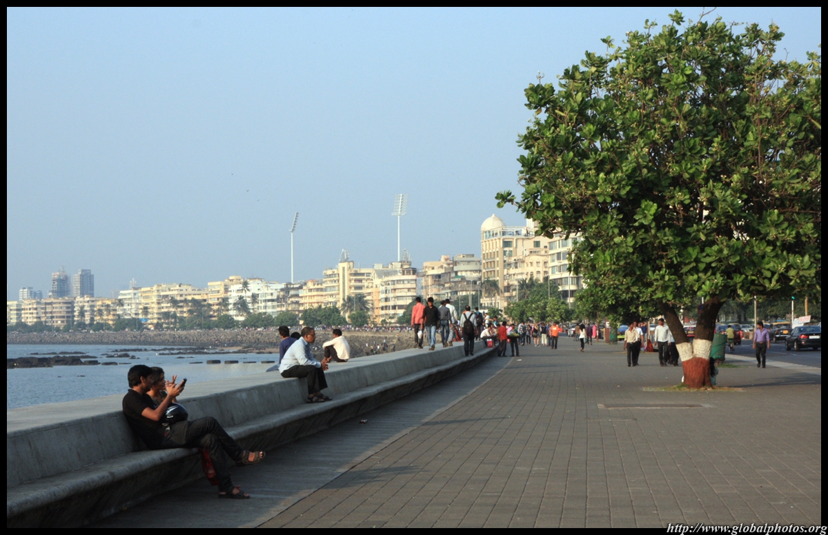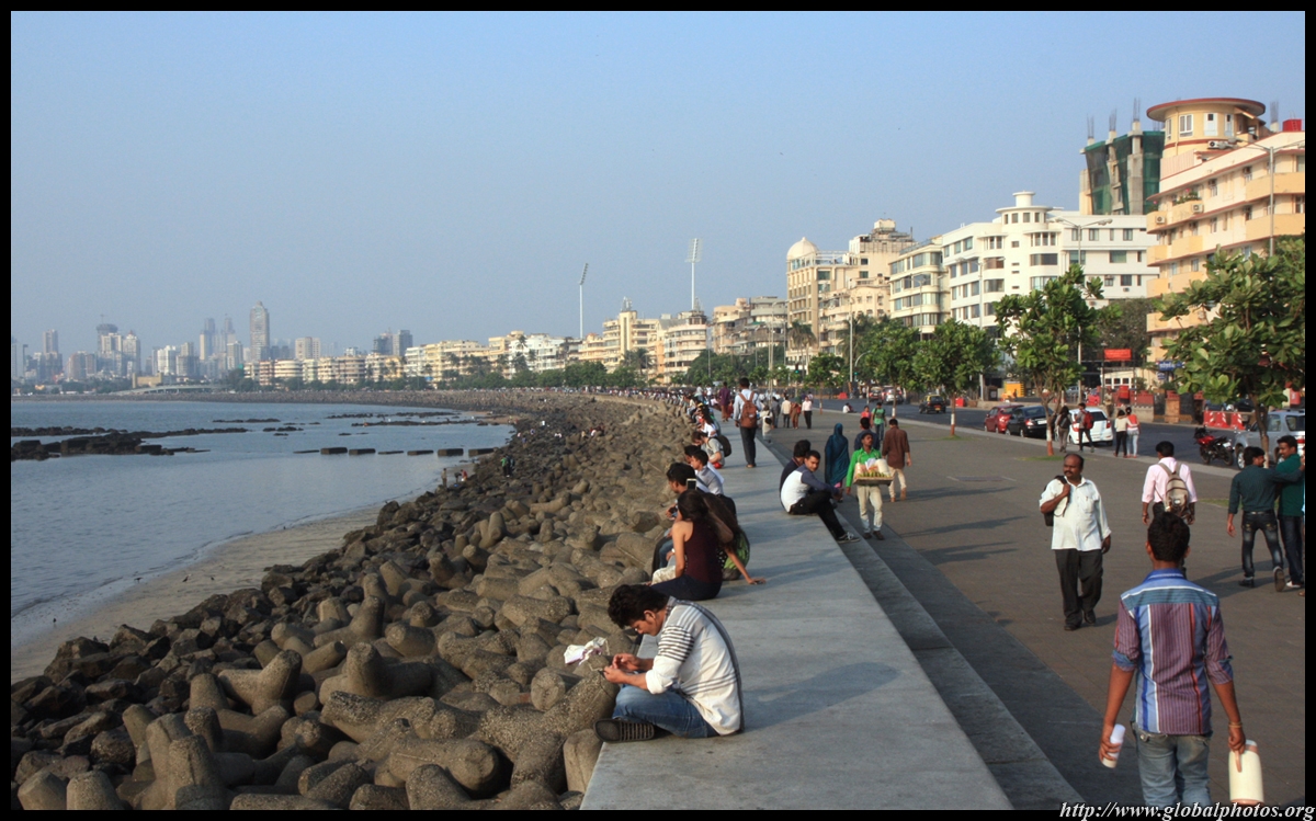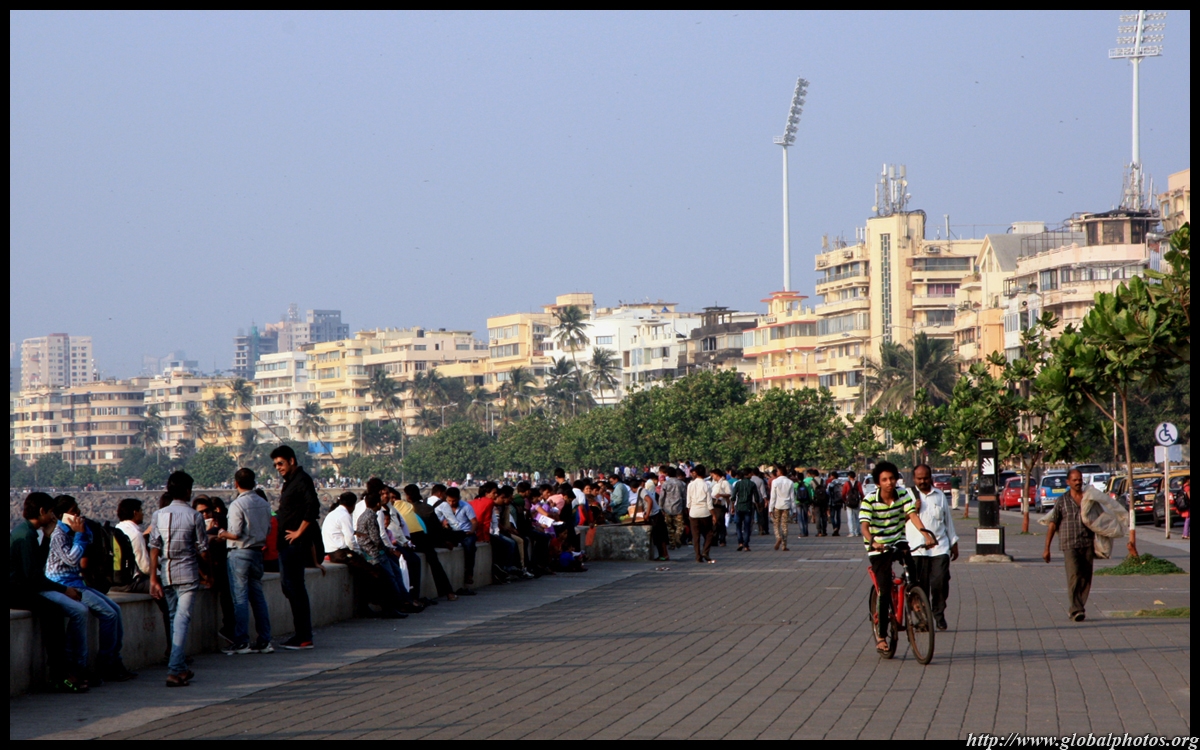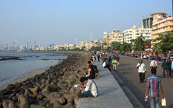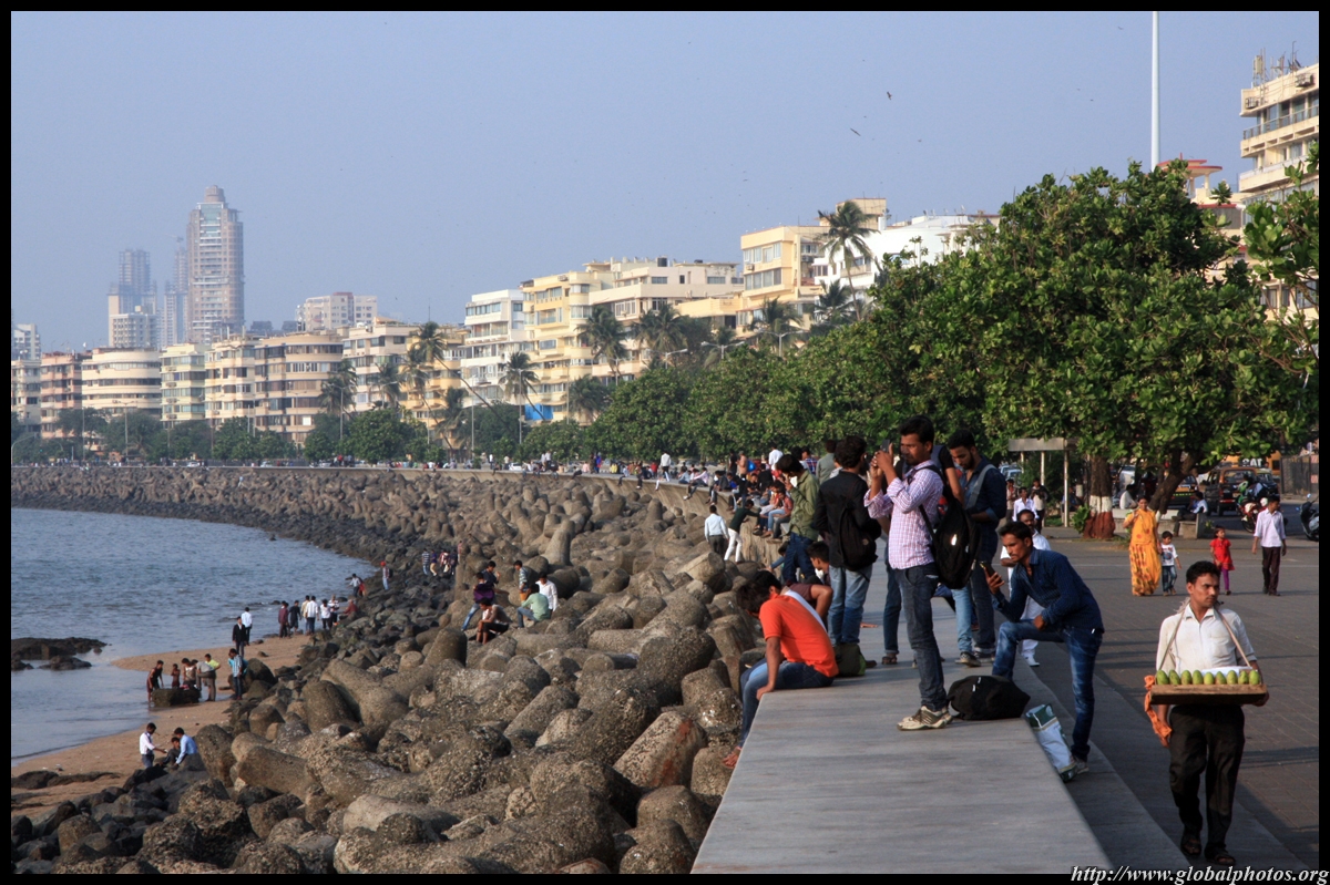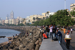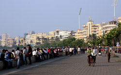 The Queen's Necklace fronts the ocean on the other side of town, about a 20 minute walk from the Taj. Here, the pavement is a bit more spacious and you can sit along the breakwater to watch the sun set.