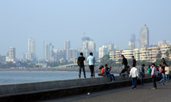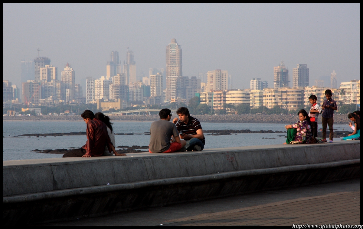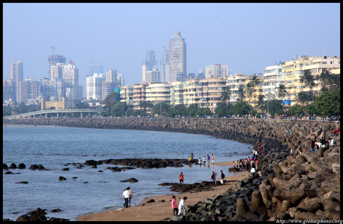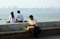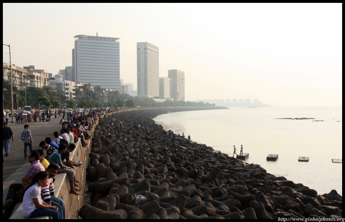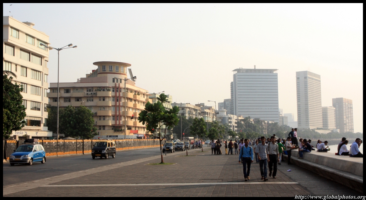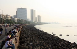 The Queen's Necklace fronts the ocean on the other side of town, about a 20 minute walk from the Taj. Here, the pavement is a bit more spacious and you can sit along the breakwater to watch the sun set.