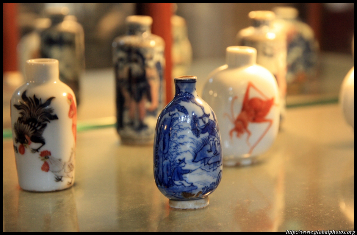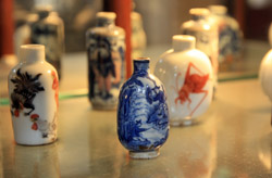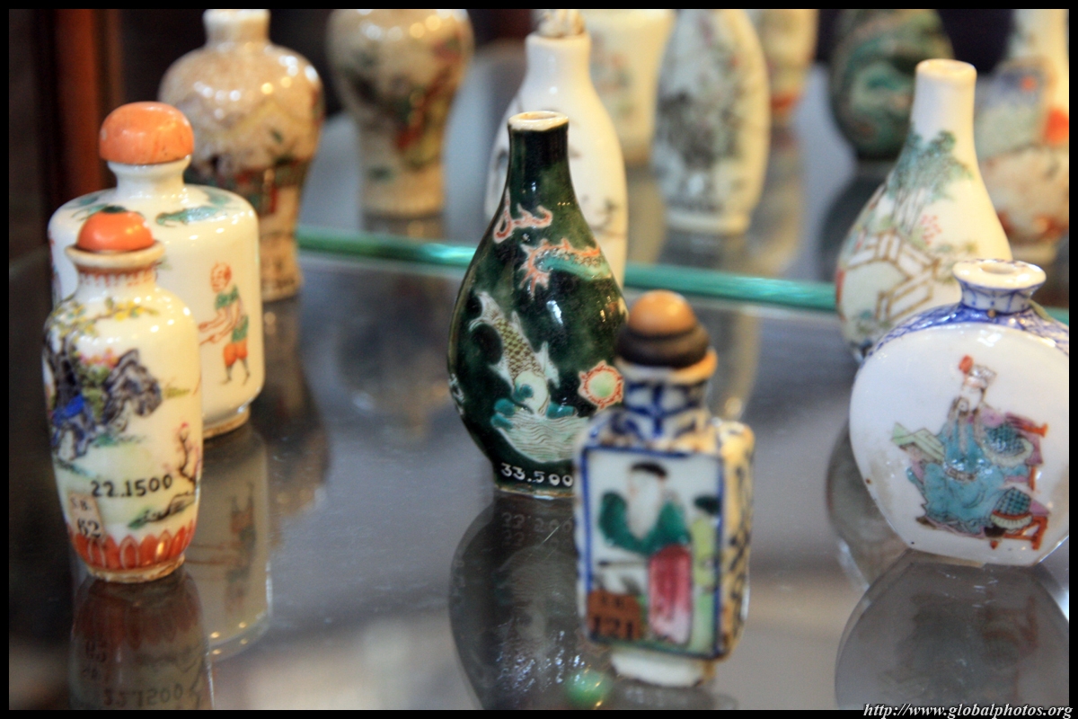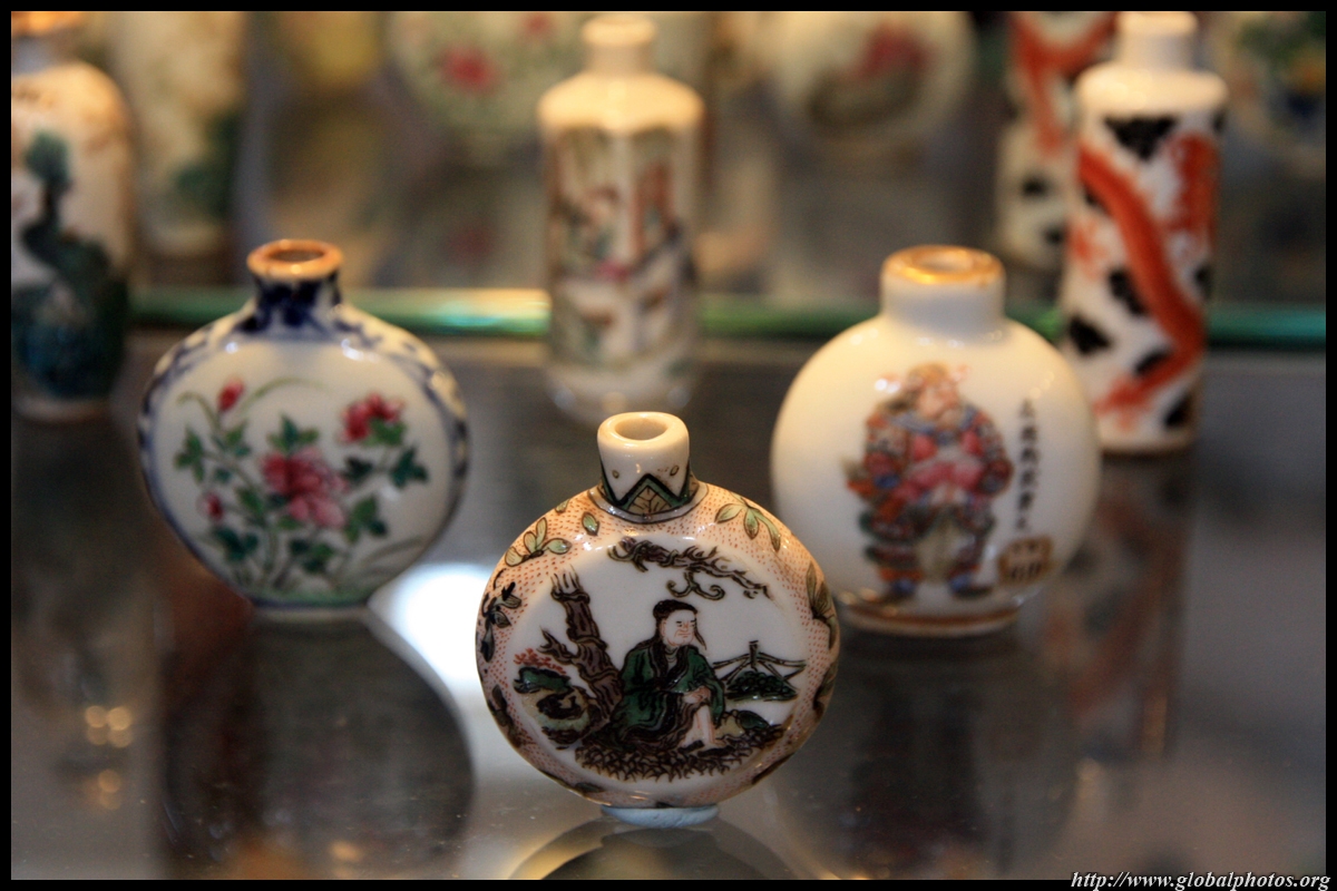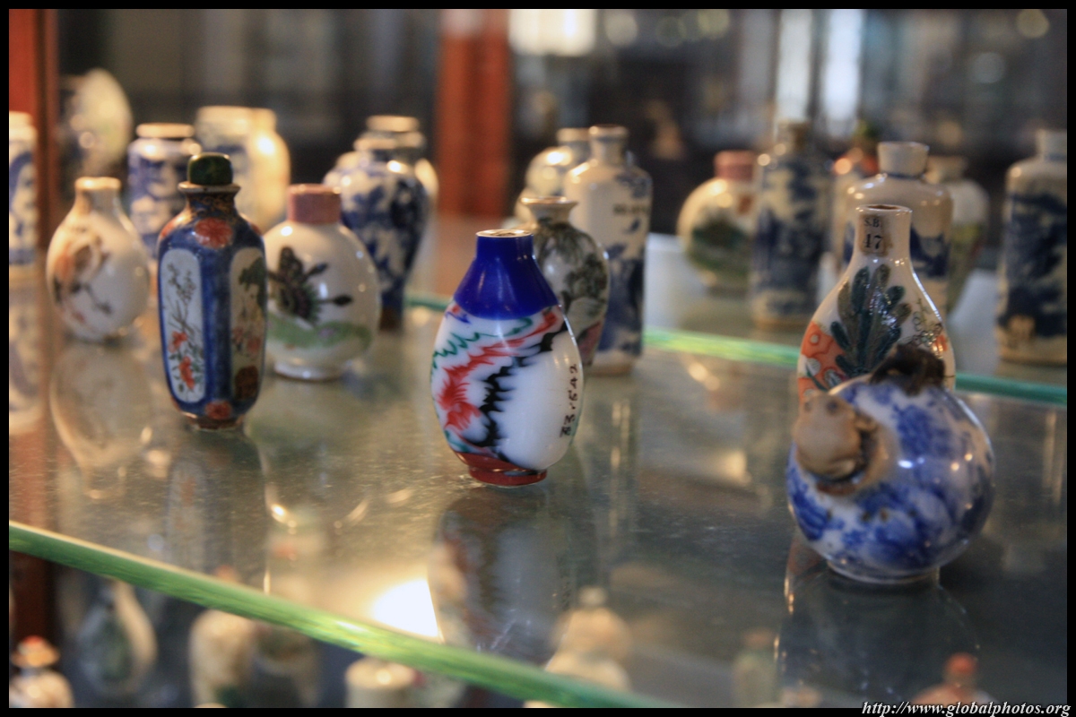 The Chinese and Japanese Gallery occupies part of the top floor. Many snuff bottles from China are on display in a large glass case.