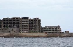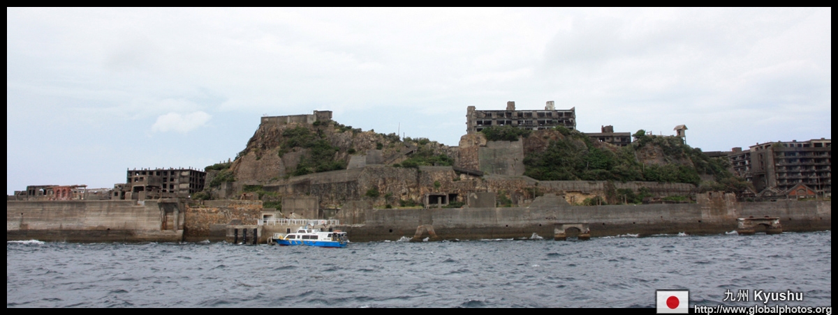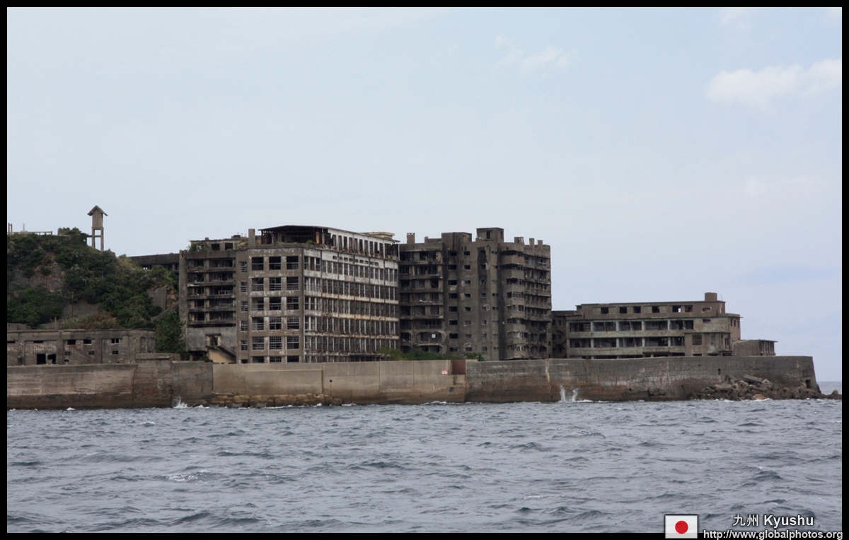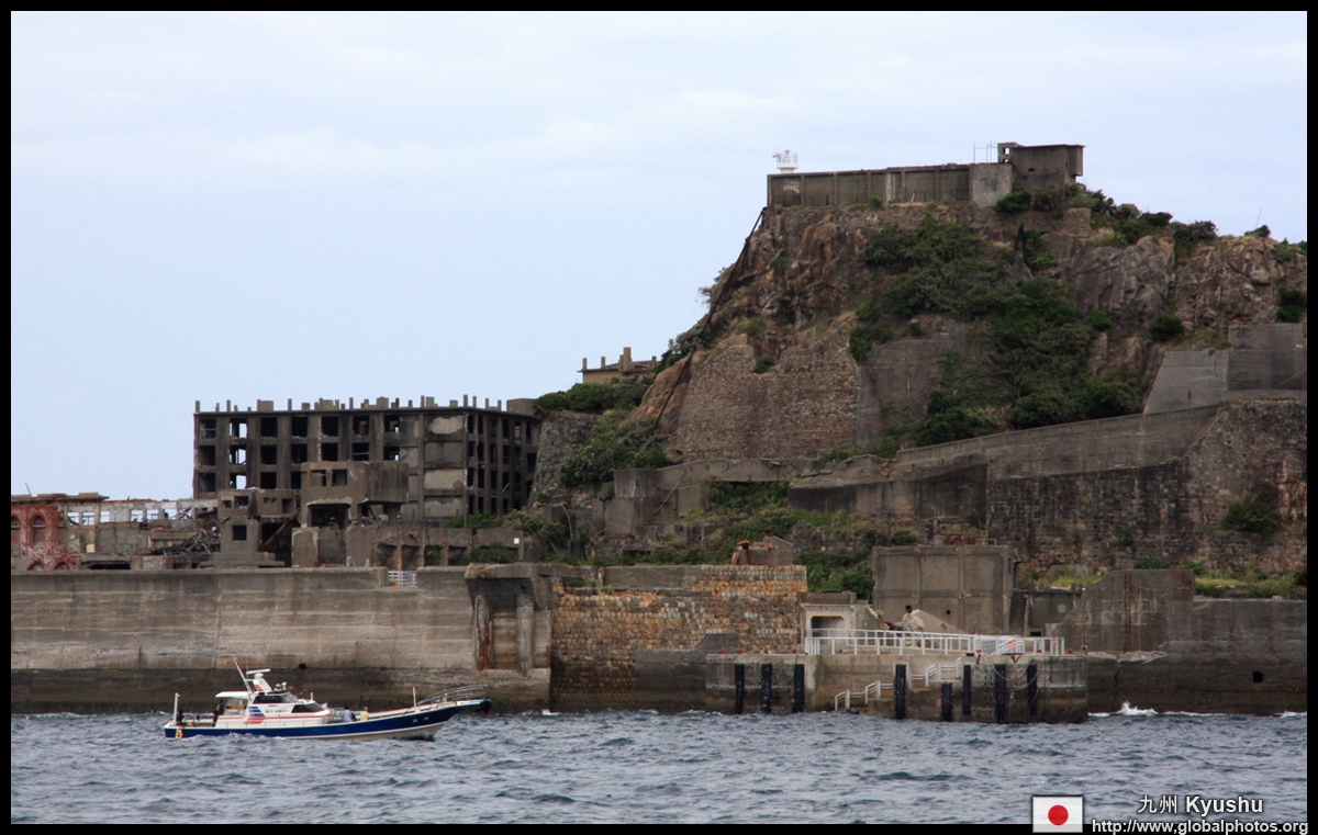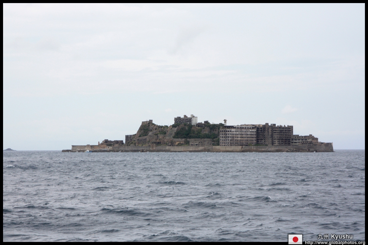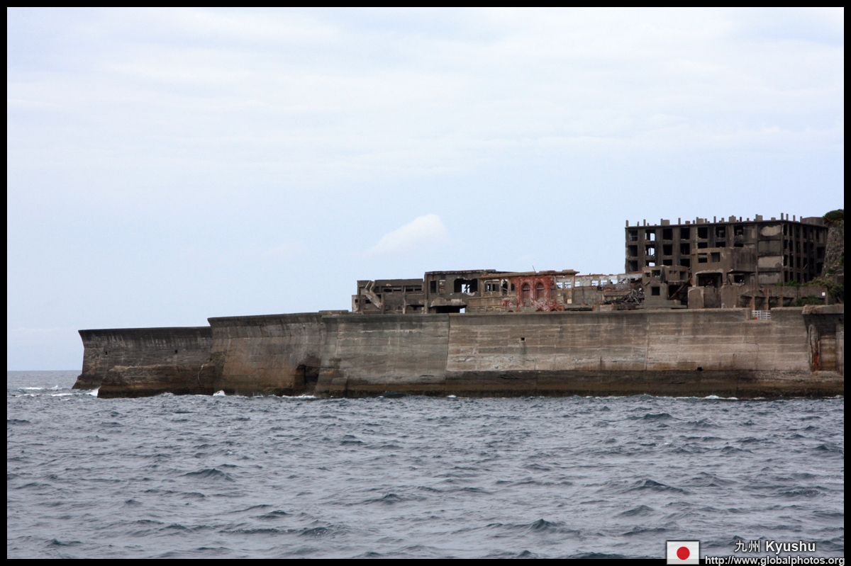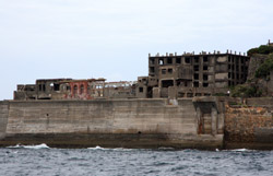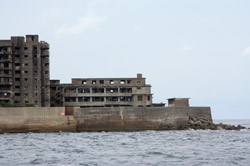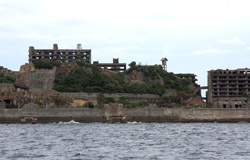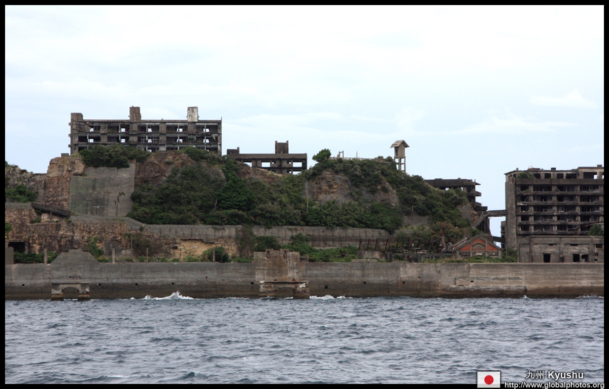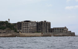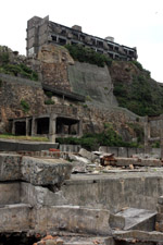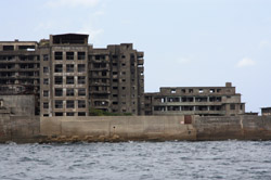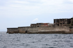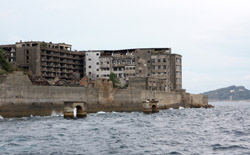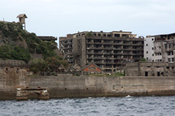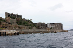 Gunkanjima is located about 20km ofshore from Nagasaki. Its prosperity began when coal was discovered in 1810 and Mitsubishi developed coal mining on the island in 1890. Miners lived in dormitories on the island and the population reached oveer 5200 in 1960. The mines closed in 1974 and the island was subsequently abandoned. Today, visitors can only reach the island via escorted local tour, although they give English pamphlets to non-Japanese speakers.