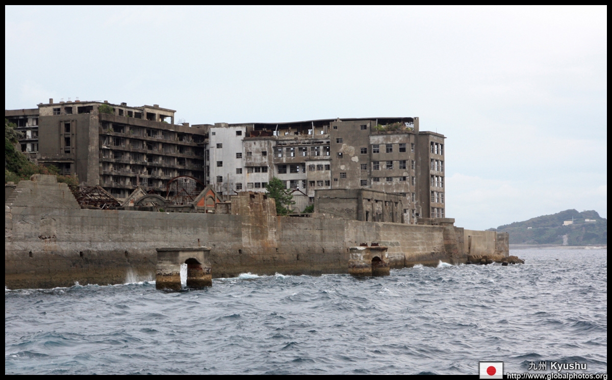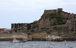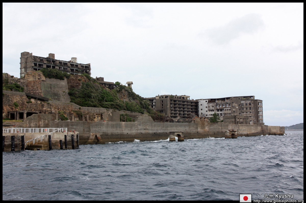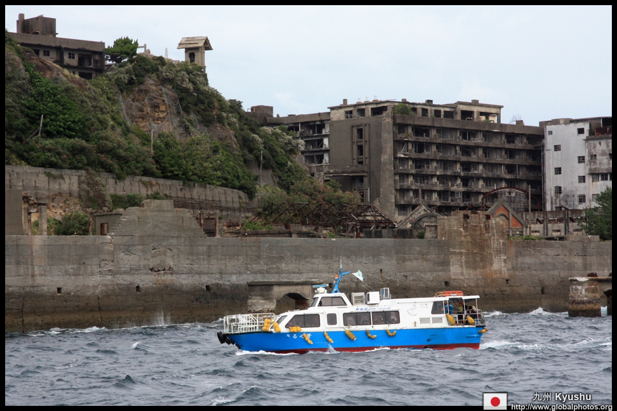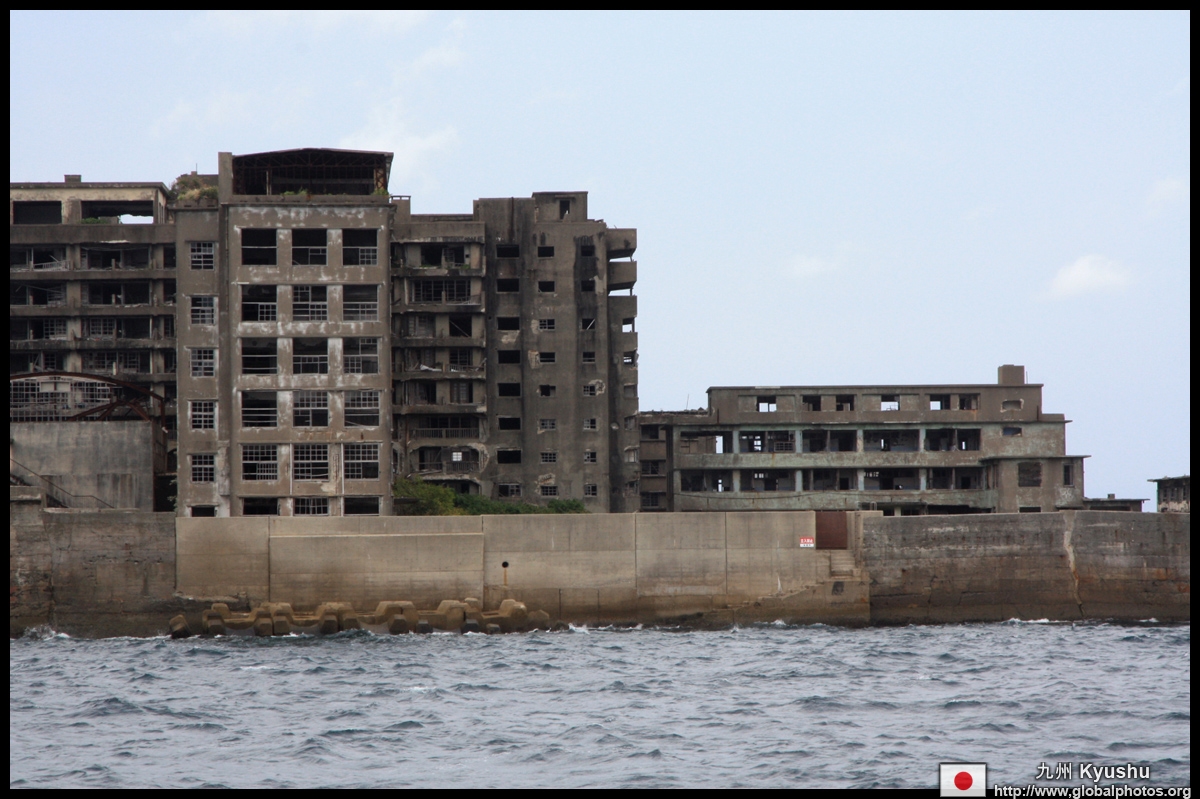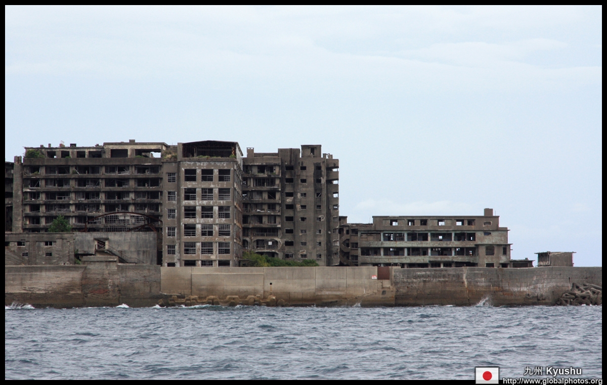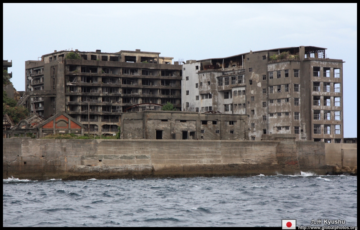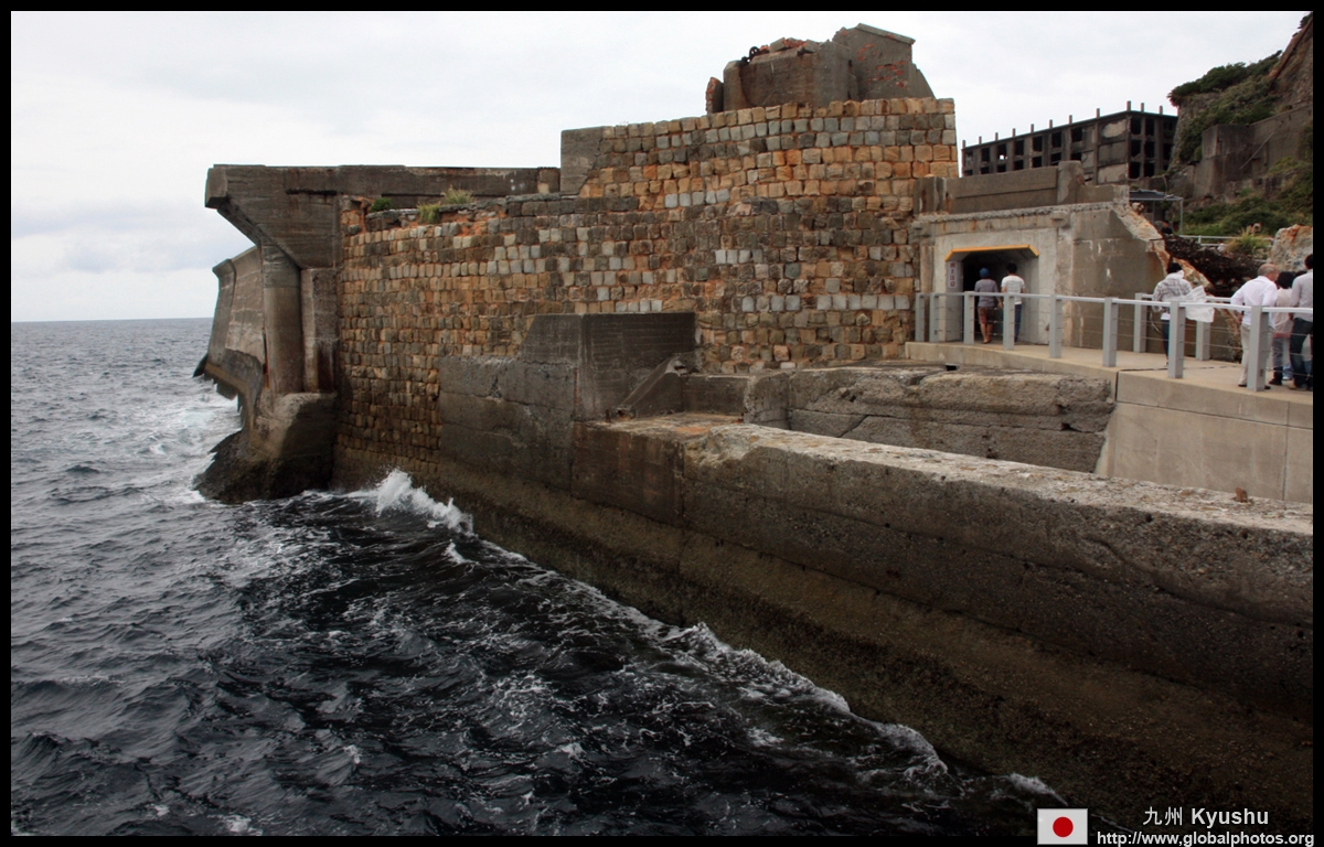 Gunkanjima is located about 20km ofshore from Nagasaki. Its prosperity began when coal was discovered in 1810 and Mitsubishi developed coal mining on the island in 1890. Miners lived in dormitories on the island and the population reached oveer 5200 in 1960. The mines closed in 1974 and the island was subsequently abandoned. Today, visitors can only reach the island via escorted local tour, although they give English pamphlets to non-Japanese speakers.