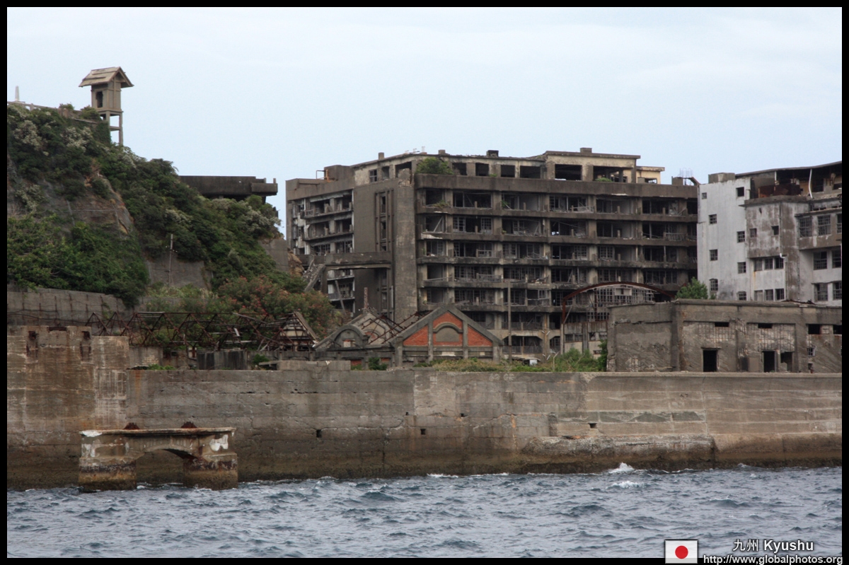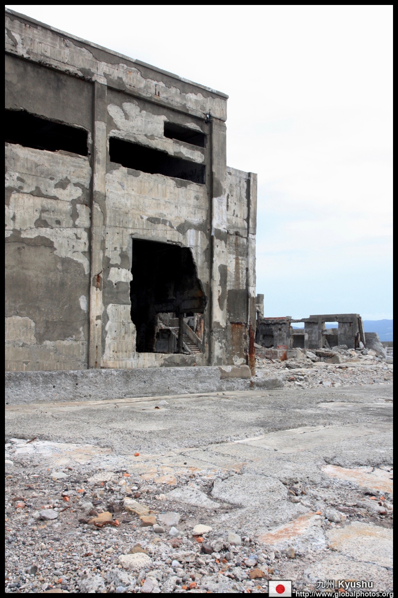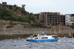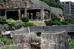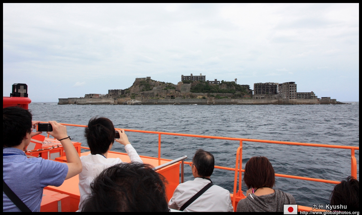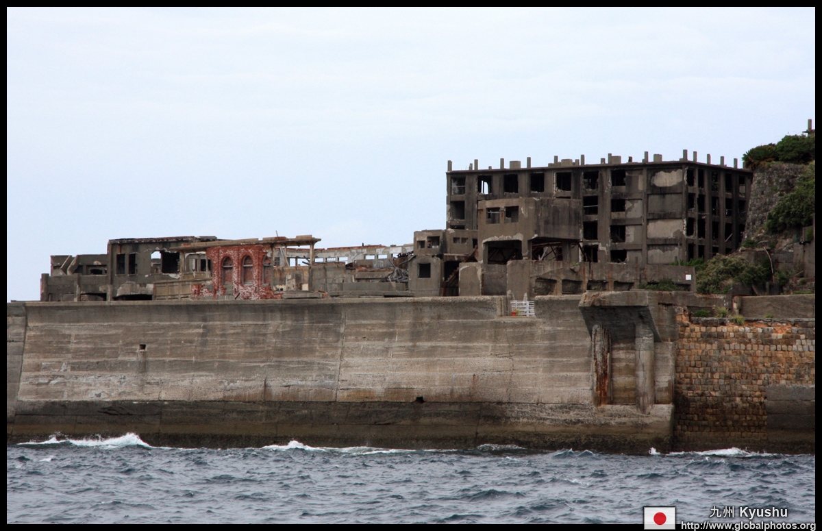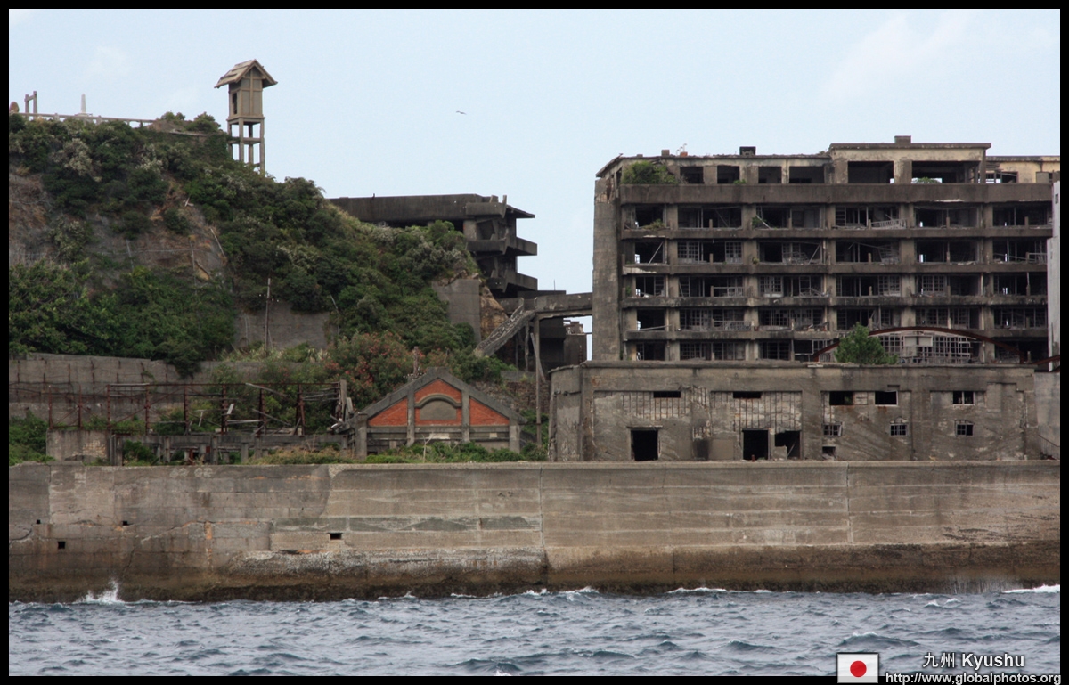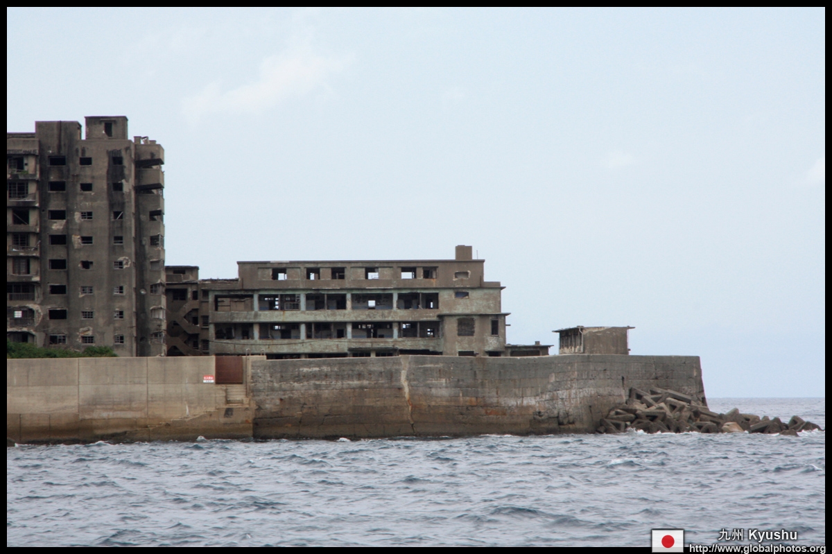 Gunkanjima is located about 20km ofshore from Nagasaki. Its prosperity began when coal was discovered in 1810 and Mitsubishi developed coal mining on the island in 1890. Miners lived in dormitories on the island and the population reached oveer 5200 in 1960. The mines closed in 1974 and the island was subsequently abandoned. Today, visitors can only reach the island via escorted local tour, although they give English pamphlets to non-Japanese speakers.