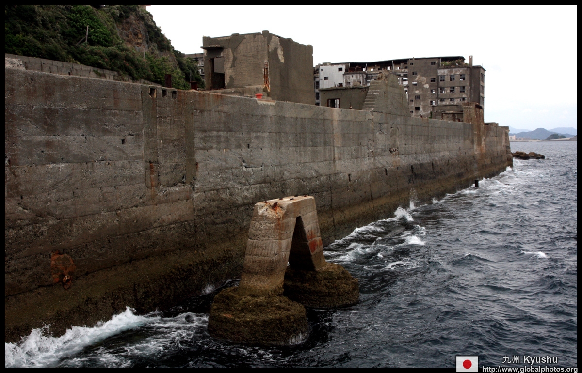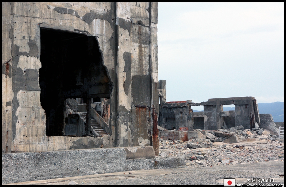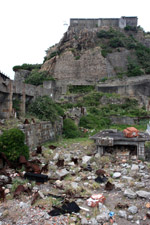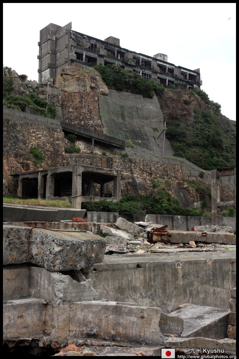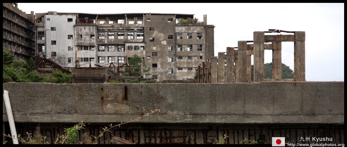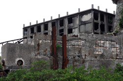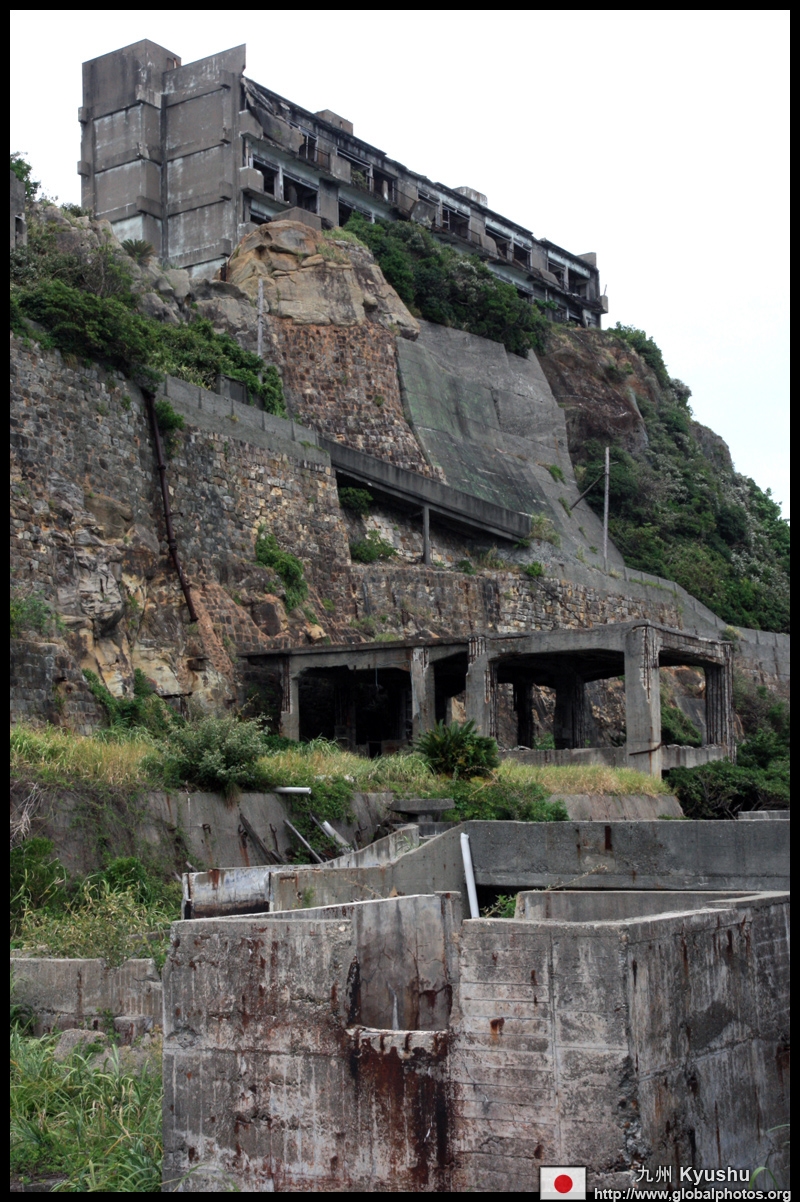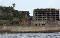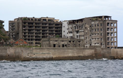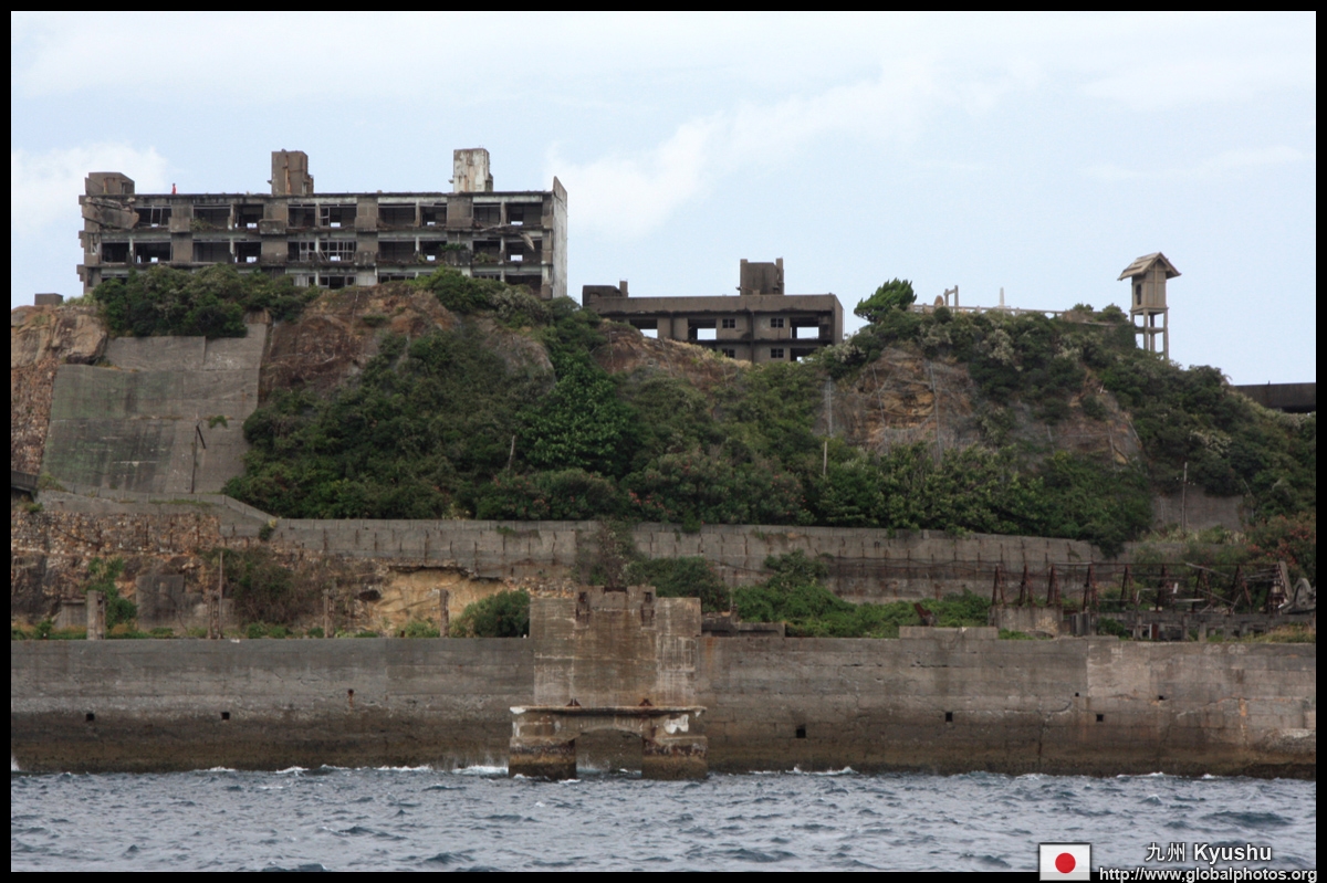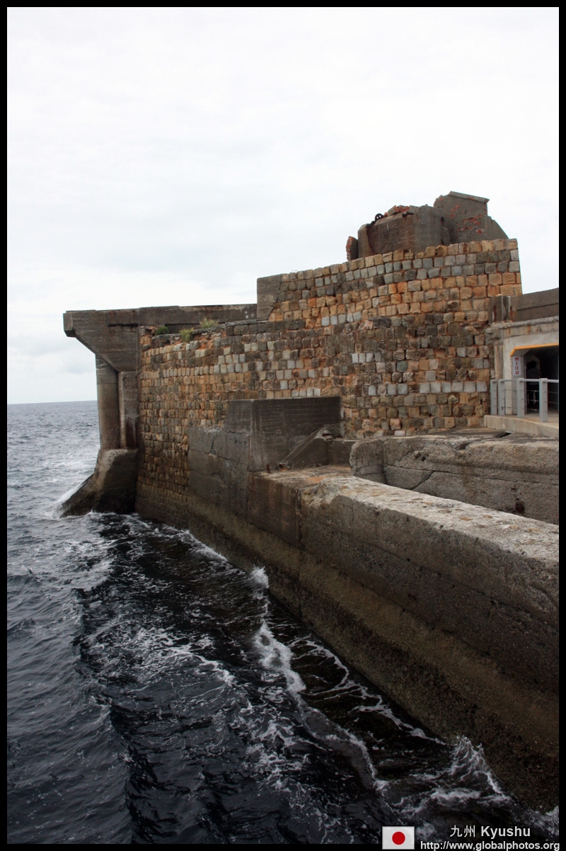 Gunkanjima is located about 20km ofshore from Nagasaki. Its prosperity began when coal was discovered in 1810 and Mitsubishi developed coal mining on the island in 1890. Miners lived in dormitories on the island and the population reached oveer 5200 in 1960. The mines closed in 1974 and the island was subsequently abandoned. Today, visitors can only reach the island via escorted local tour, although they give English pamphlets to non-Japanese speakers.