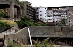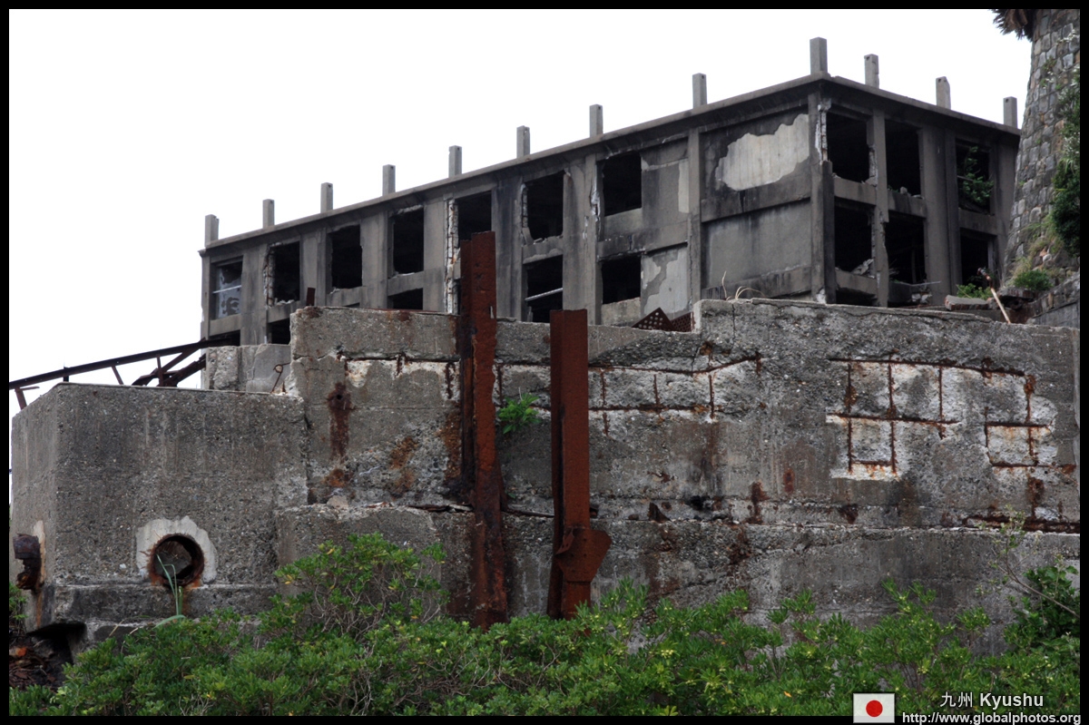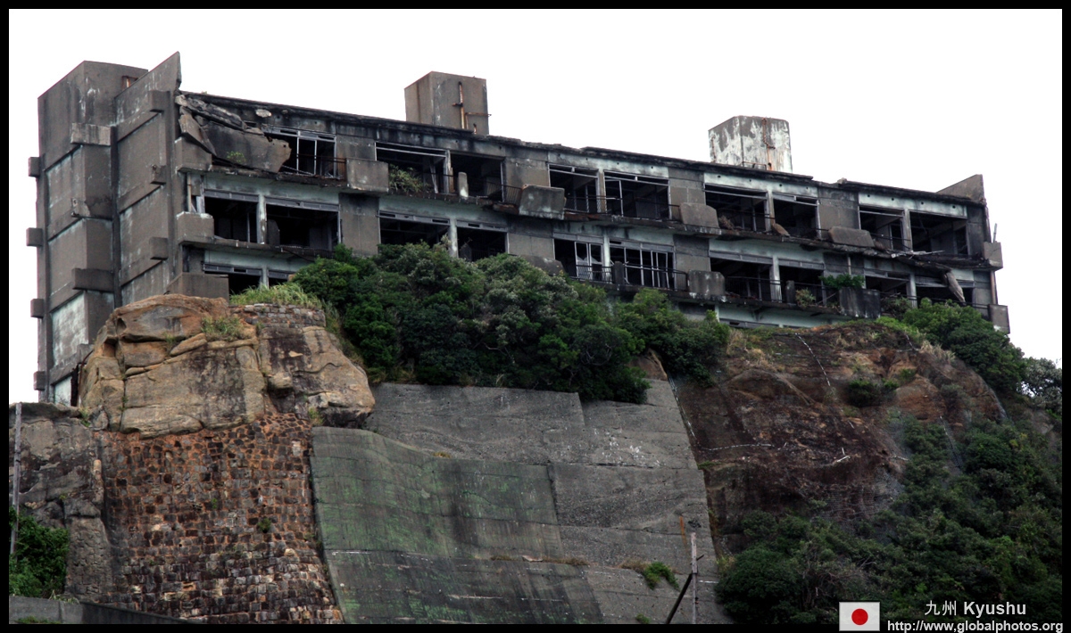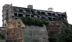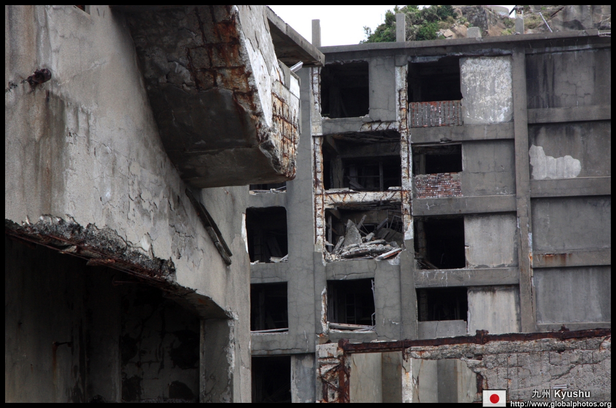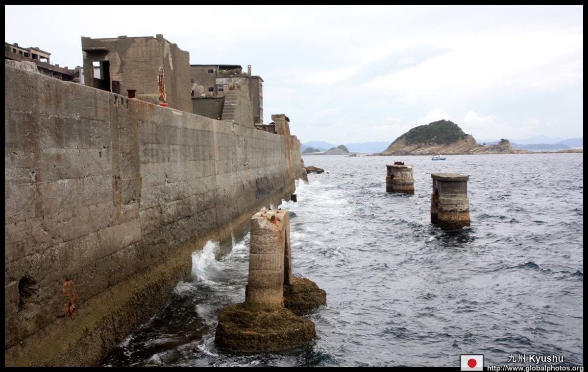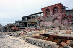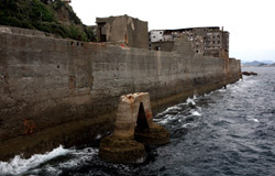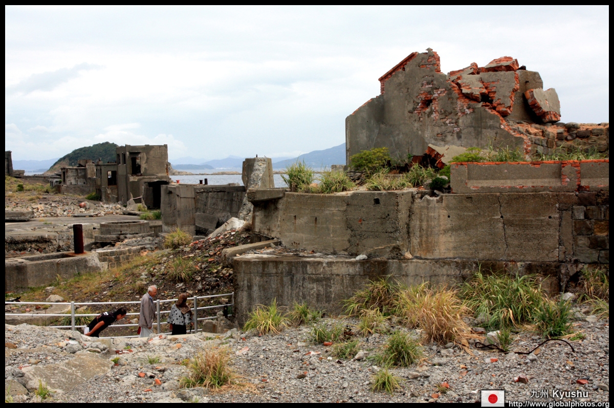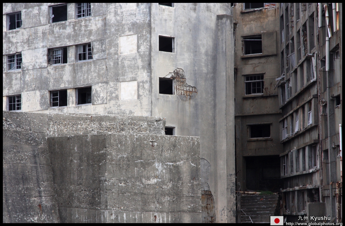 Gunkanjima is located about 20km ofshore from Nagasaki. Its prosperity began when coal was discovered in 1810 and Mitsubishi developed coal mining on the island in 1890. Miners lived in dormitories on the island and the population reached oveer 5200 in 1960. The mines closed in 1974 and the island was subsequently abandoned. Today, visitors can only reach the island via escorted local tour, although they give English pamphlets to non-Japanese speakers.