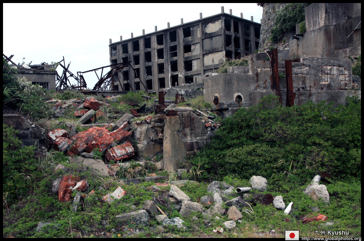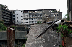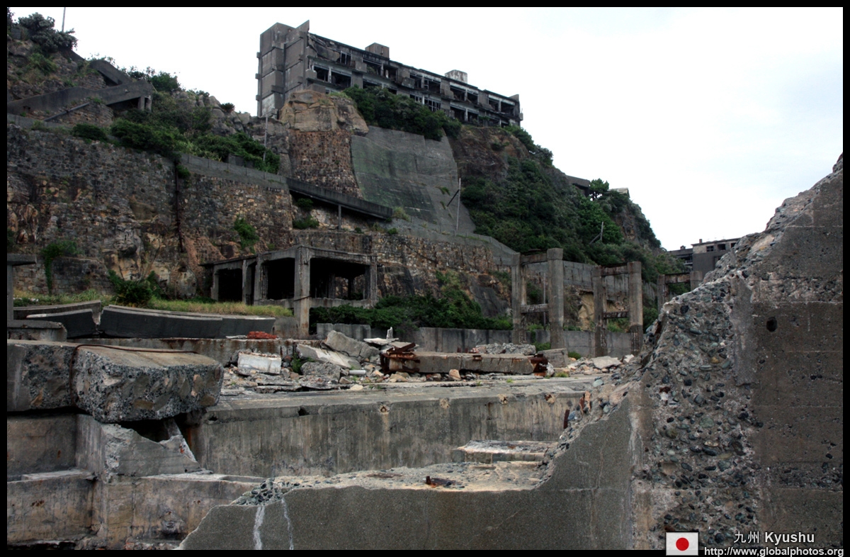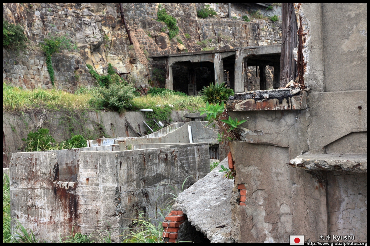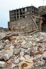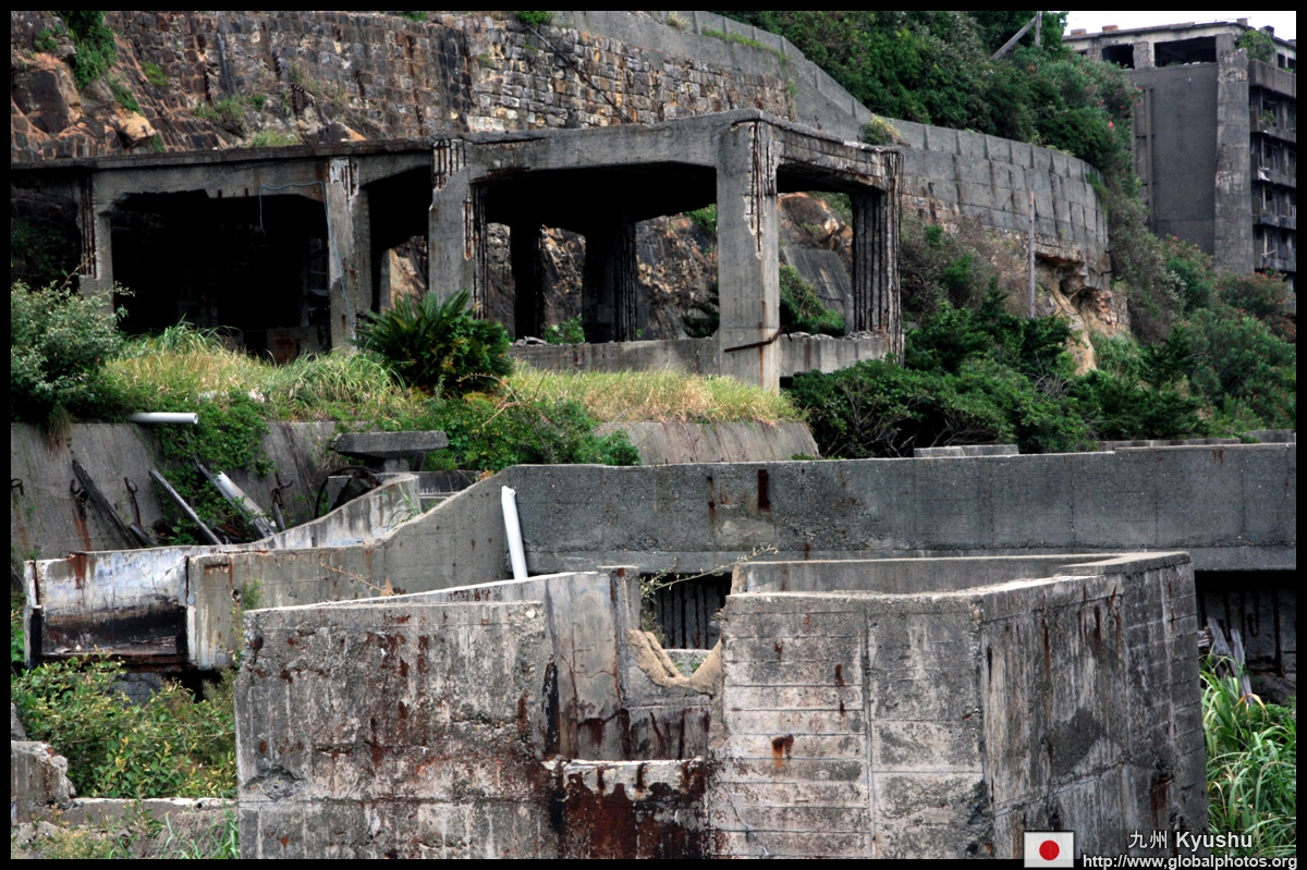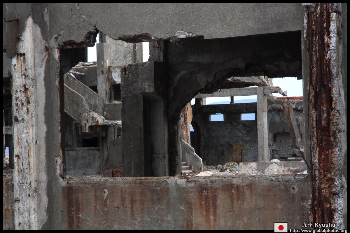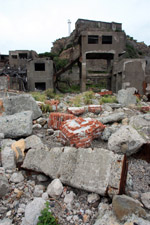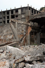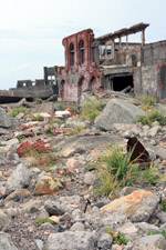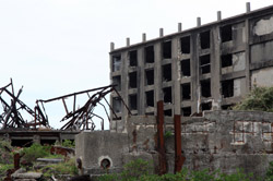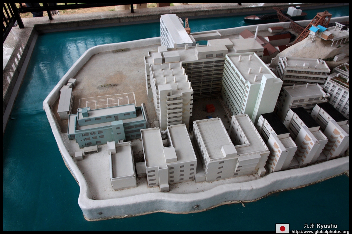 Gunkanjima is located about 20km ofshore from Nagasaki. Its prosperity began when coal was discovered in 1810 and Mitsubishi developed coal mining on the island in 1890. Miners lived in dormitories on the island and the population reached oveer 5200 in 1960. The mines closed in 1974 and the island was subsequently abandoned. Today, visitors can only reach the island via escorted local tour, although they give English pamphlets to non-Japanese speakers.