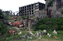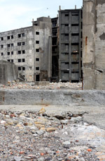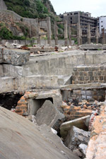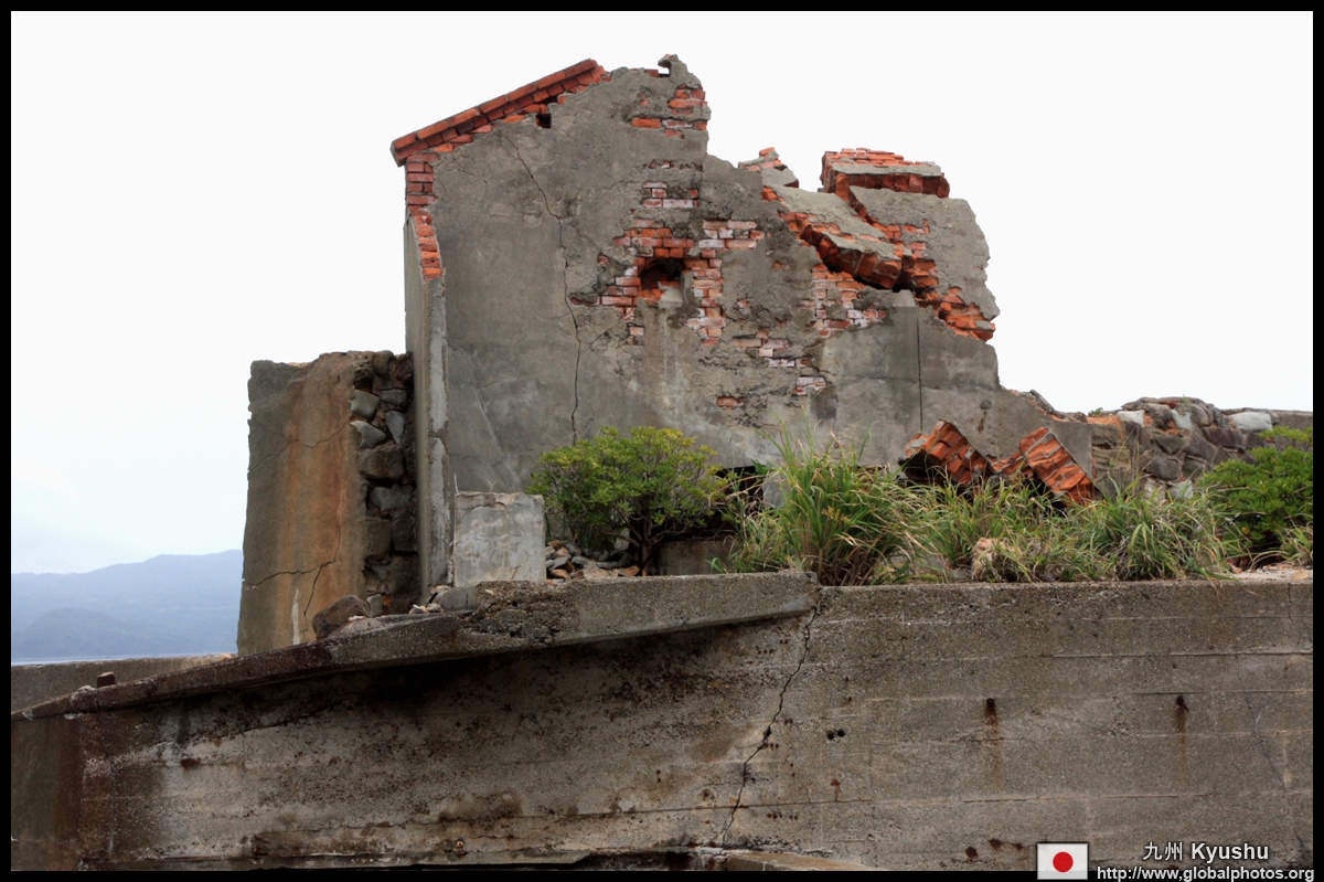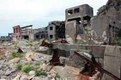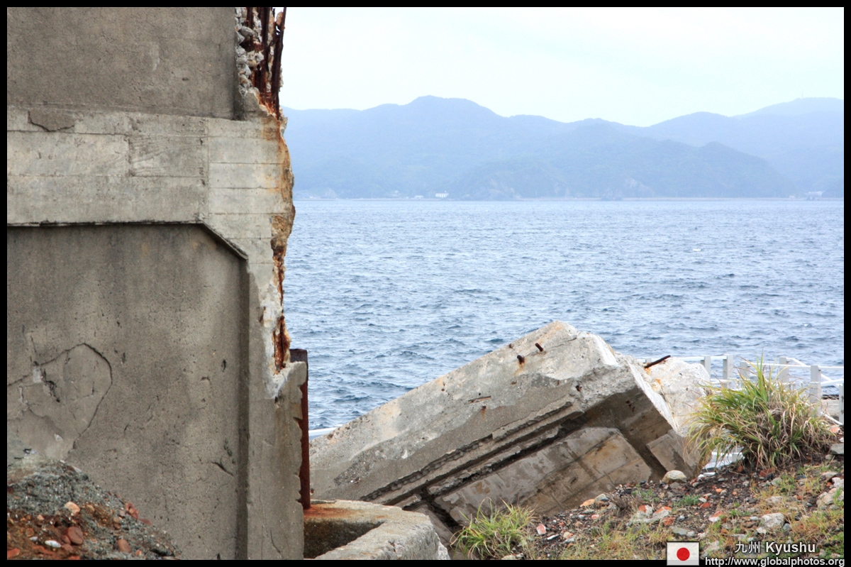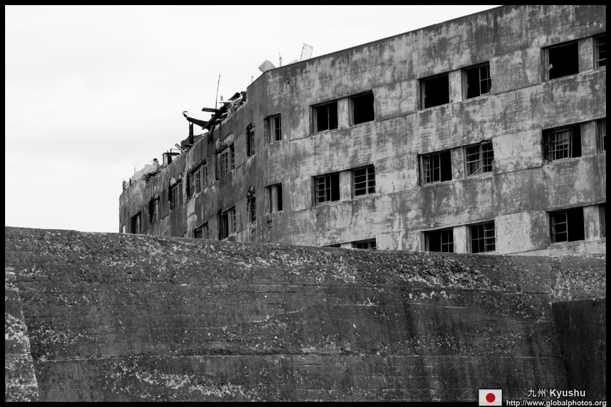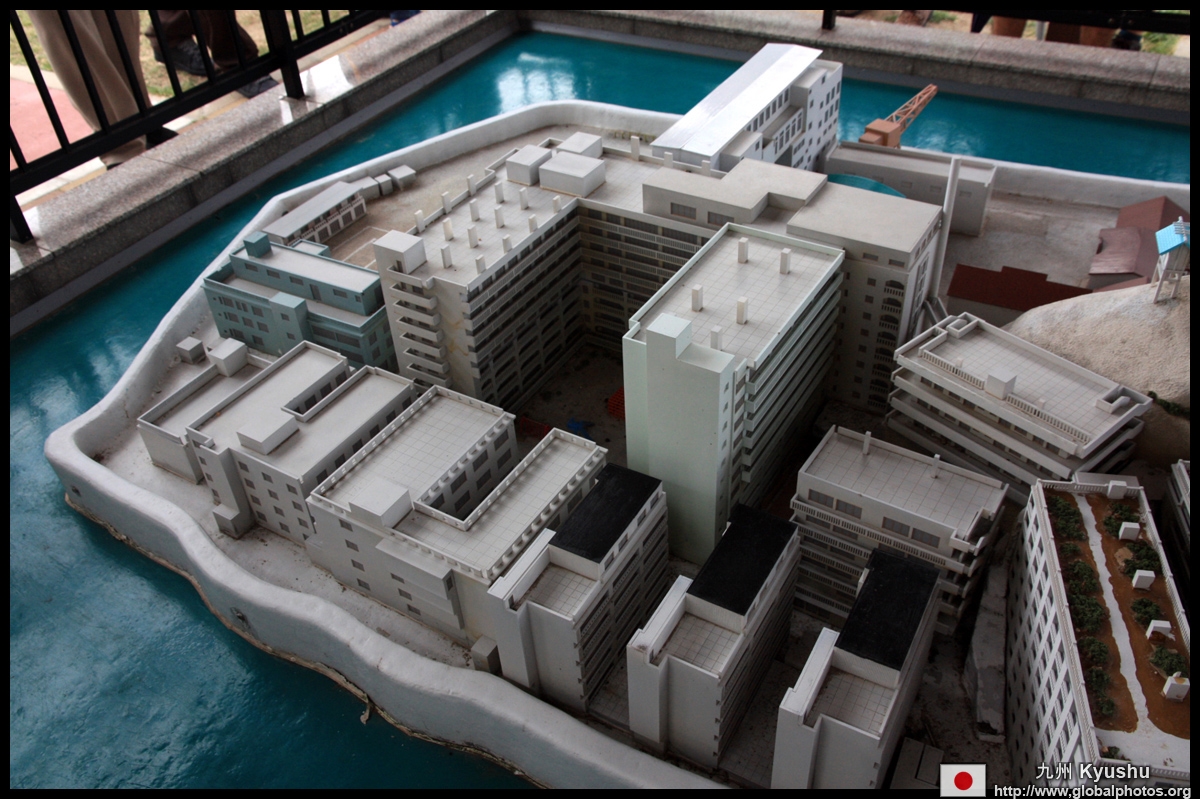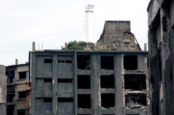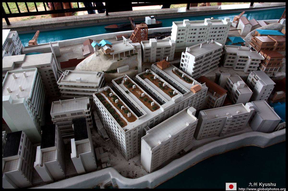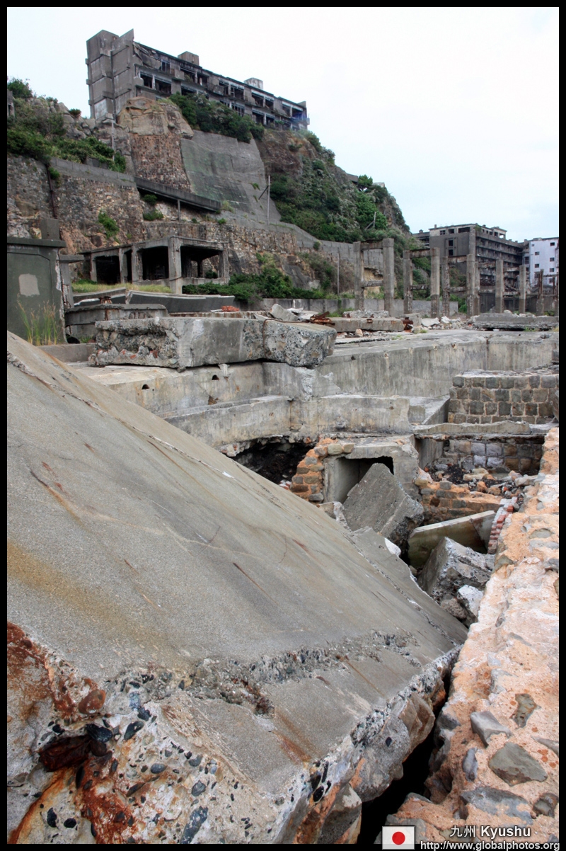 Gunkanjima is located about 20km ofshore from Nagasaki. Its prosperity began when coal was discovered in 1810 and Mitsubishi developed coal mining on the island in 1890. Miners lived in dormitories on the island and the population reached oveer 5200 in 1960. The mines closed in 1974 and the island was subsequently abandoned. Today, visitors can only reach the island via escorted local tour, although they give English pamphlets to non-Japanese speakers.