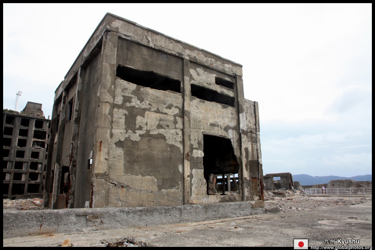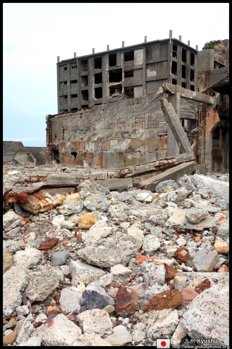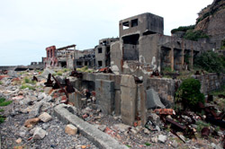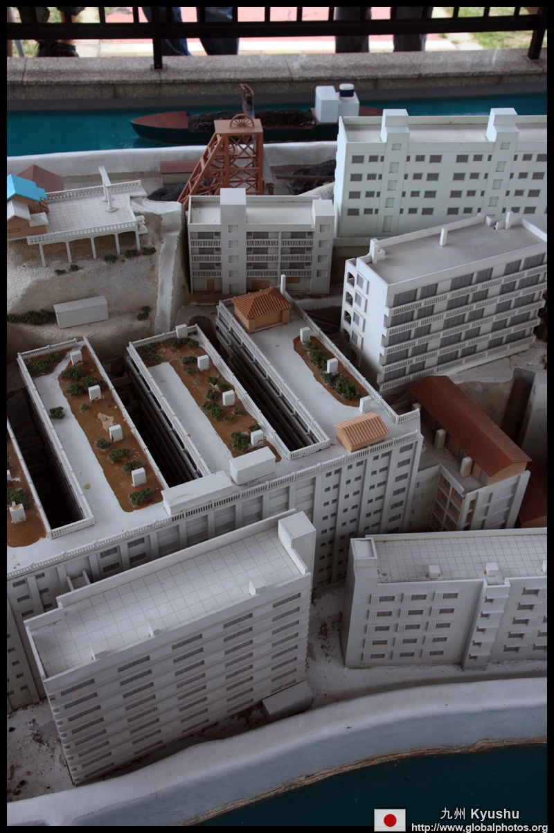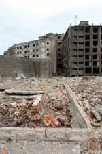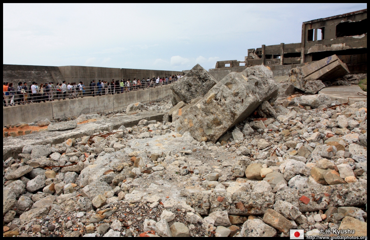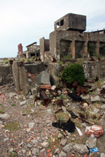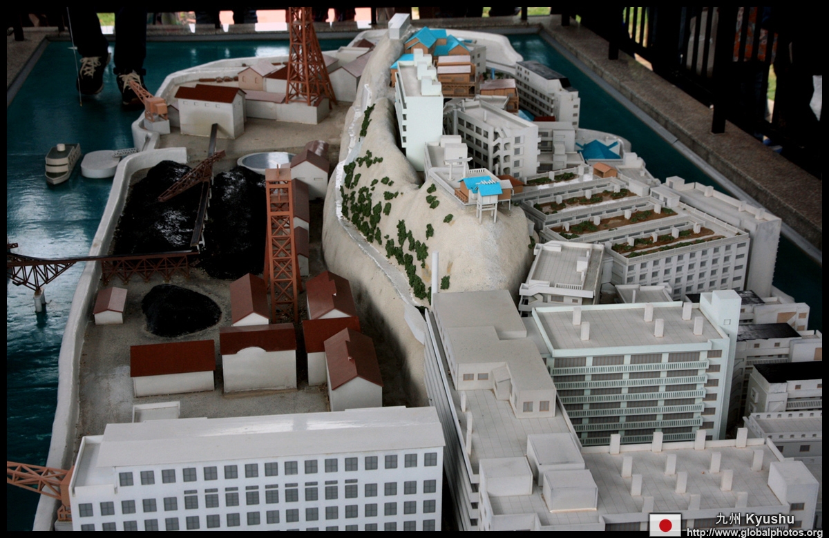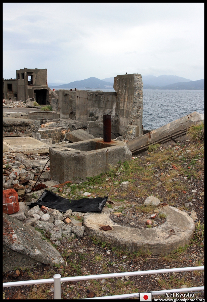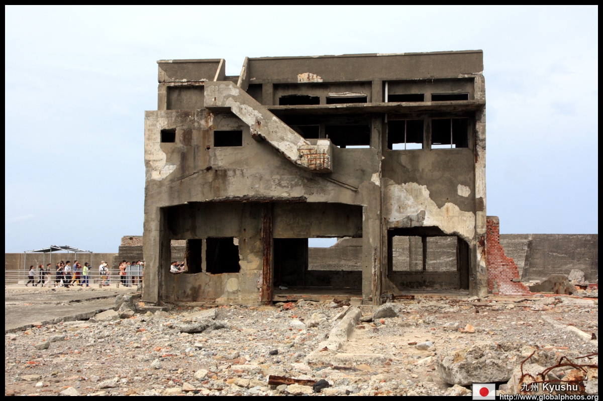 Gunkanjima is located about 20km ofshore from Nagasaki. Its prosperity began when coal was discovered in 1810 and Mitsubishi developed coal mining on the island in 1890. Miners lived in dormitories on the island and the population reached oveer 5200 in 1960. The mines closed in 1974 and the island was subsequently abandoned. Today, visitors can only reach the island via escorted local tour, although they give English pamphlets to non-Japanese speakers.