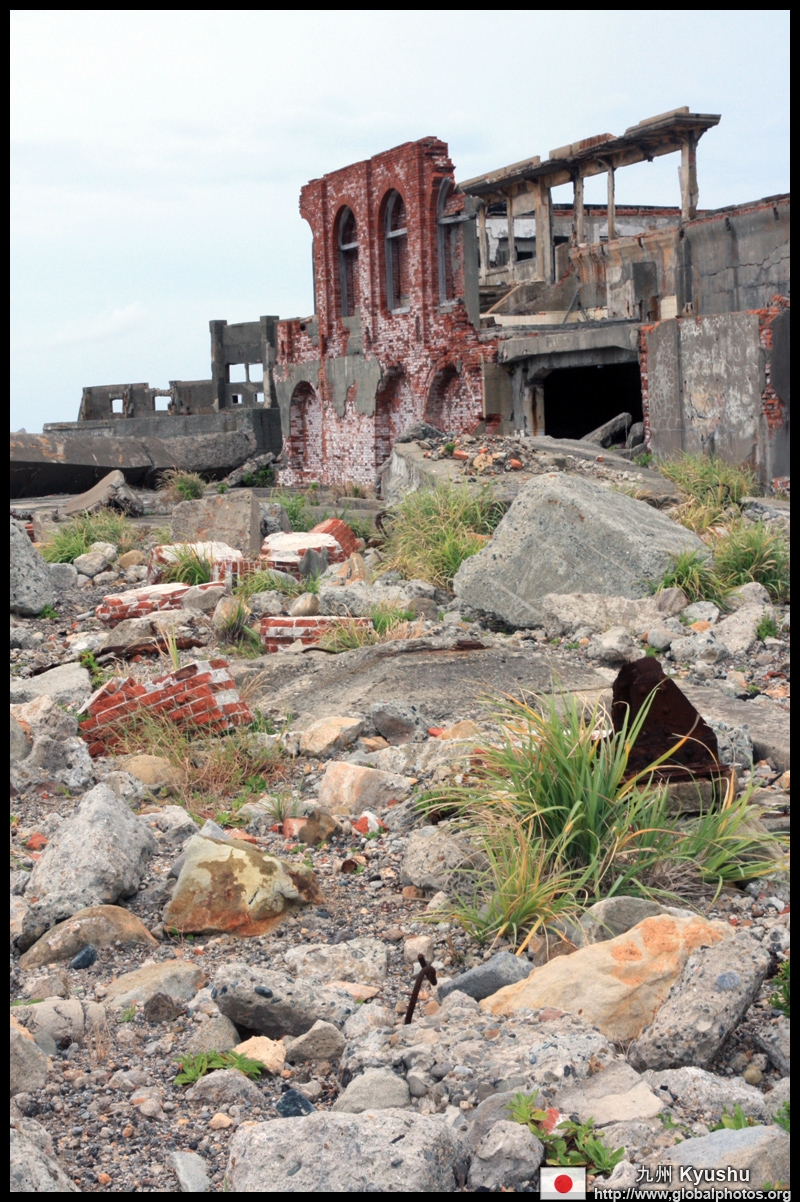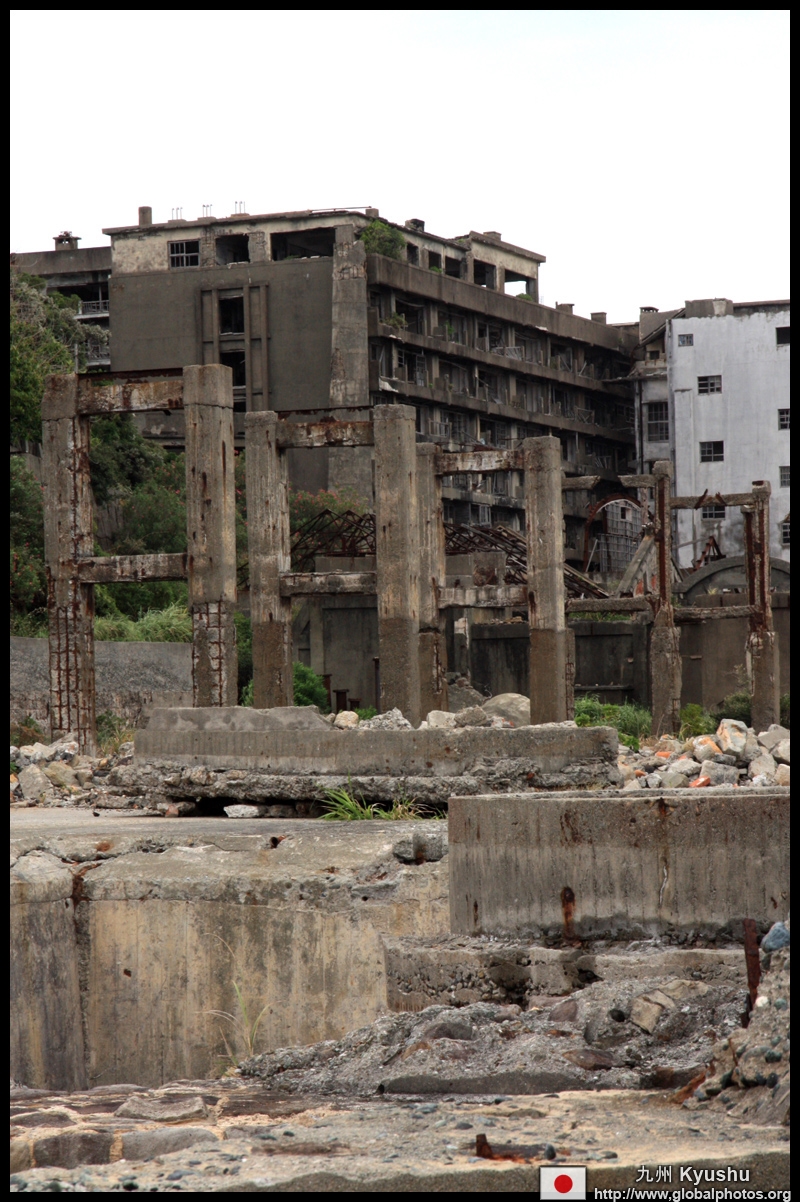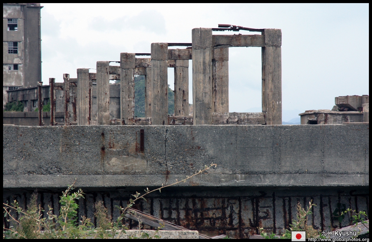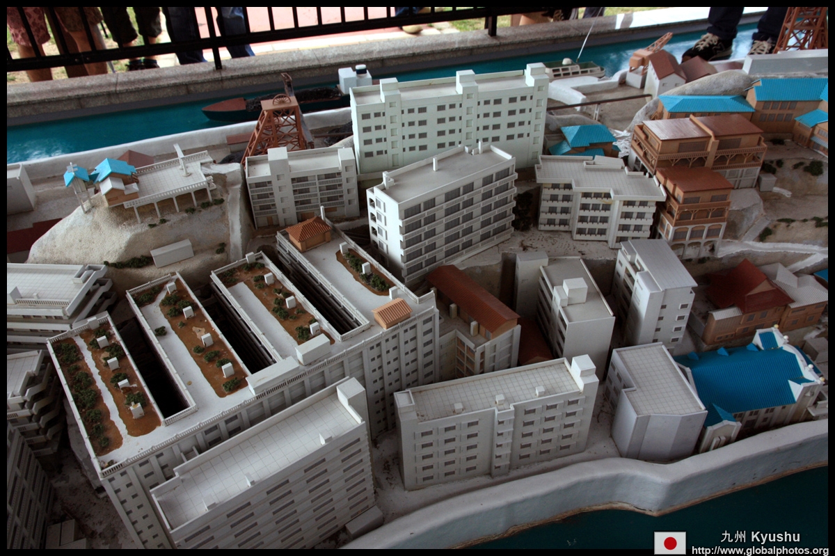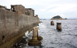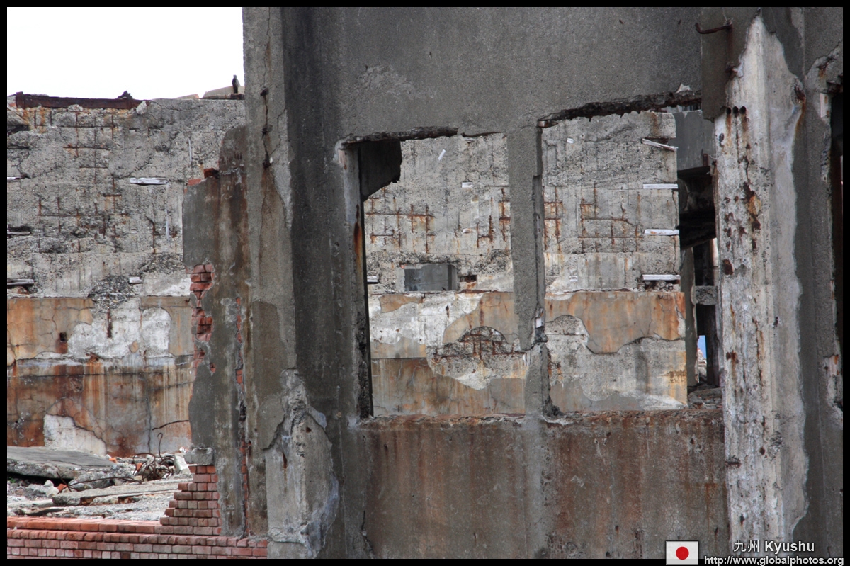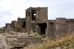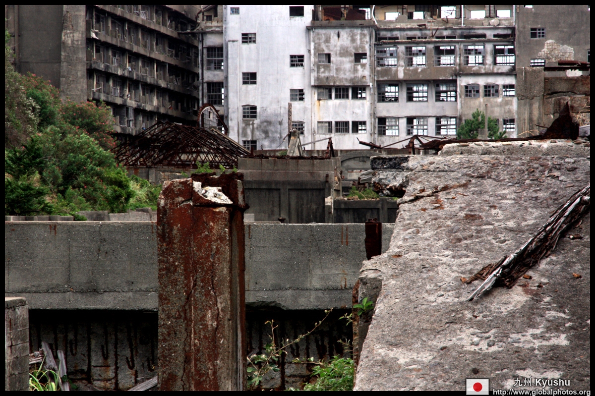 Gunkanjima is located about 20km ofshore from Nagasaki. Its prosperity began when coal was discovered in 1810 and Mitsubishi developed coal mining on the island in 1890. Miners lived in dormitories on the island and the population reached oveer 5200 in 1960. The mines closed in 1974 and the island was subsequently abandoned. Today, visitors can only reach the island via escorted local tour, although they give English pamphlets to non-Japanese speakers.