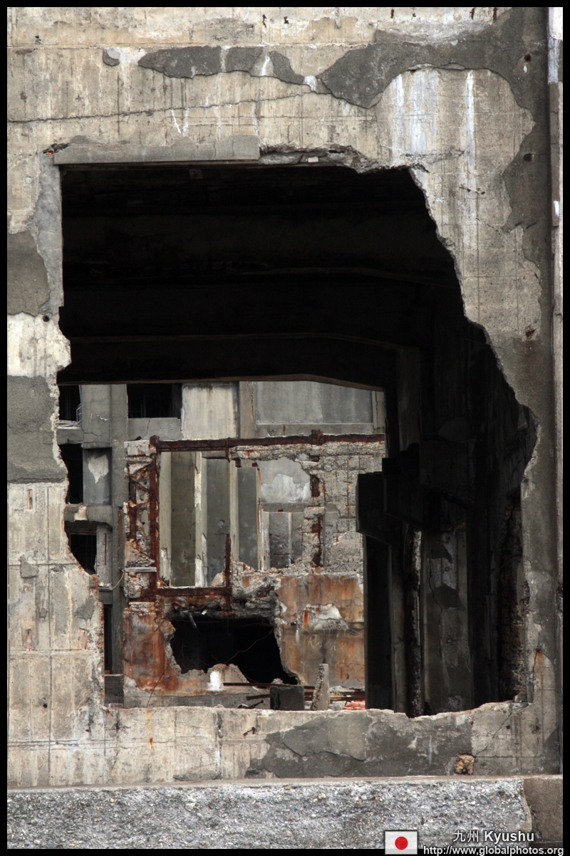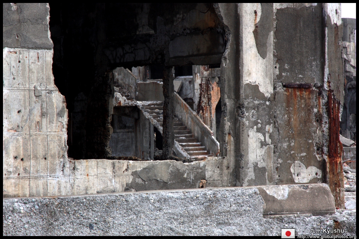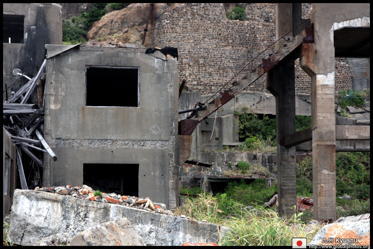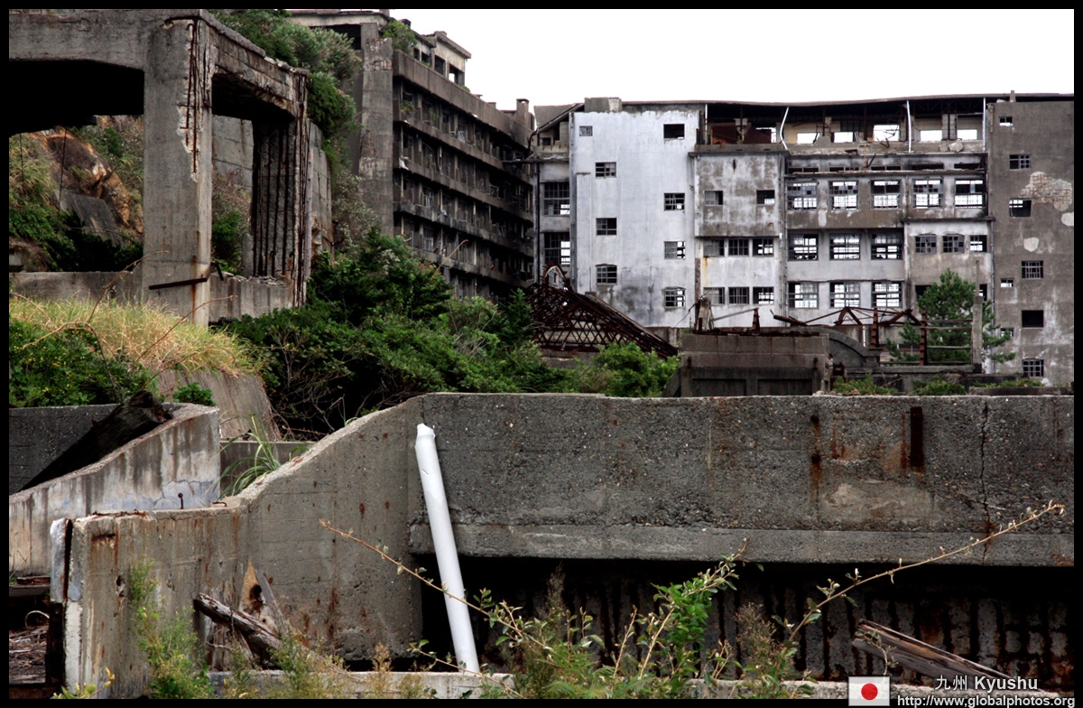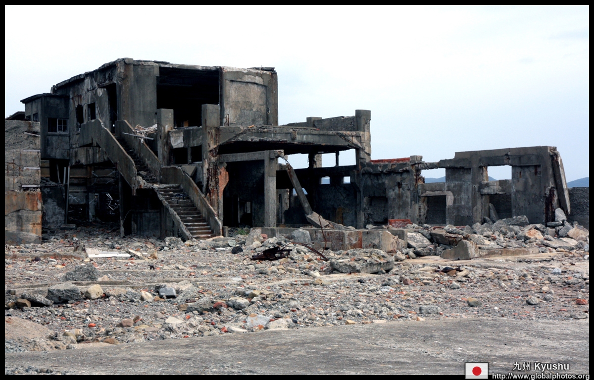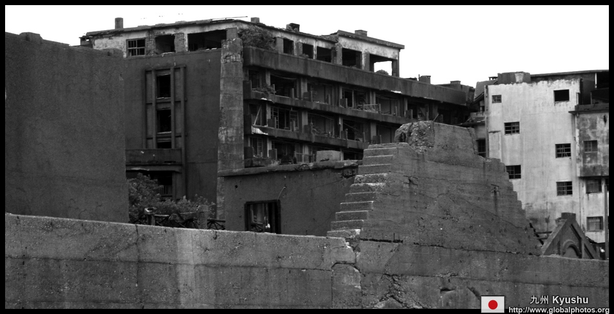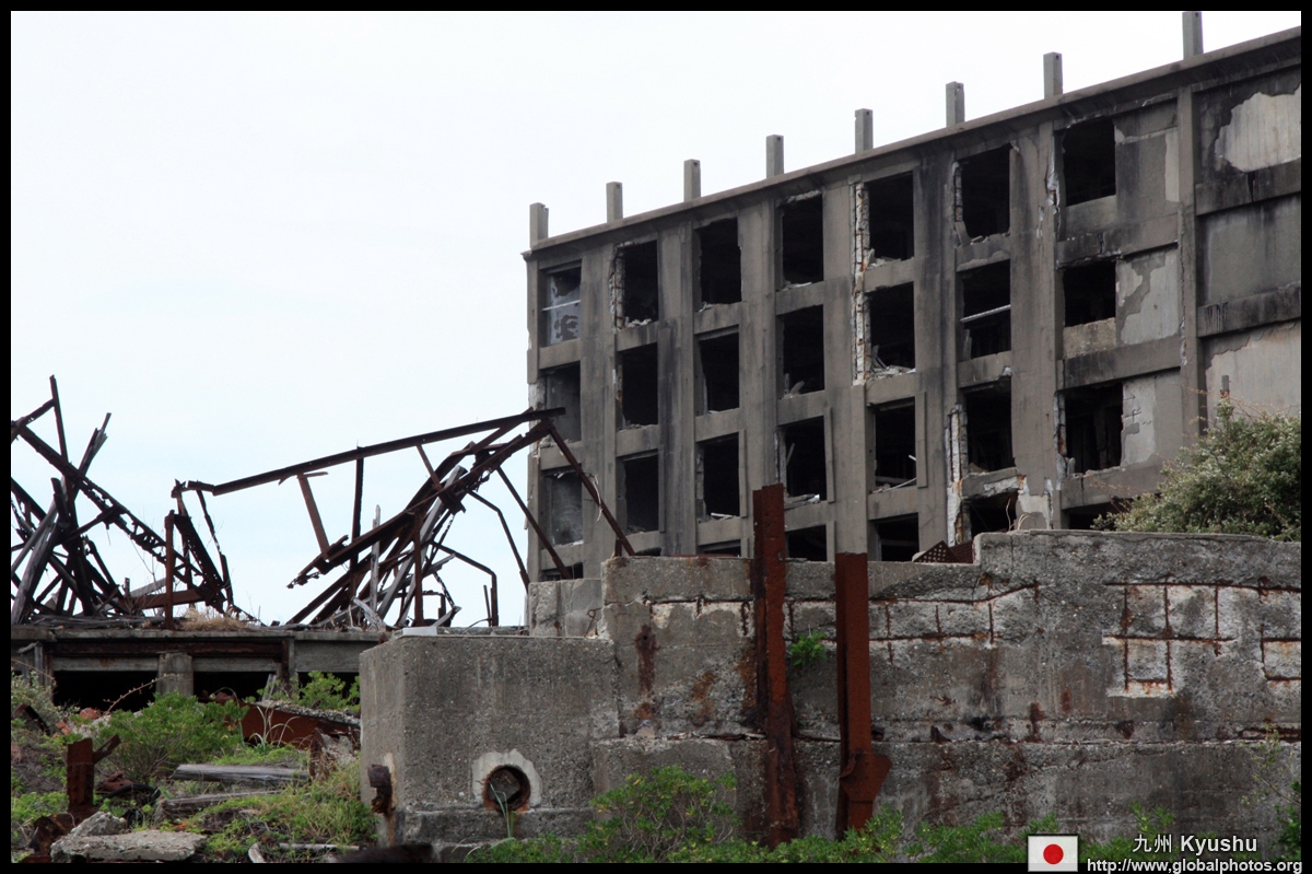 Gunkanjima is located about 20km ofshore from Nagasaki. Its prosperity began when coal was discovered in 1810 and Mitsubishi developed coal mining on the island in 1890. Miners lived in dormitories on the island and the population reached oveer 5200 in 1960. The mines closed in 1974 and the island was subsequently abandoned. Today, visitors can only reach the island via escorted local tour, although they give English pamphlets to non-Japanese speakers.