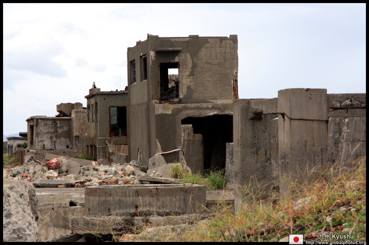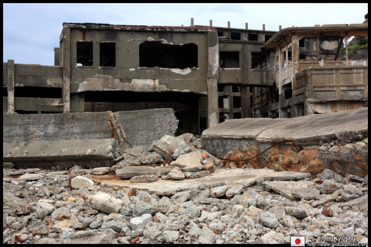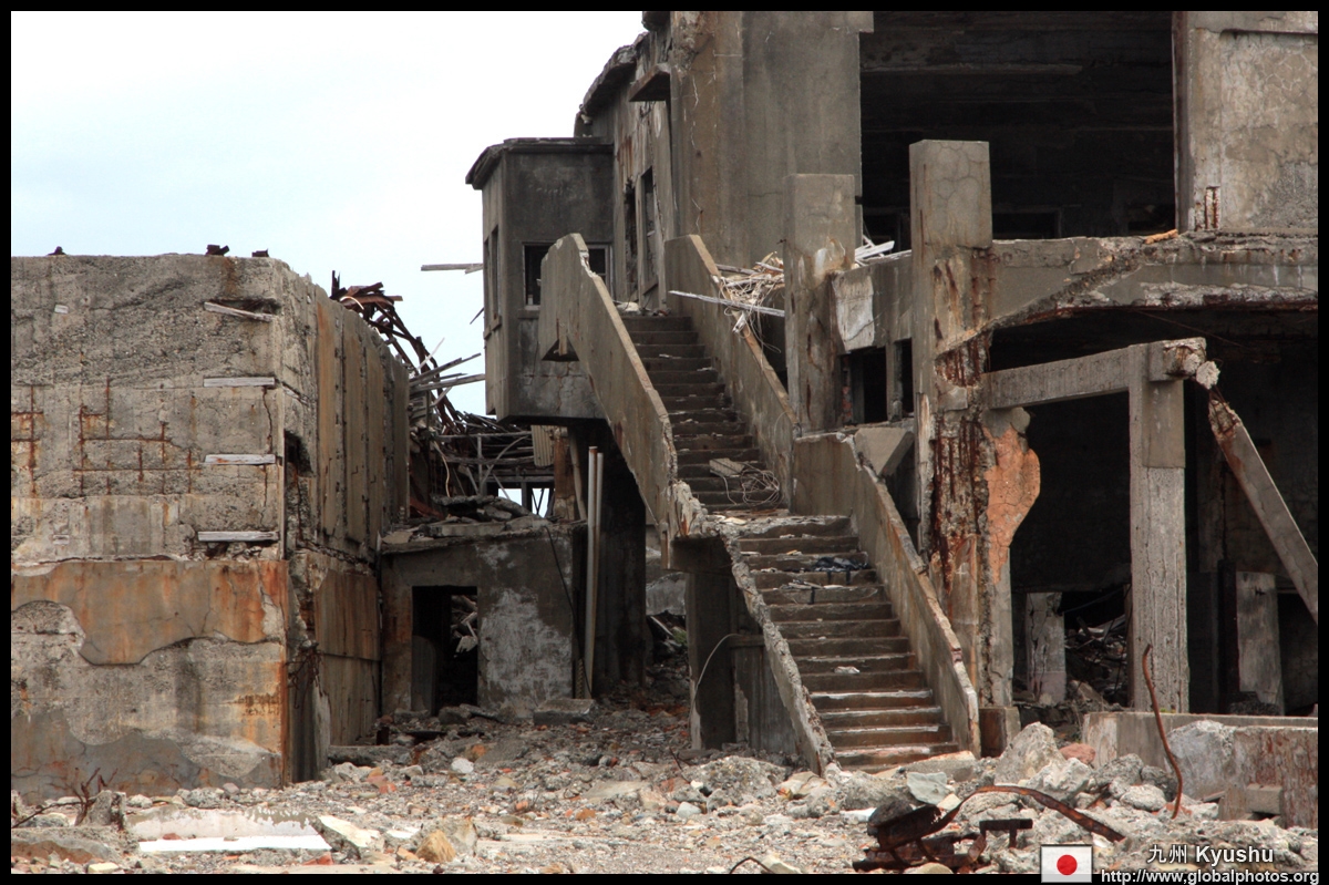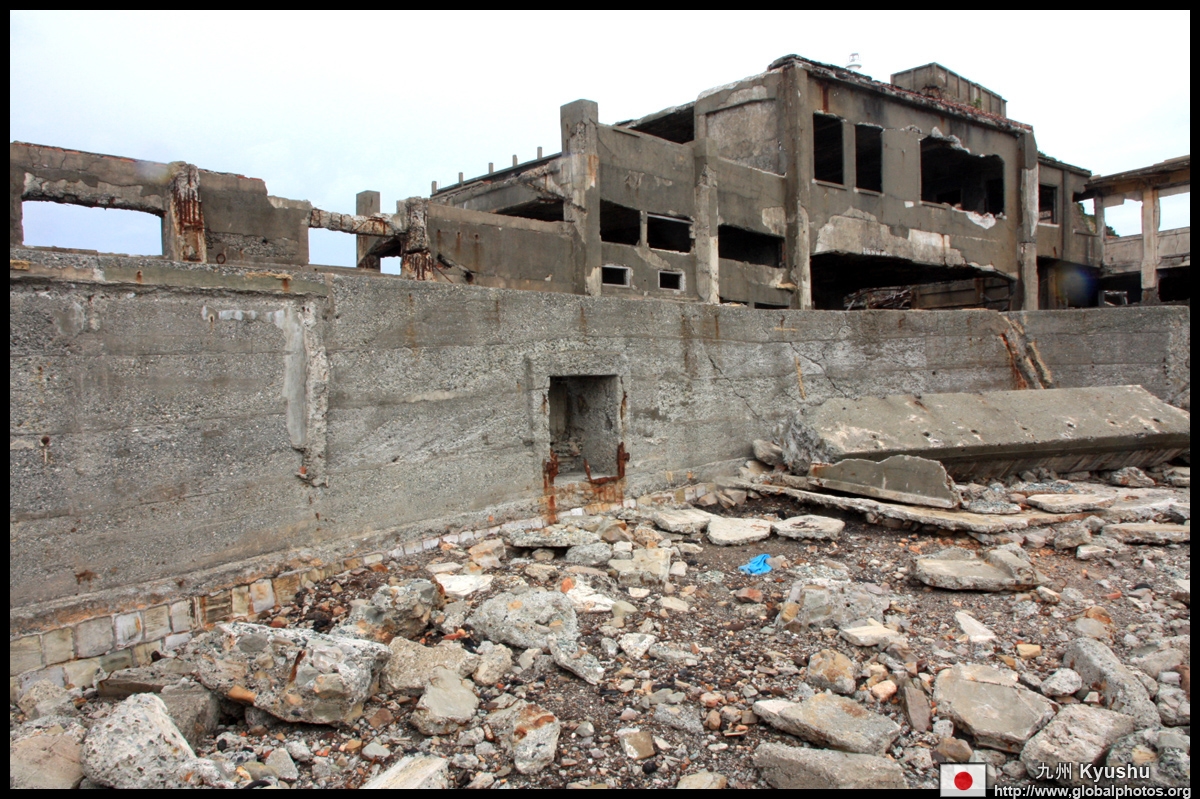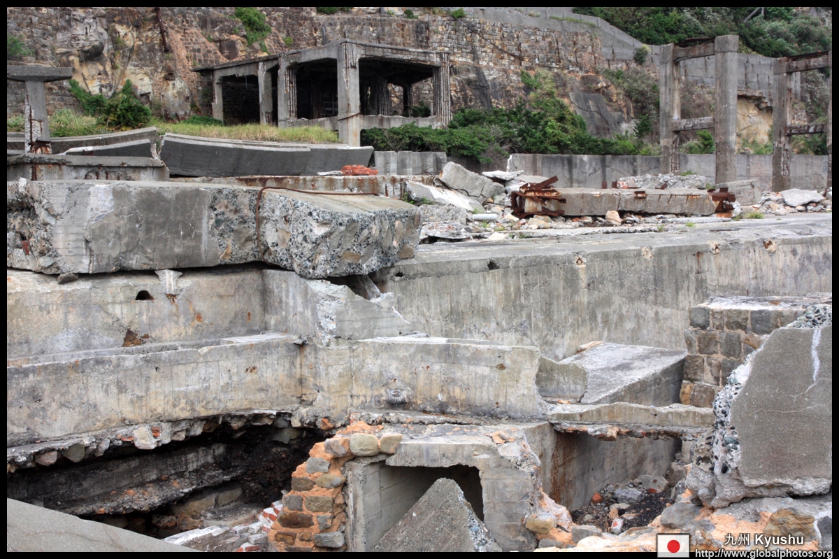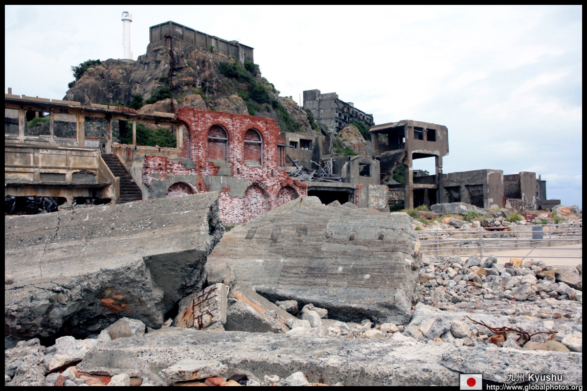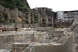 Gunkanjima is located about 20km ofshore from Nagasaki. Its prosperity began when coal was discovered in 1810 and Mitsubishi developed coal mining on the island in 1890. Miners lived in dormitories on the island and the population reached oveer 5200 in 1960. The mines closed in 1974 and the island was subsequently abandoned. Today, visitors can only reach the island via escorted local tour, although they give English pamphlets to non-Japanese speakers.