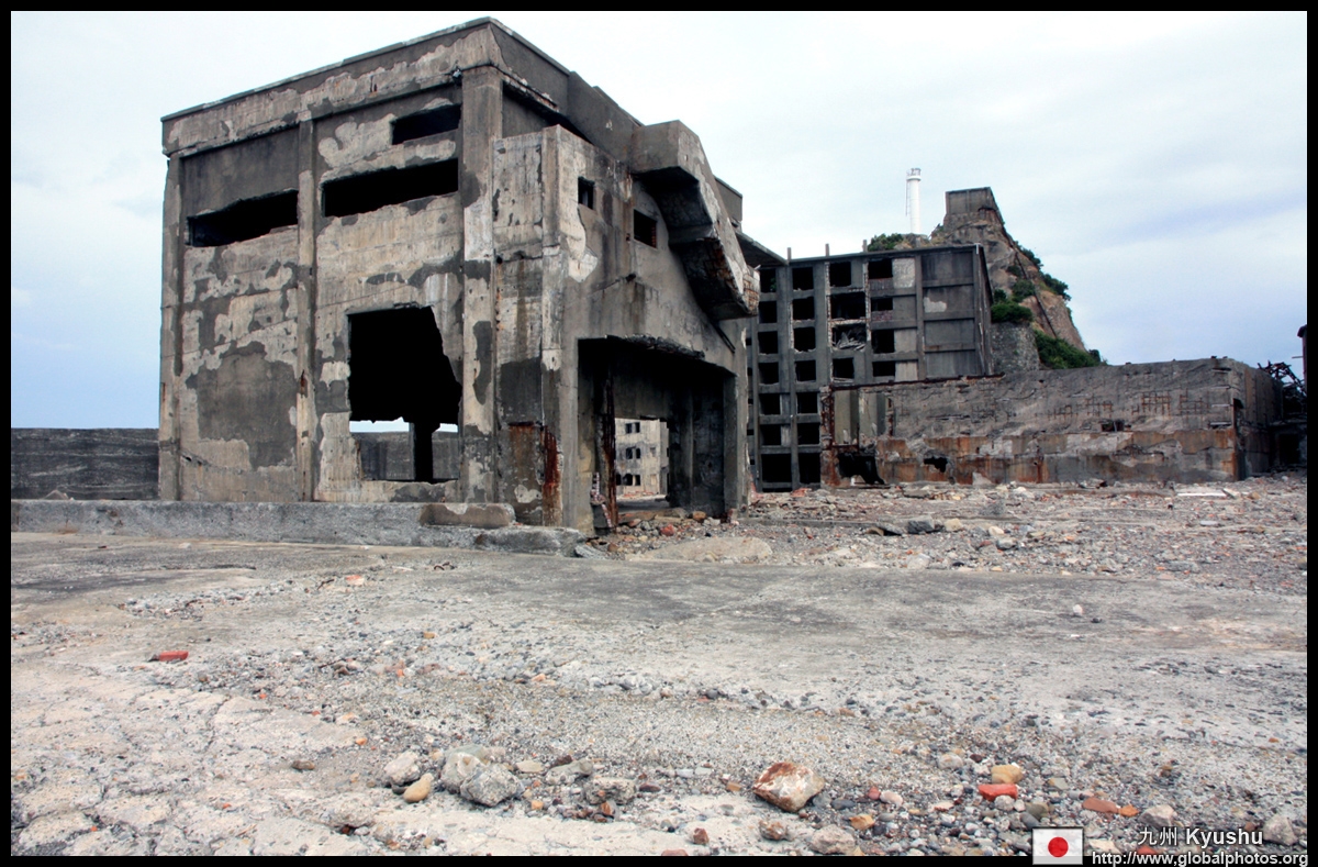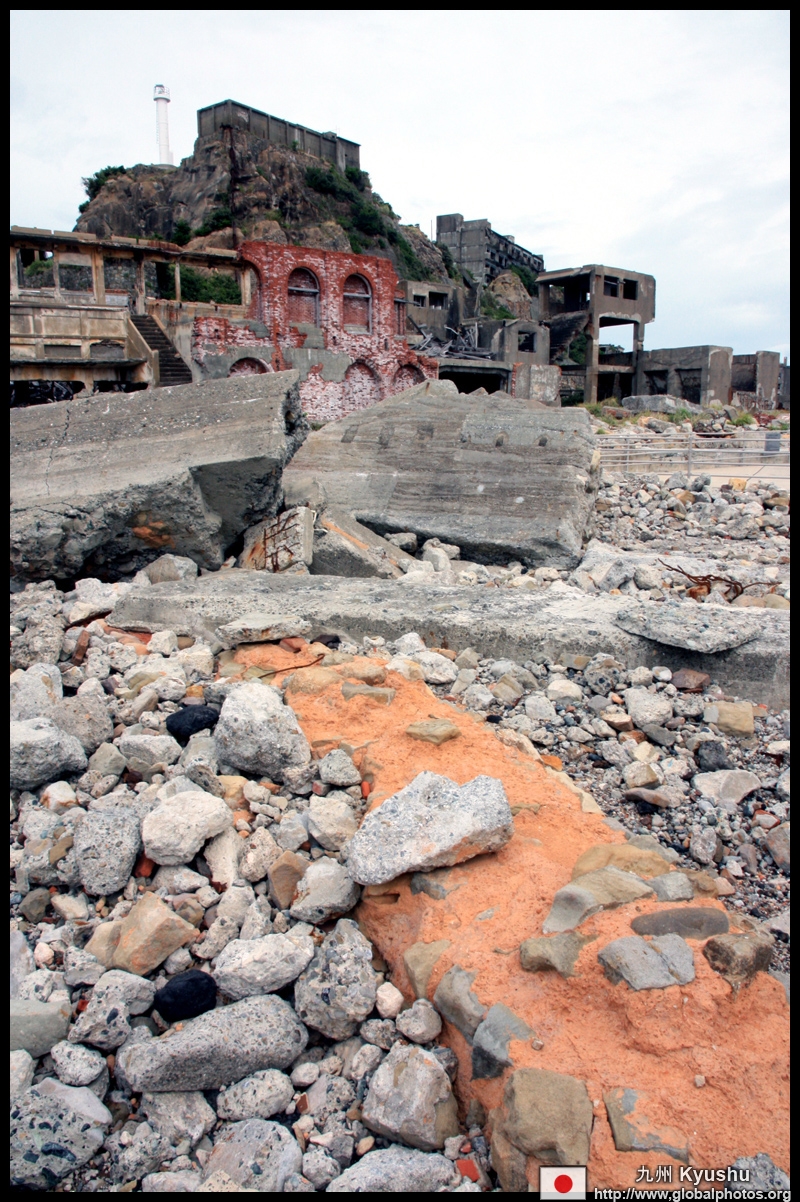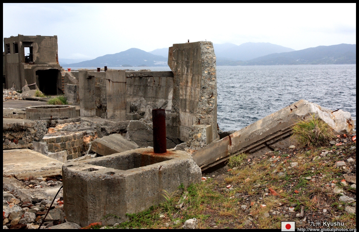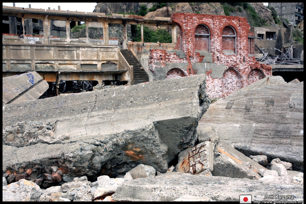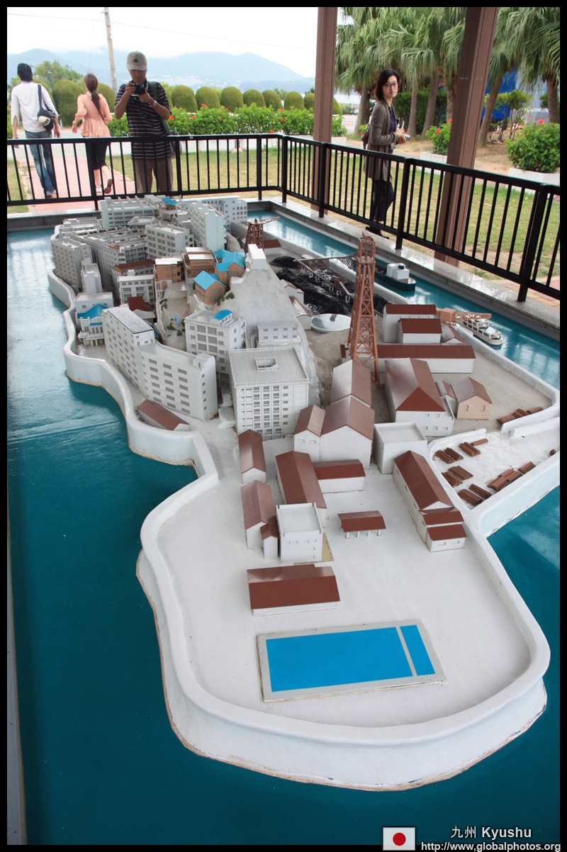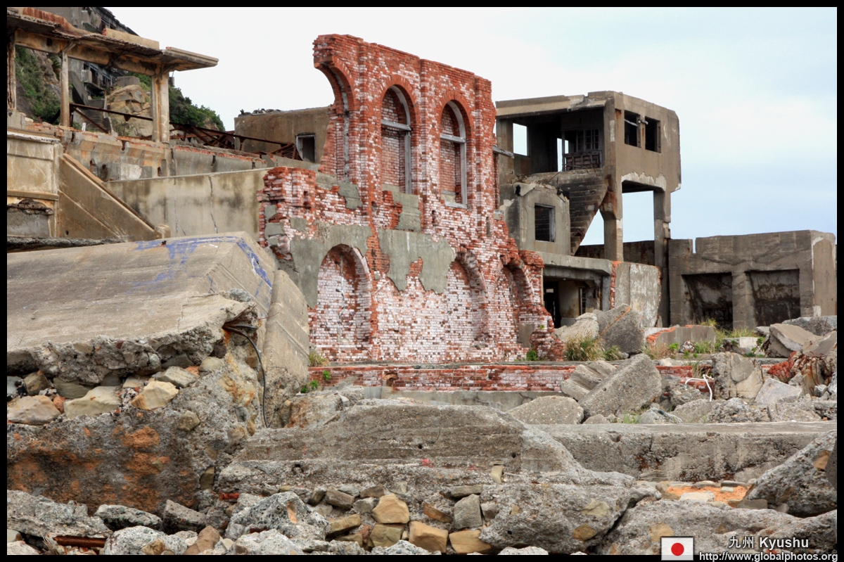 Gunkanjima is located about 20km ofshore from Nagasaki. Its prosperity began when coal was discovered in 1810 and Mitsubishi developed coal mining on the island in 1890. Miners lived in dormitories on the island and the population reached oveer 5200 in 1960. The mines closed in 1974 and the island was subsequently abandoned. Today, visitors can only reach the island via escorted local tour, although they give English pamphlets to non-Japanese speakers.