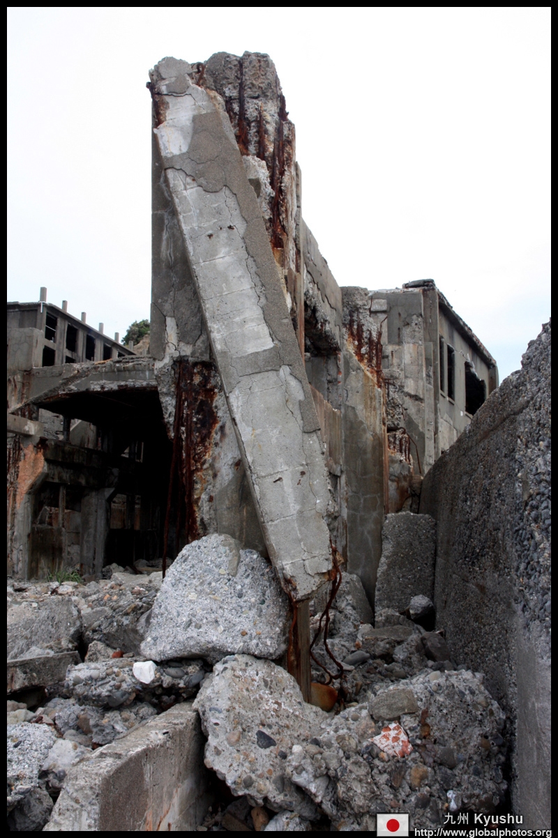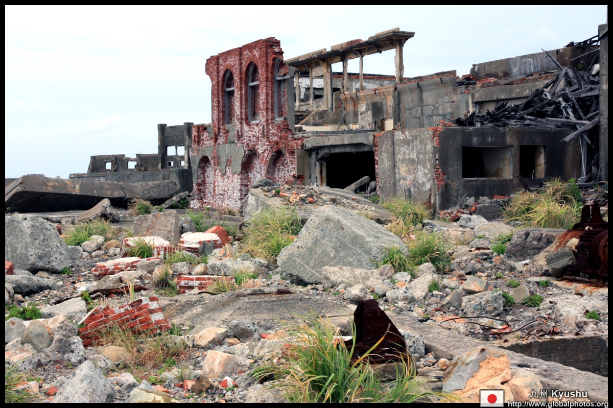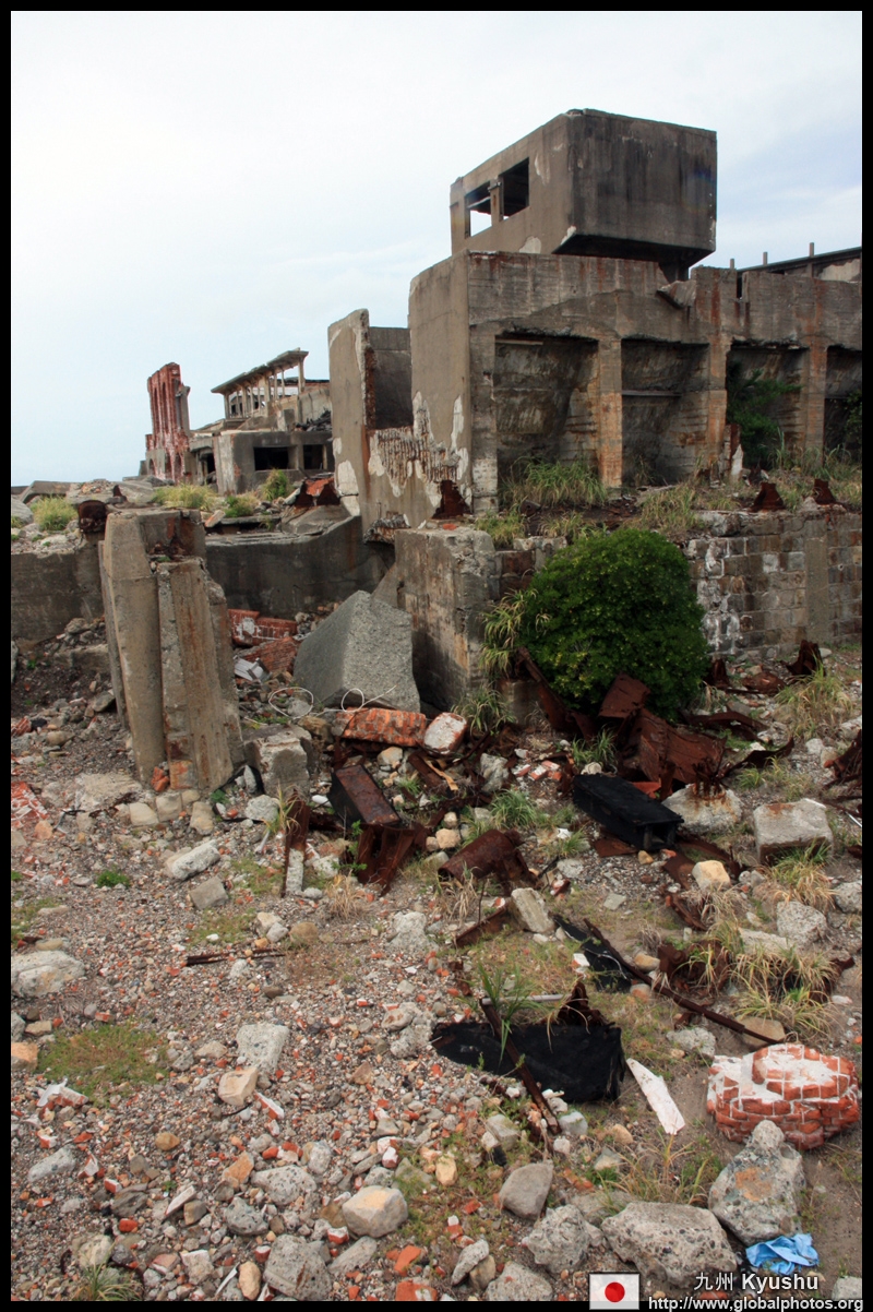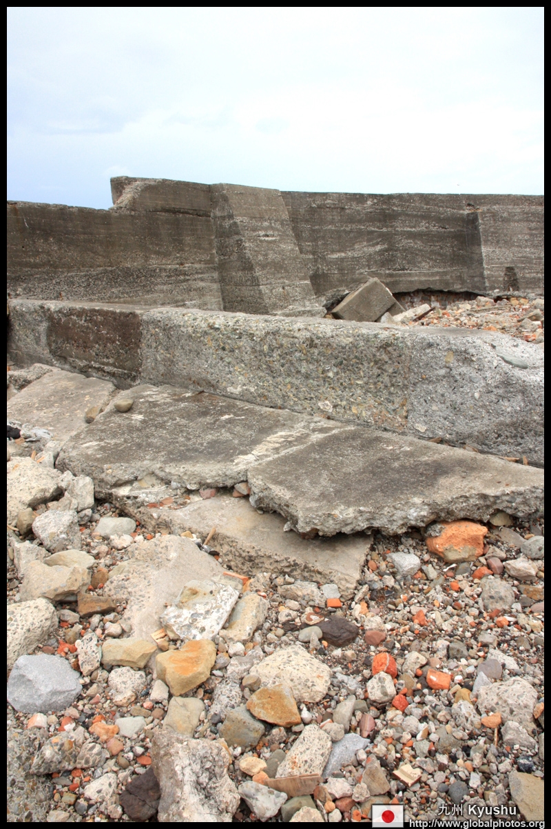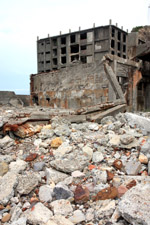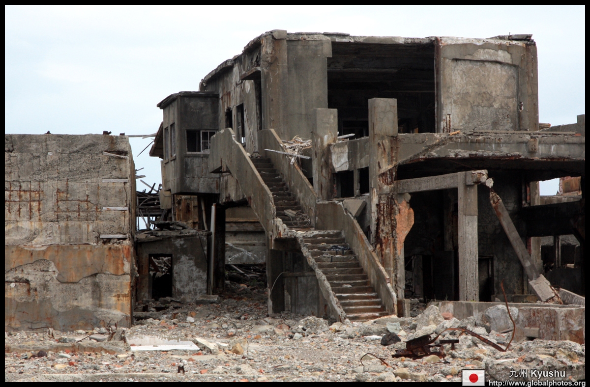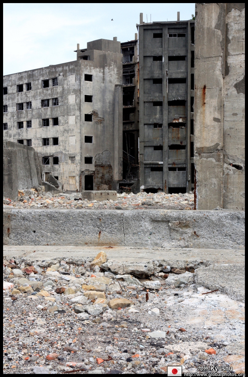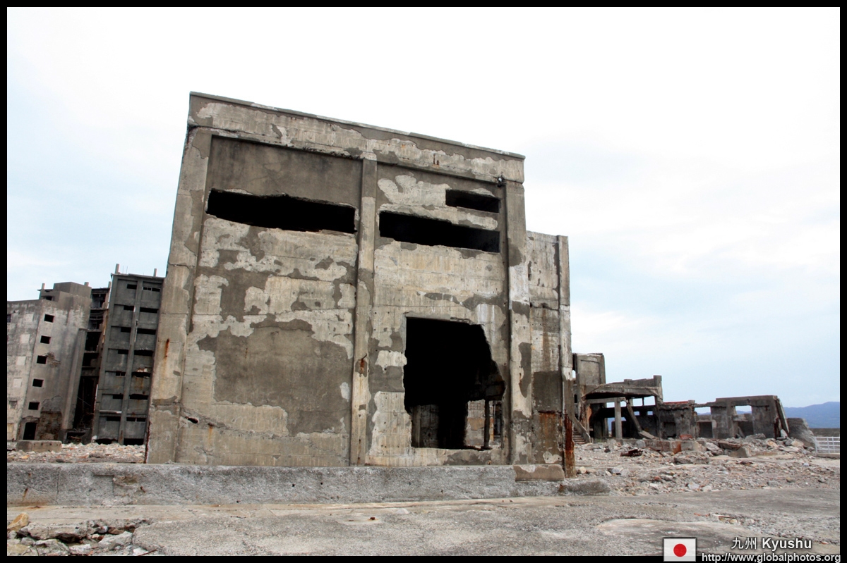 Gunkanjima is located about 20km ofshore from Nagasaki. Its prosperity began when coal was discovered in 1810 and Mitsubishi developed coal mining on the island in 1890. Miners lived in dormitories on the island and the population reached oveer 5200 in 1960. The mines closed in 1974 and the island was subsequently abandoned. Today, visitors can only reach the island via escorted local tour, although they give English pamphlets to non-Japanese speakers.