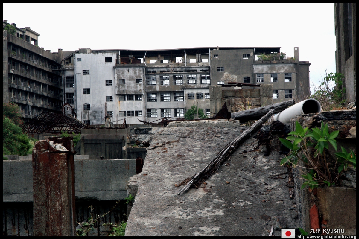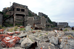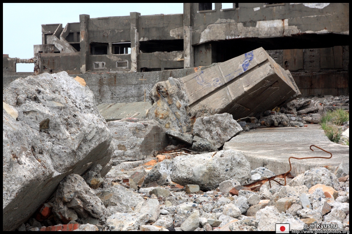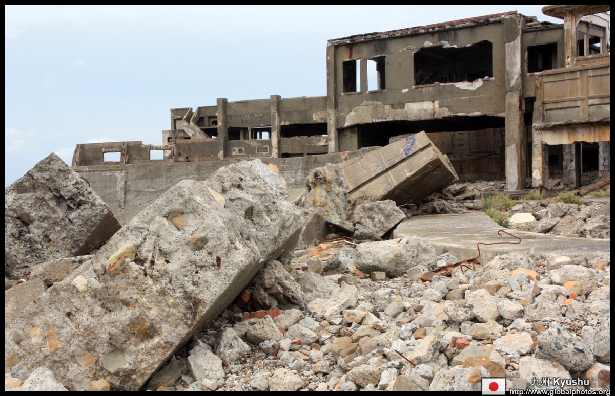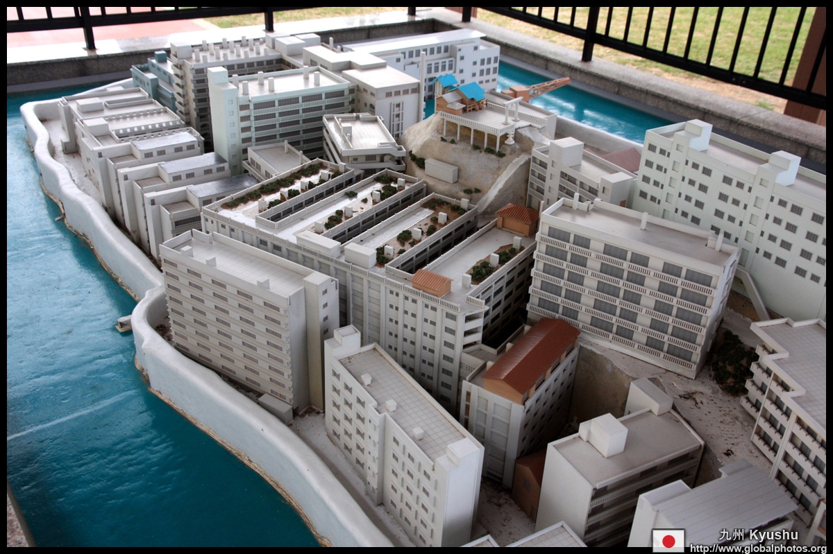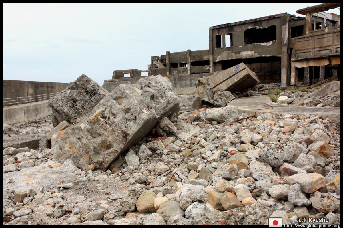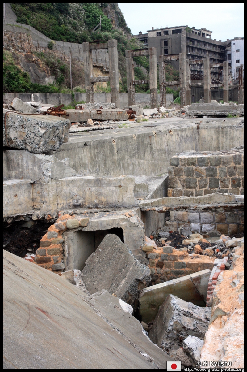 Gunkanjima is located about 20km ofshore from Nagasaki. Its prosperity began when coal was discovered in 1810 and Mitsubishi developed coal mining on the island in 1890. Miners lived in dormitories on the island and the population reached oveer 5200 in 1960. The mines closed in 1974 and the island was subsequently abandoned. Today, visitors can only reach the island via escorted local tour, although they give English pamphlets to non-Japanese speakers.