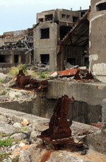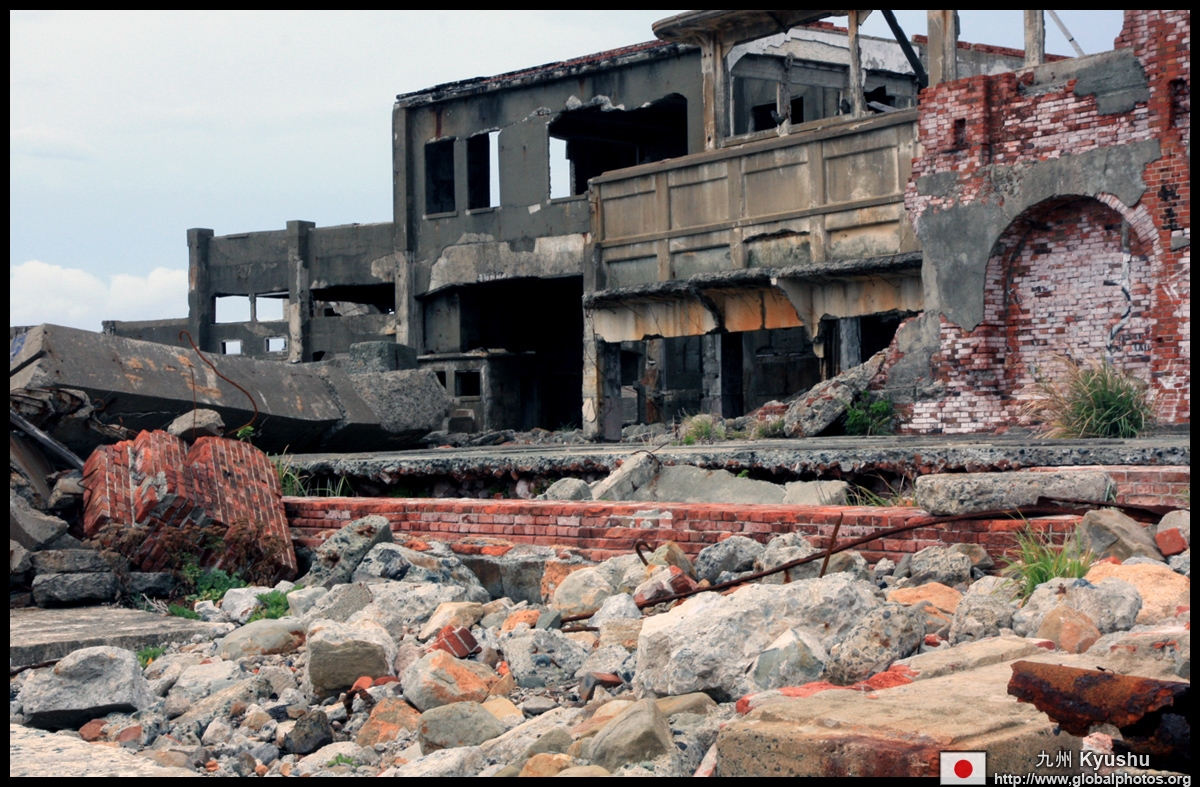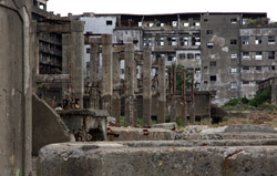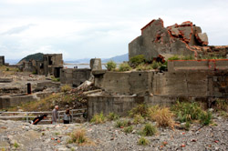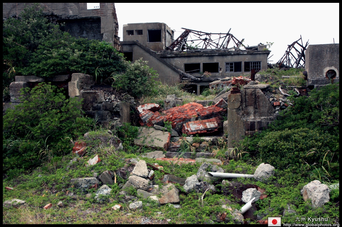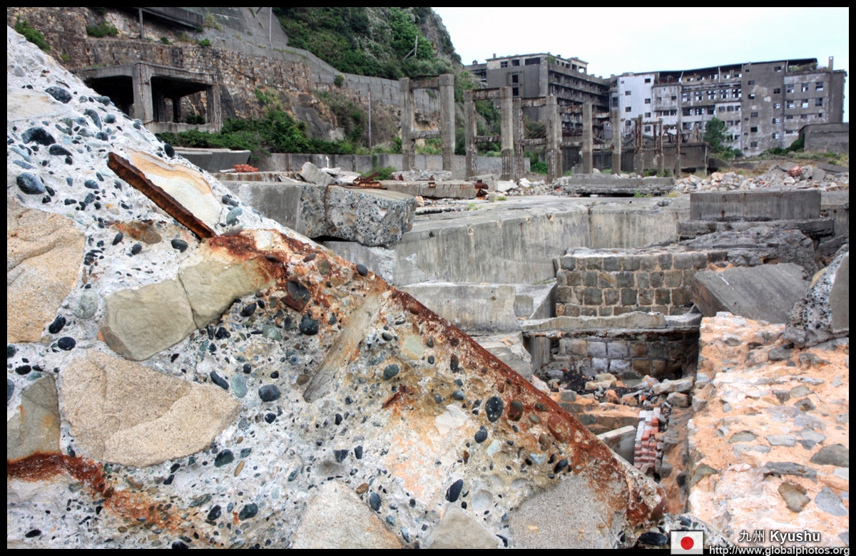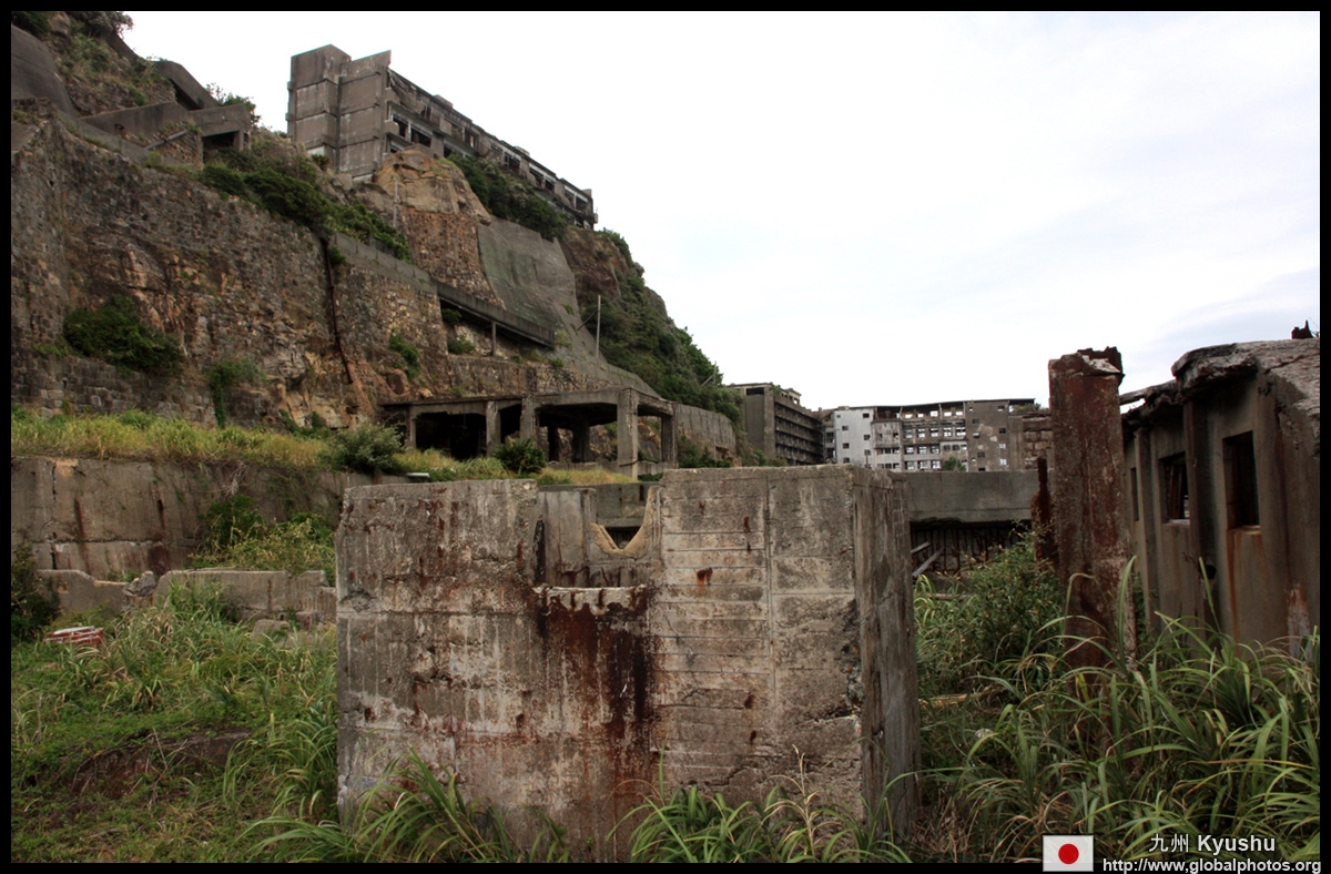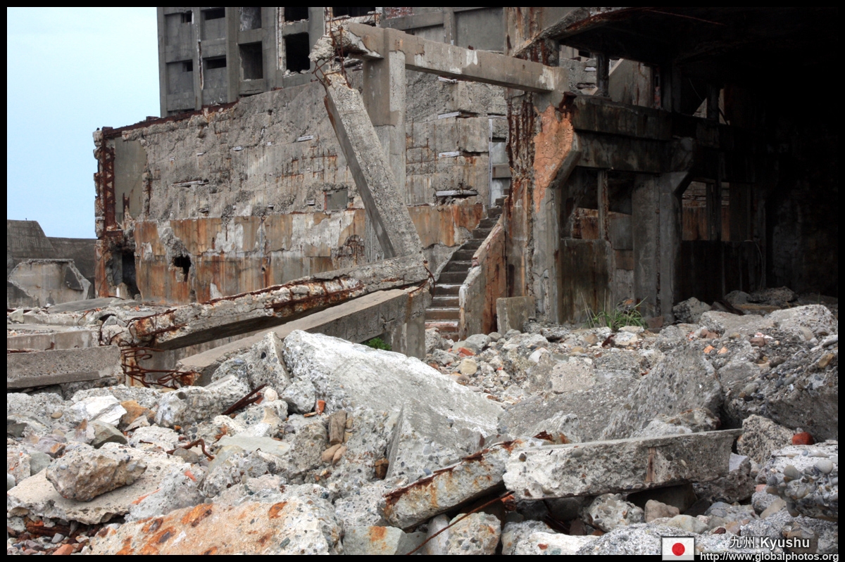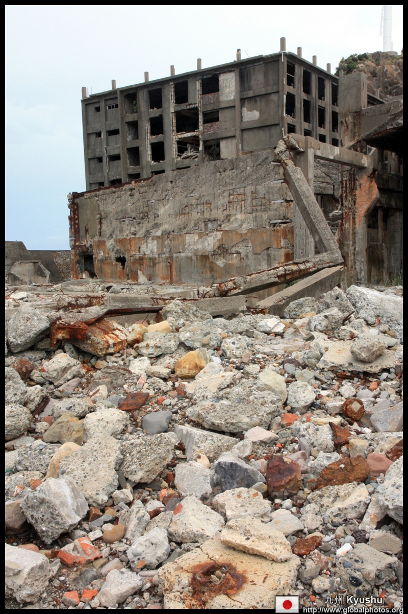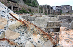 Gunkanjima is located about 20km ofshore from Nagasaki. Its prosperity began when coal was discovered in 1810 and Mitsubishi developed coal mining on the island in 1890. Miners lived in dormitories on the island and the population reached oveer 5200 in 1960. The mines closed in 1974 and the island was subsequently abandoned. Today, visitors can only reach the island via escorted local tour, although they give English pamphlets to non-Japanese speakers.