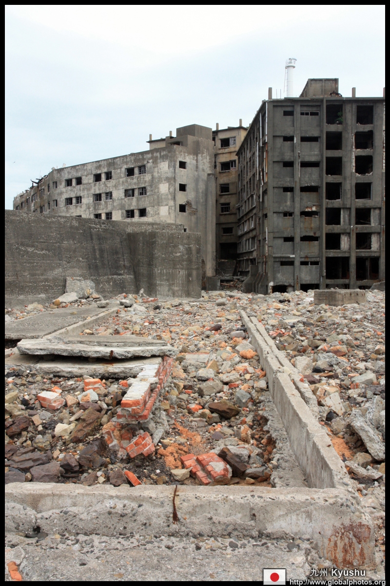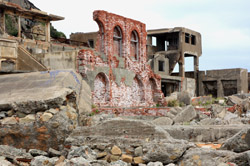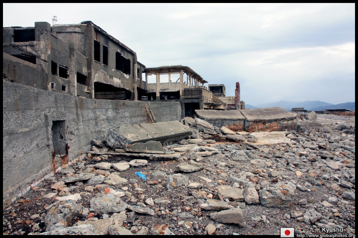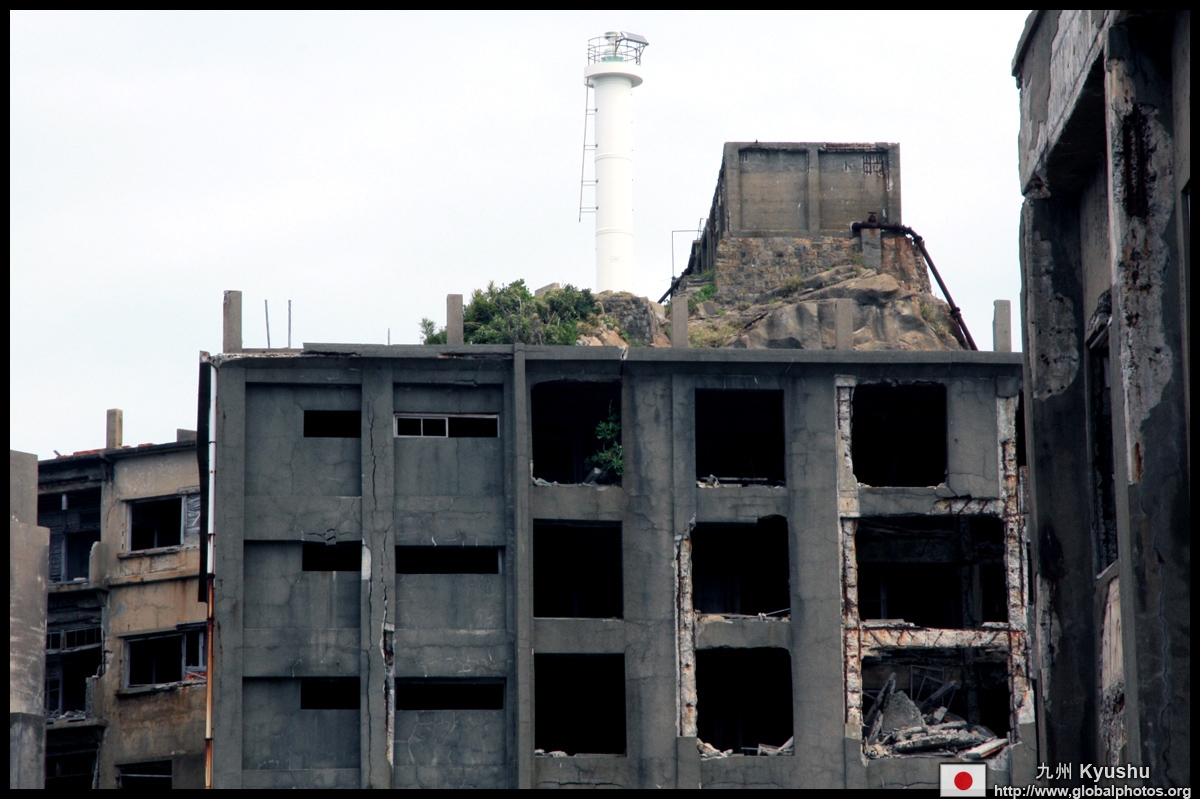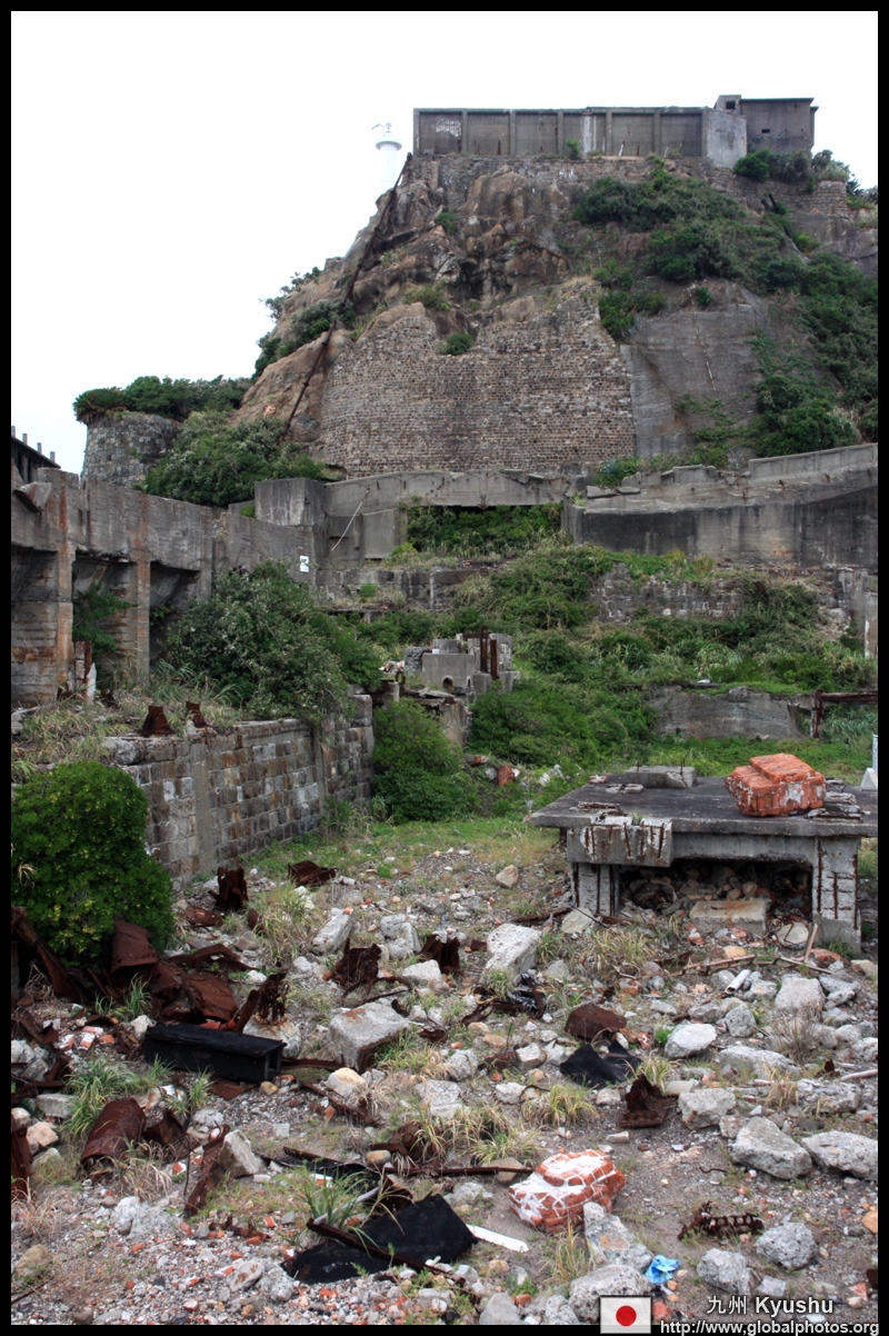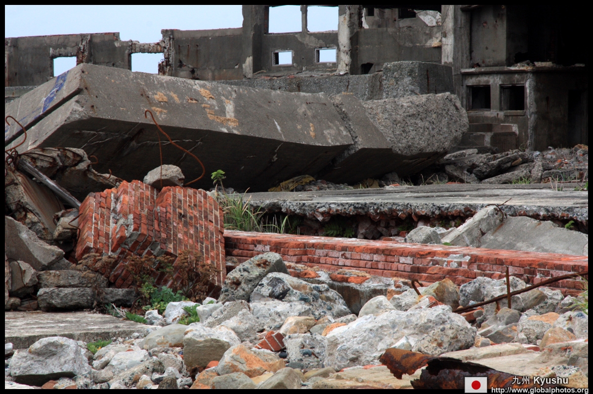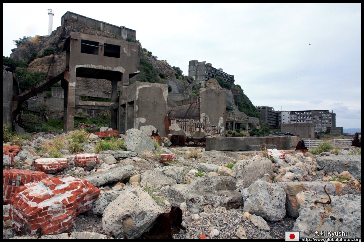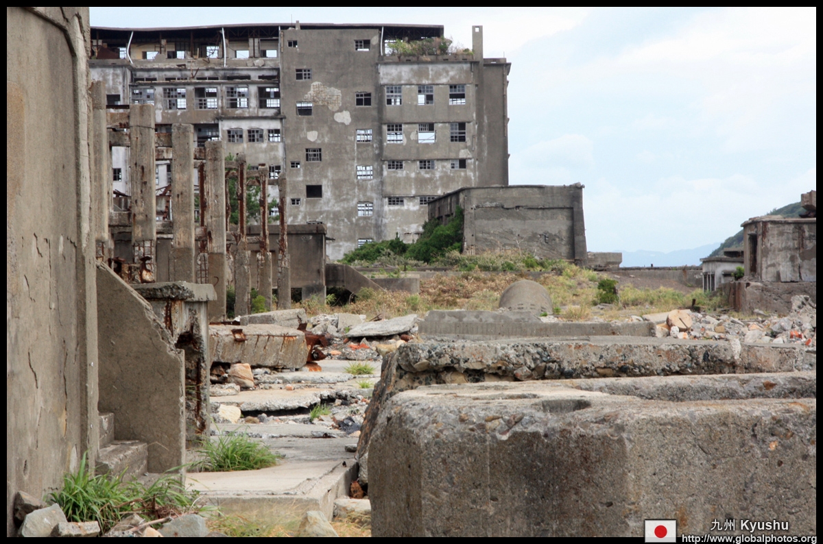 Gunkanjima is located about 20km ofshore from Nagasaki. Its prosperity began when coal was discovered in 1810 and Mitsubishi developed coal mining on the island in 1890. Miners lived in dormitories on the island and the population reached oveer 5200 in 1960. The mines closed in 1974 and the island was subsequently abandoned. Today, visitors can only reach the island via escorted local tour, although they give English pamphlets to non-Japanese speakers.