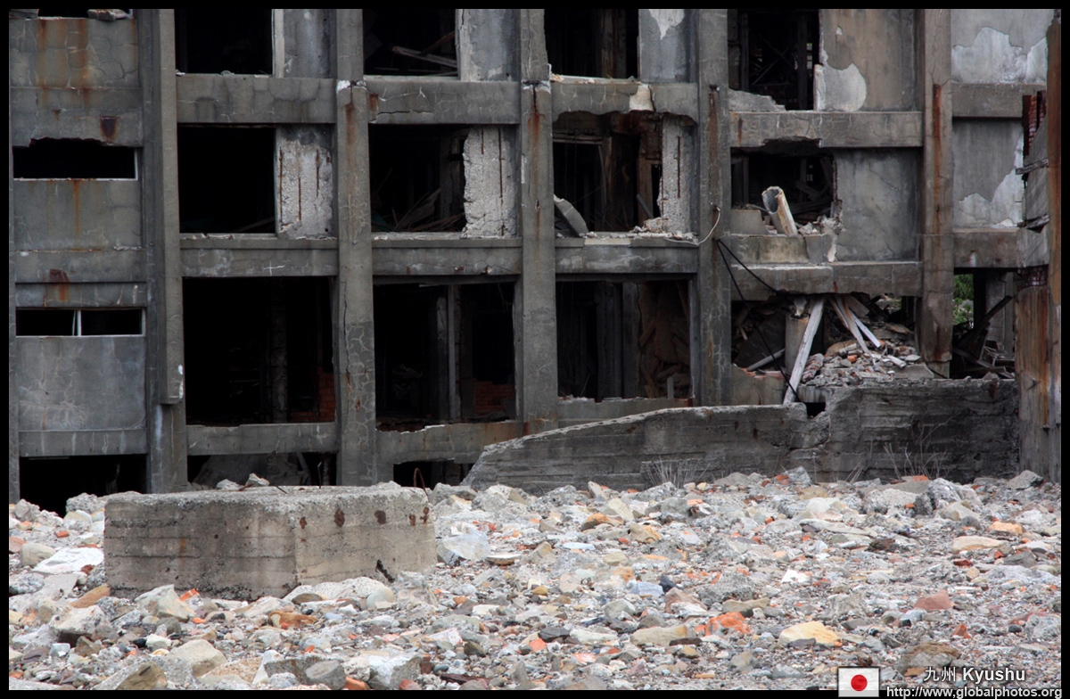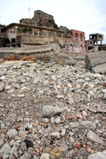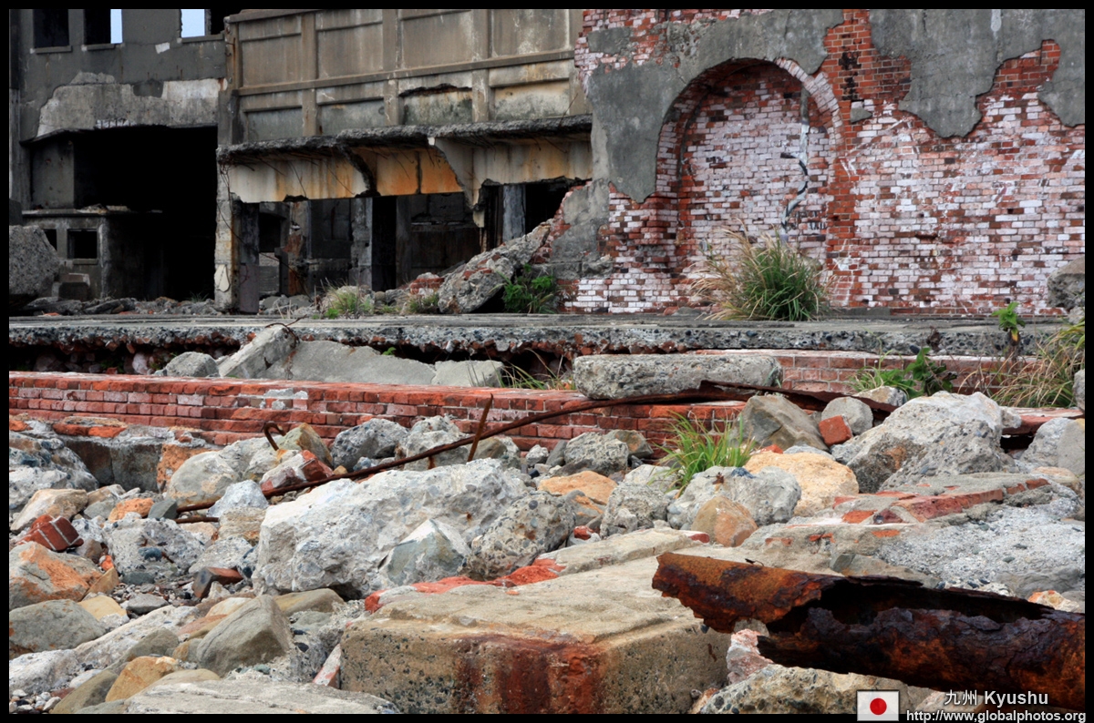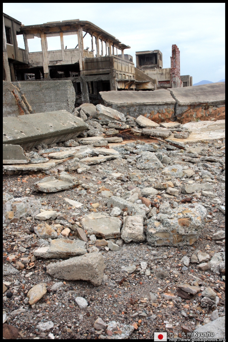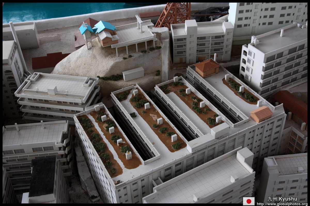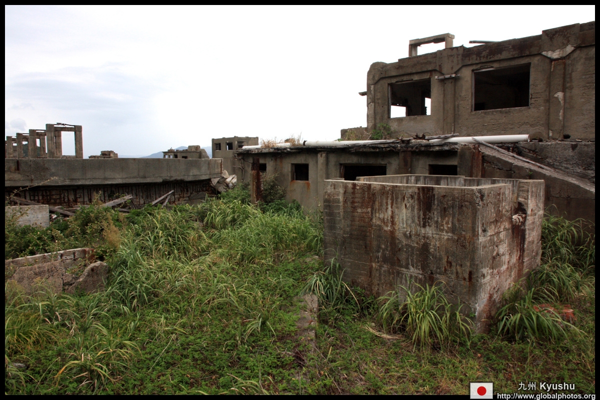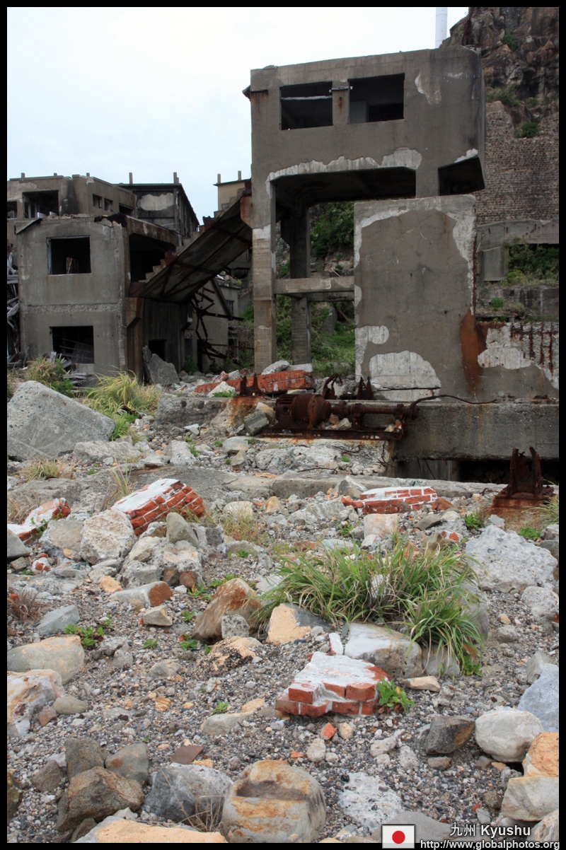Gunkanjima is located about 20km ofshore from Nagasaki. Its prosperity began when coal was discovered in 1810 and Mitsubishi developed coal mining on the island in 1890. Miners lived in dormitories on the island and the population reached oveer 5200 in 1960. The mines closed in 1974 and the island was subsequently abandoned. Today, visitors can only reach the island via escorted local tour, although they give English pamphlets to non-Japanese speakers.