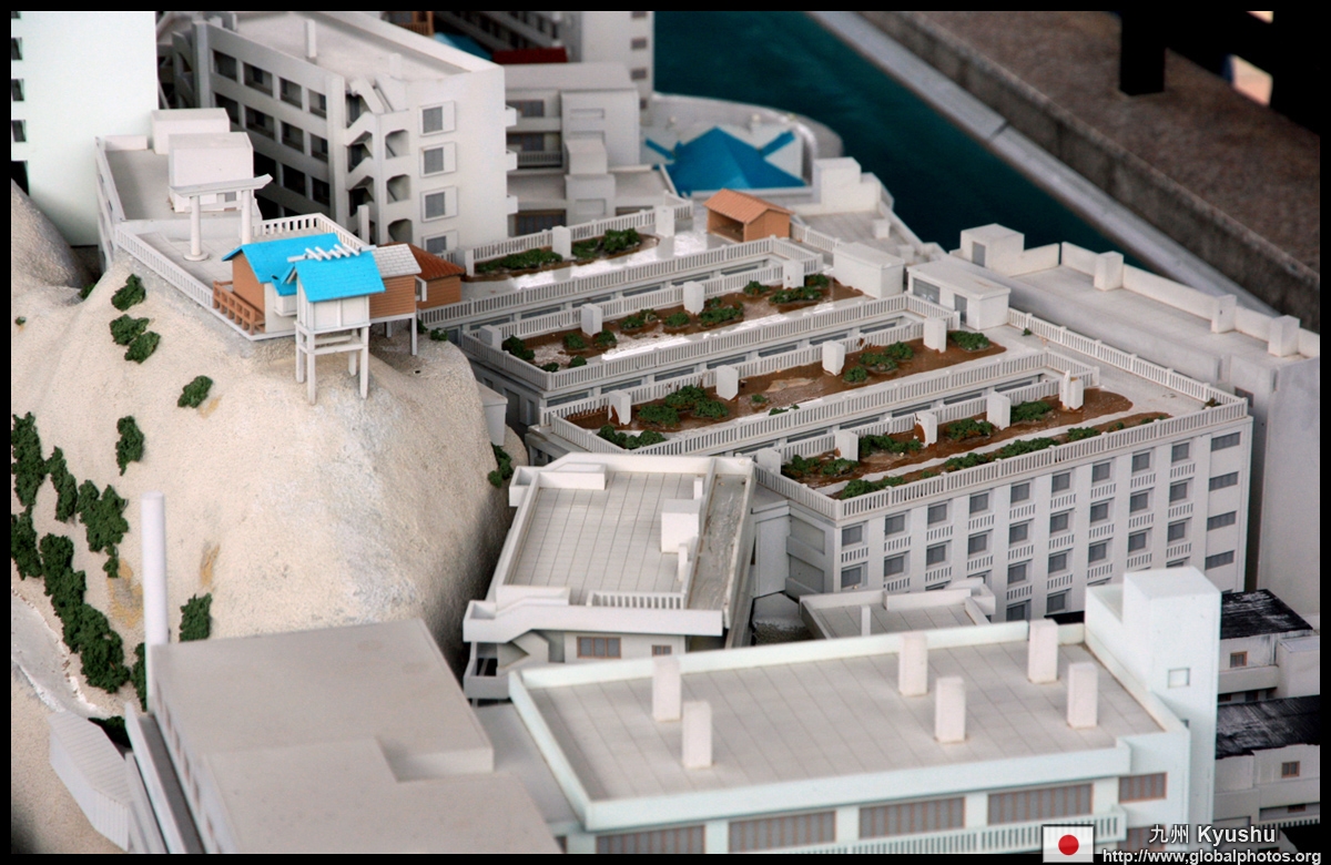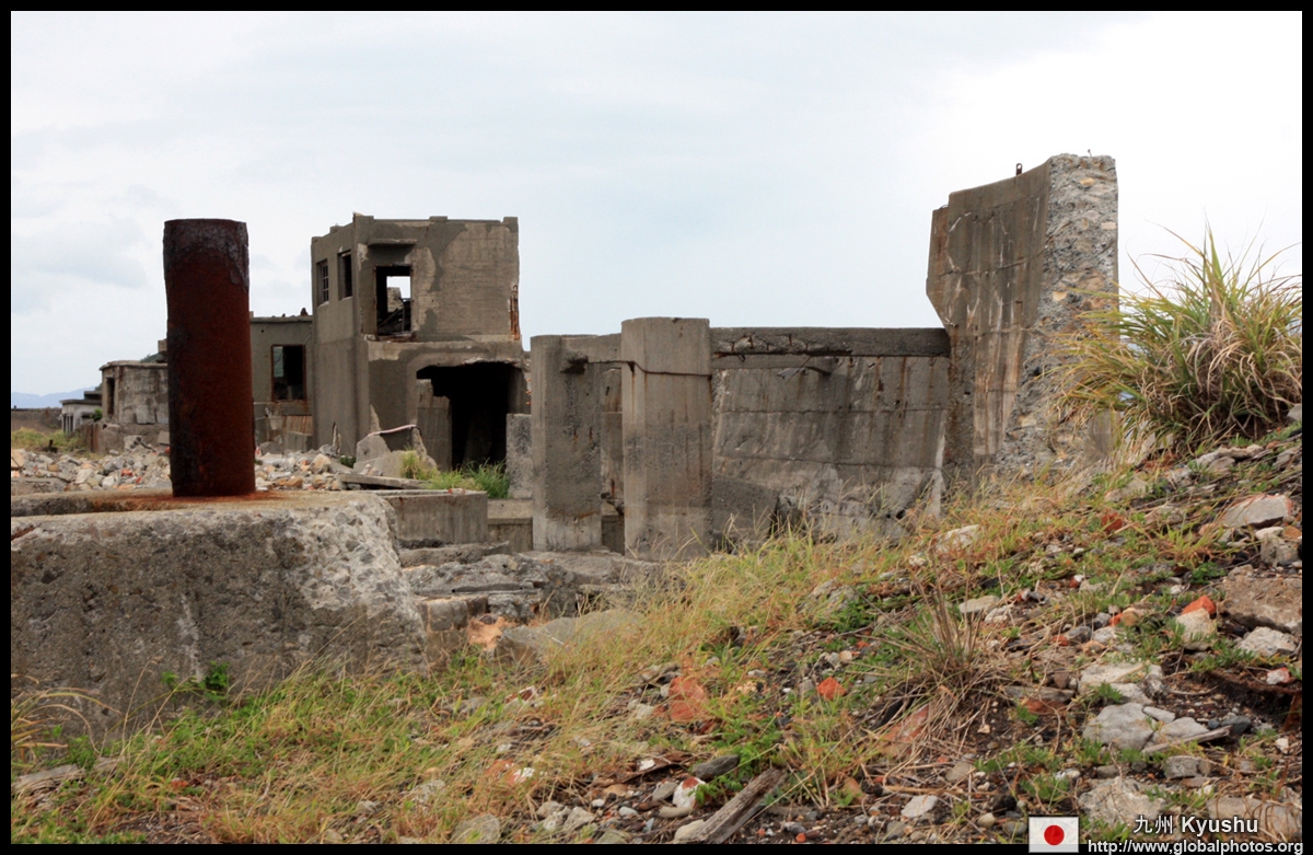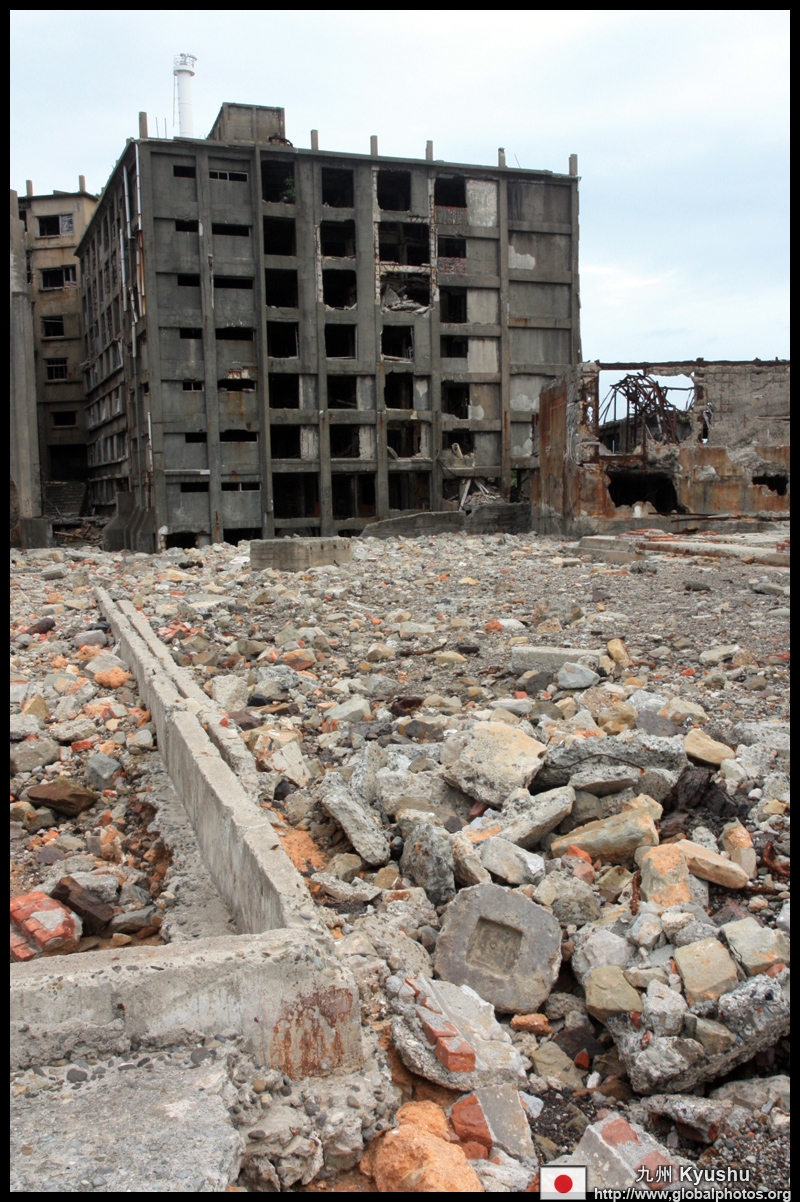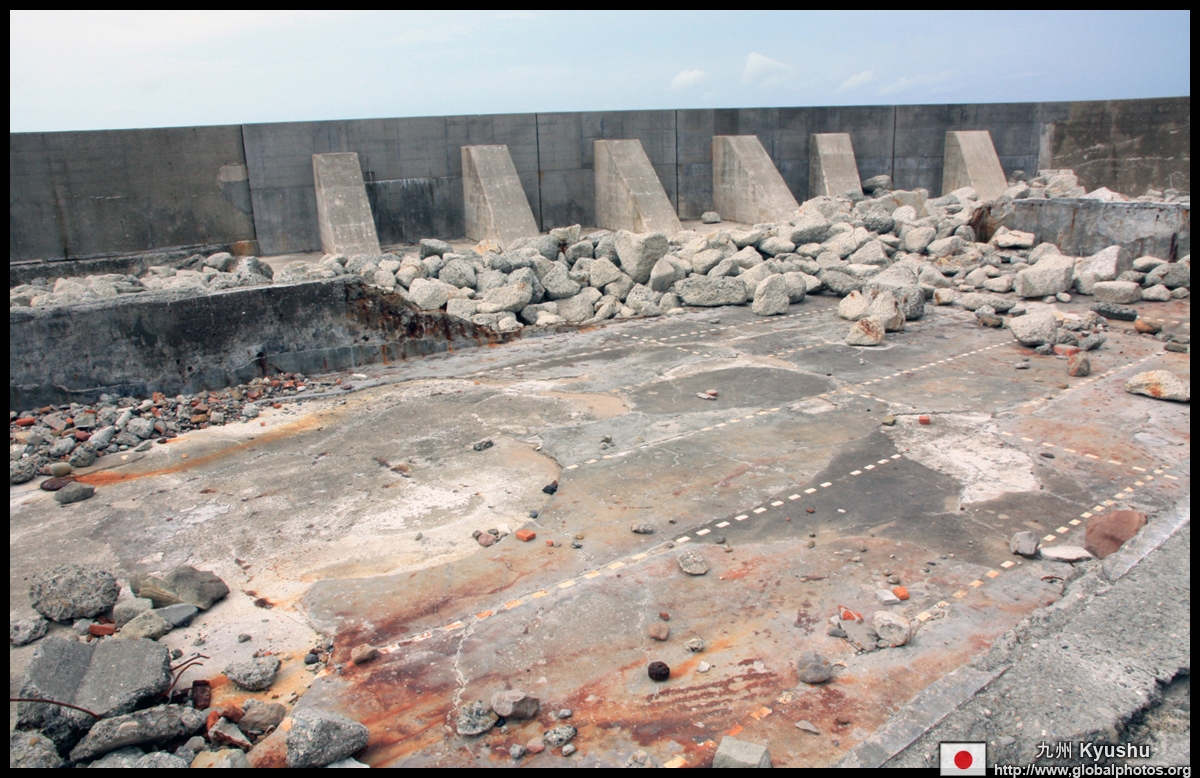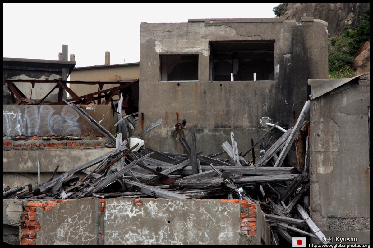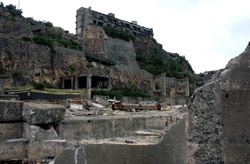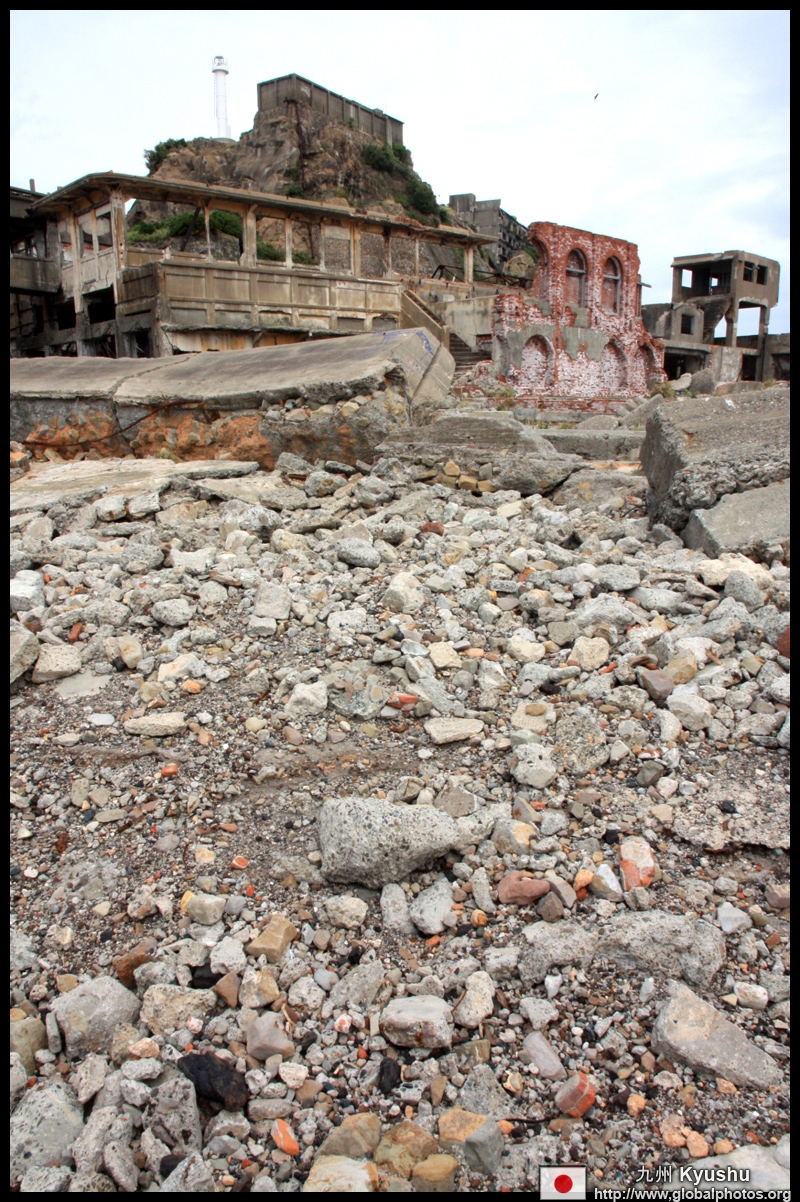 Gunkanjima is located about 20km ofshore from Nagasaki. Its prosperity began when coal was discovered in 1810 and Mitsubishi developed coal mining on the island in 1890. Miners lived in dormitories on the island and the population reached oveer 5200 in 1960. The mines closed in 1974 and the island was subsequently abandoned. Today, visitors can only reach the island via escorted local tour, although they give English pamphlets to non-Japanese speakers.