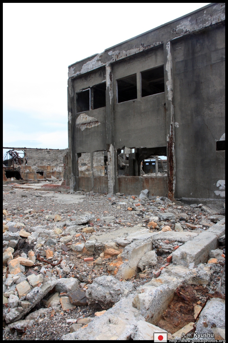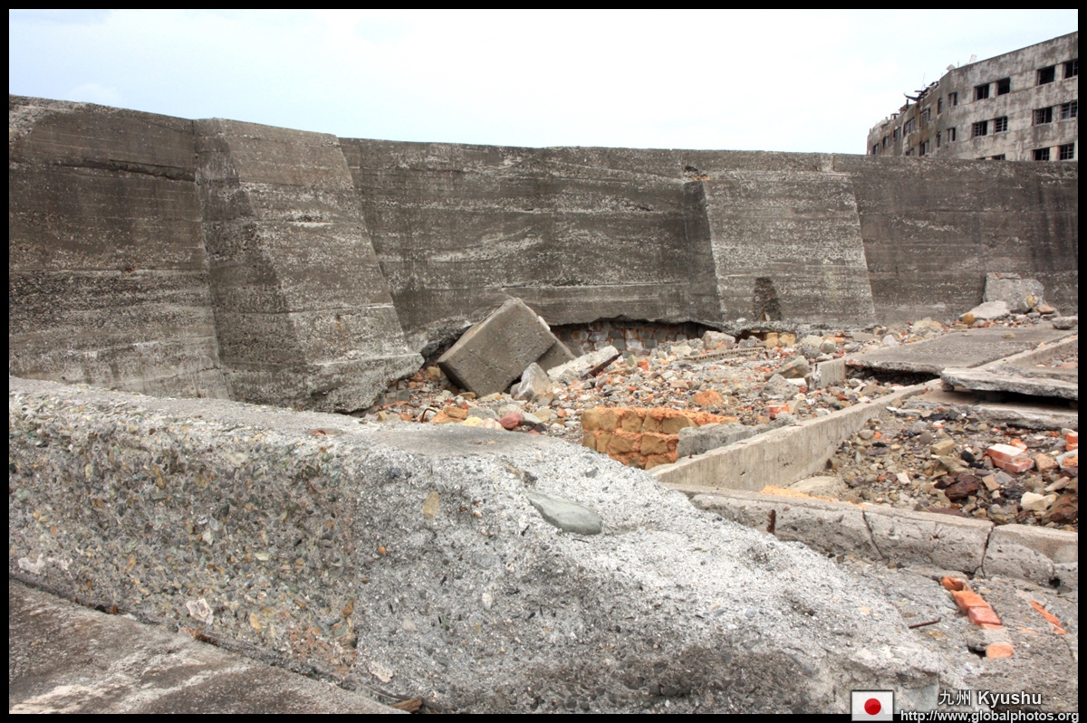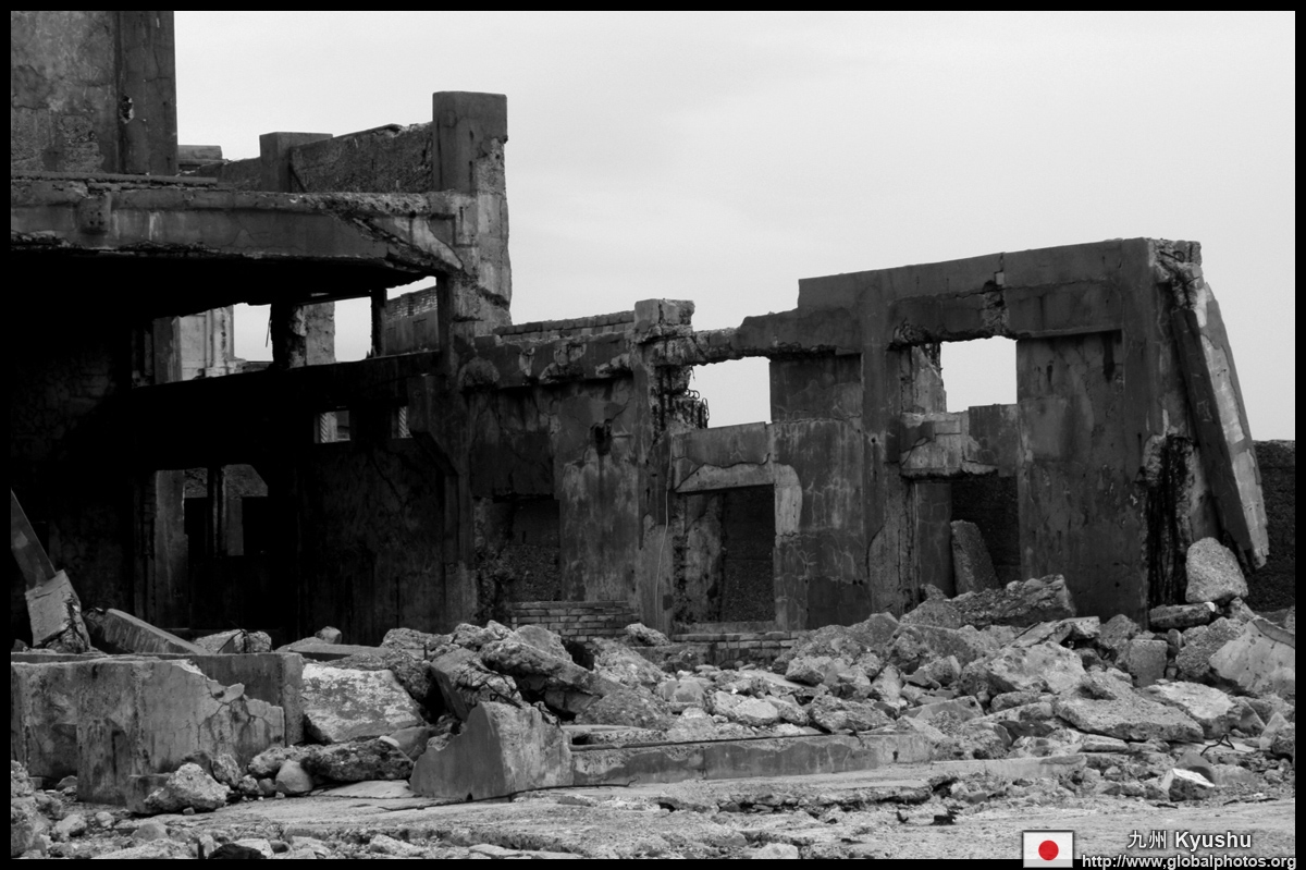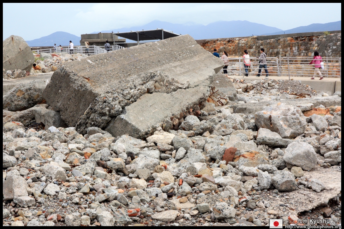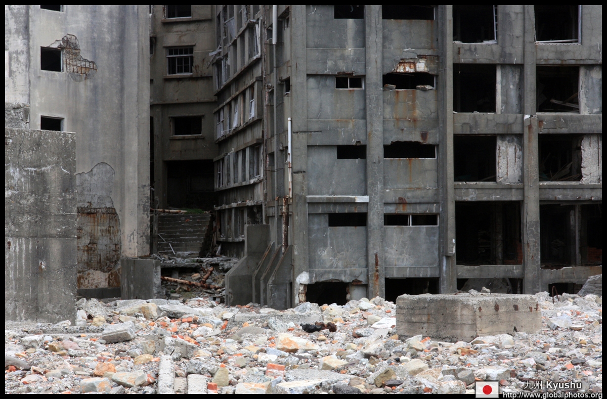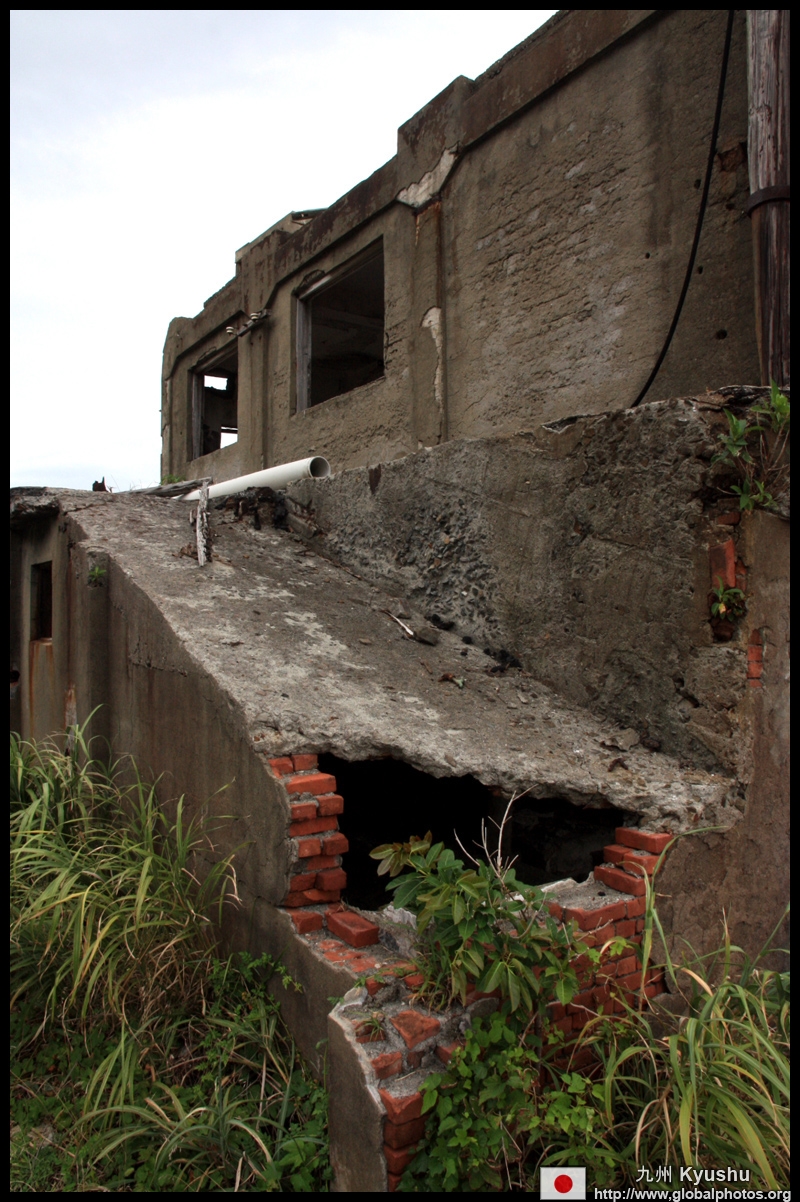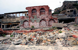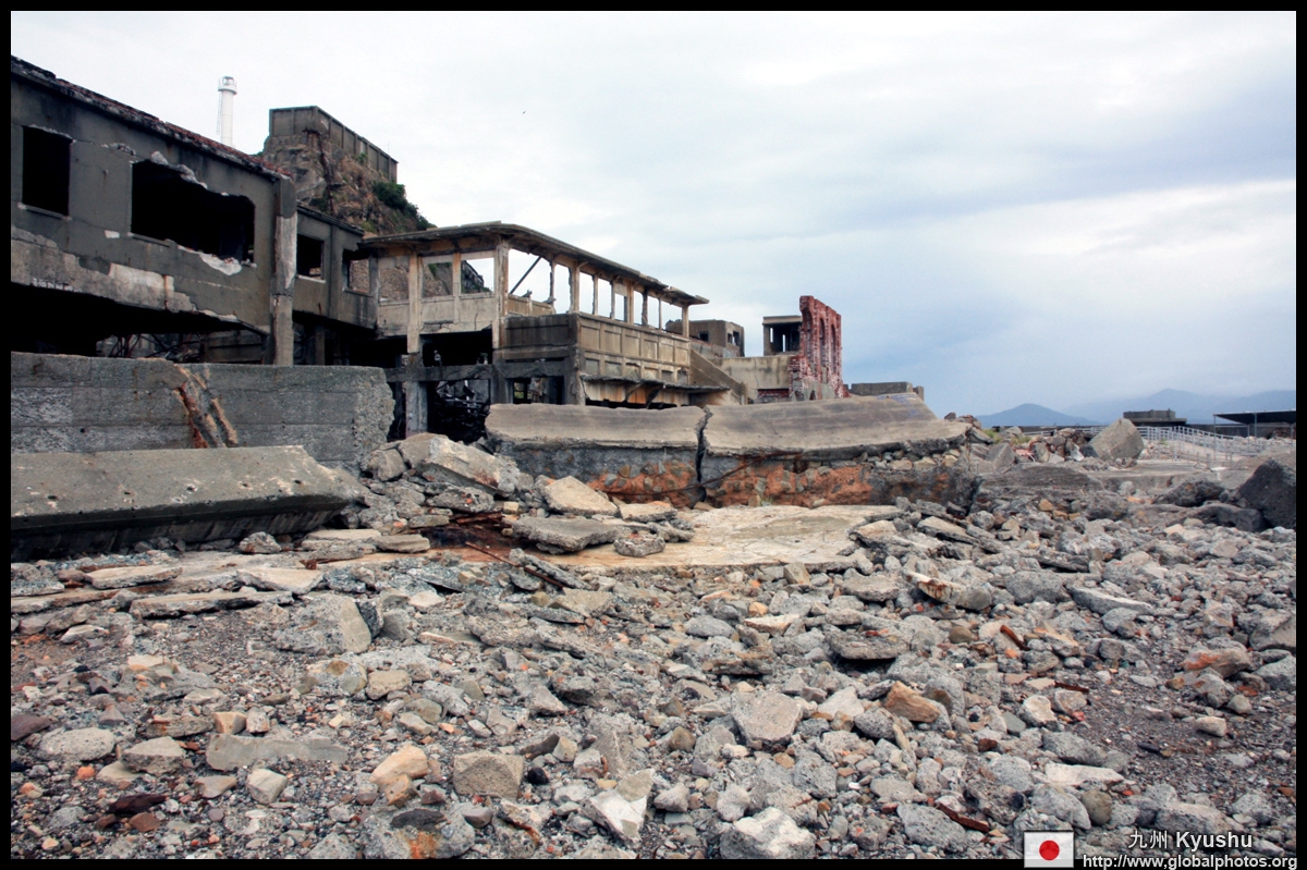 Gunkanjima is located about 20km ofshore from Nagasaki. Its prosperity began when coal was discovered in 1810 and Mitsubishi developed coal mining on the island in 1890. Miners lived in dormitories on the island and the population reached oveer 5200 in 1960. The mines closed in 1974 and the island was subsequently abandoned. Today, visitors can only reach the island via escorted local tour, although they give English pamphlets to non-Japanese speakers.