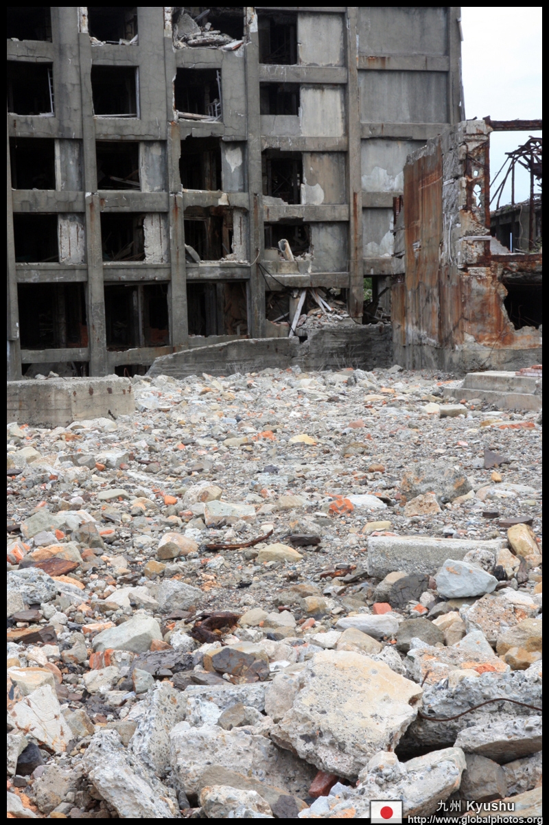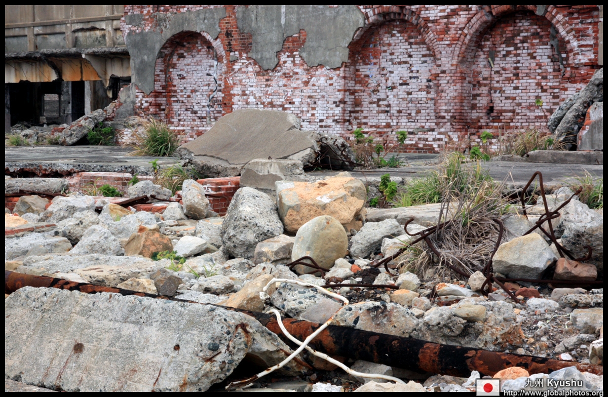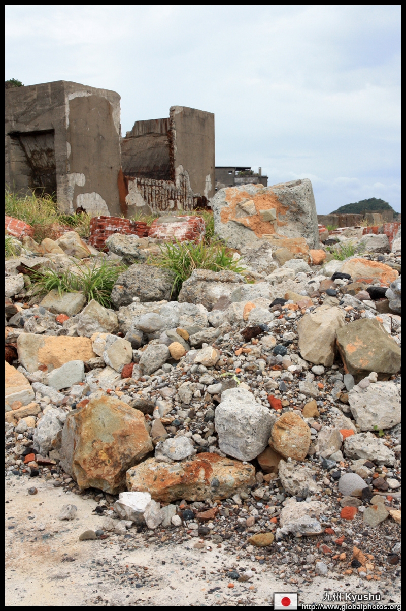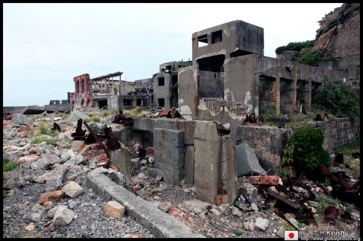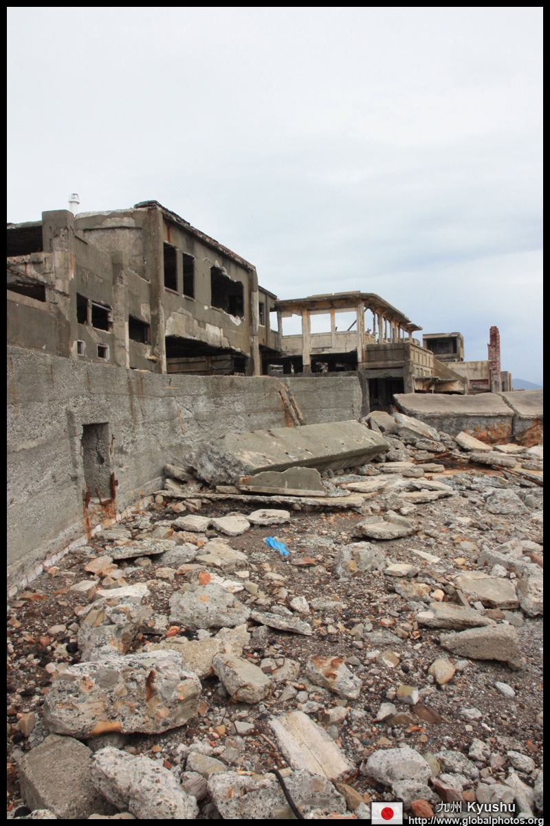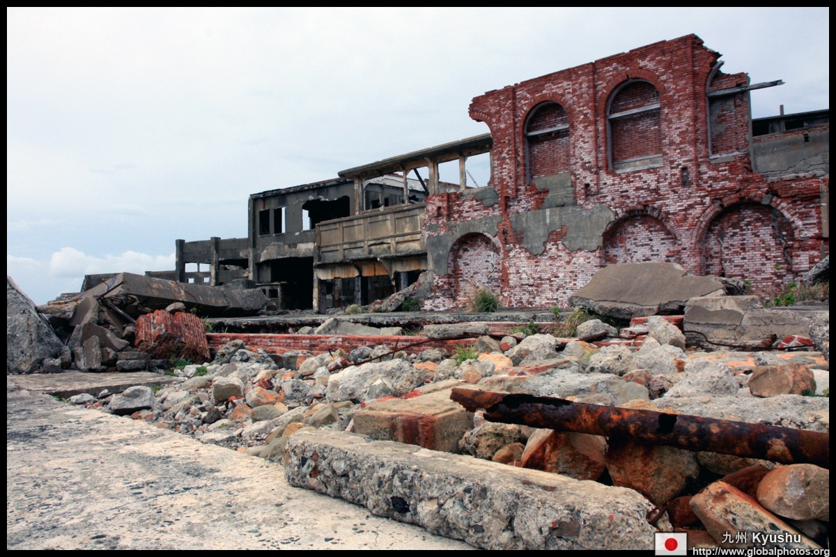 Gunkanjima is located about 20km ofshore from Nagasaki. Its prosperity began when coal was discovered in 1810 and Mitsubishi developed coal mining on the island in 1890. Miners lived in dormitories on the island and the population reached oveer 5200 in 1960. The mines closed in 1974 and the island was subsequently abandoned. Today, visitors can only reach the island via escorted local tour, although they give English pamphlets to non-Japanese speakers.