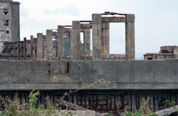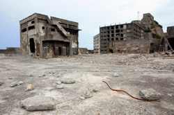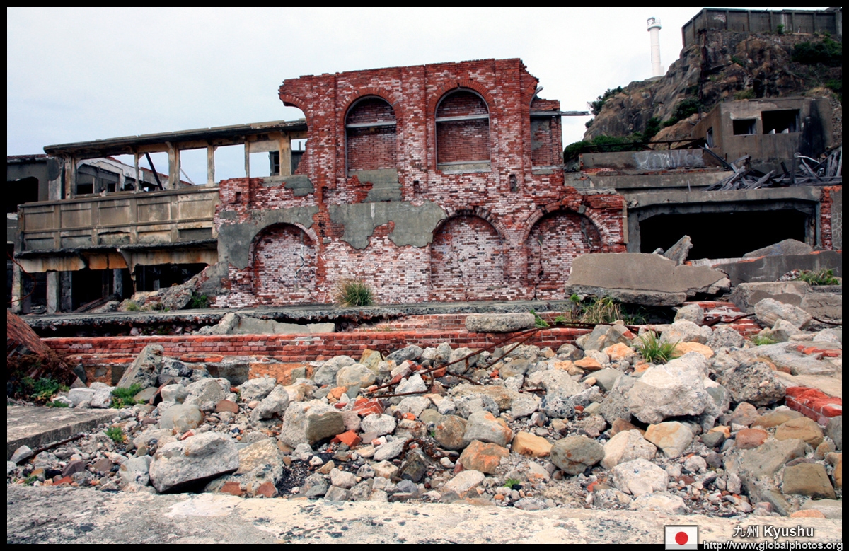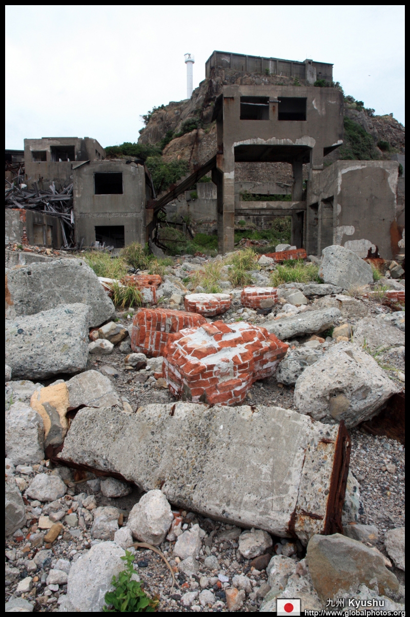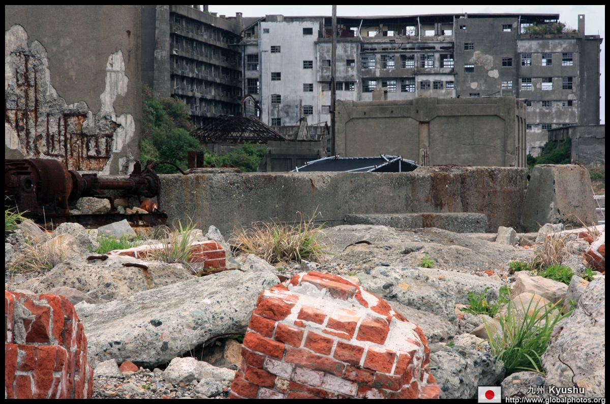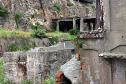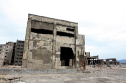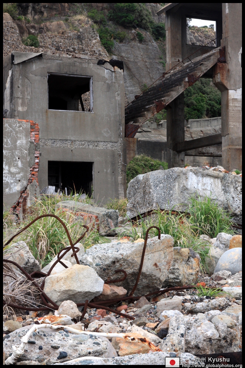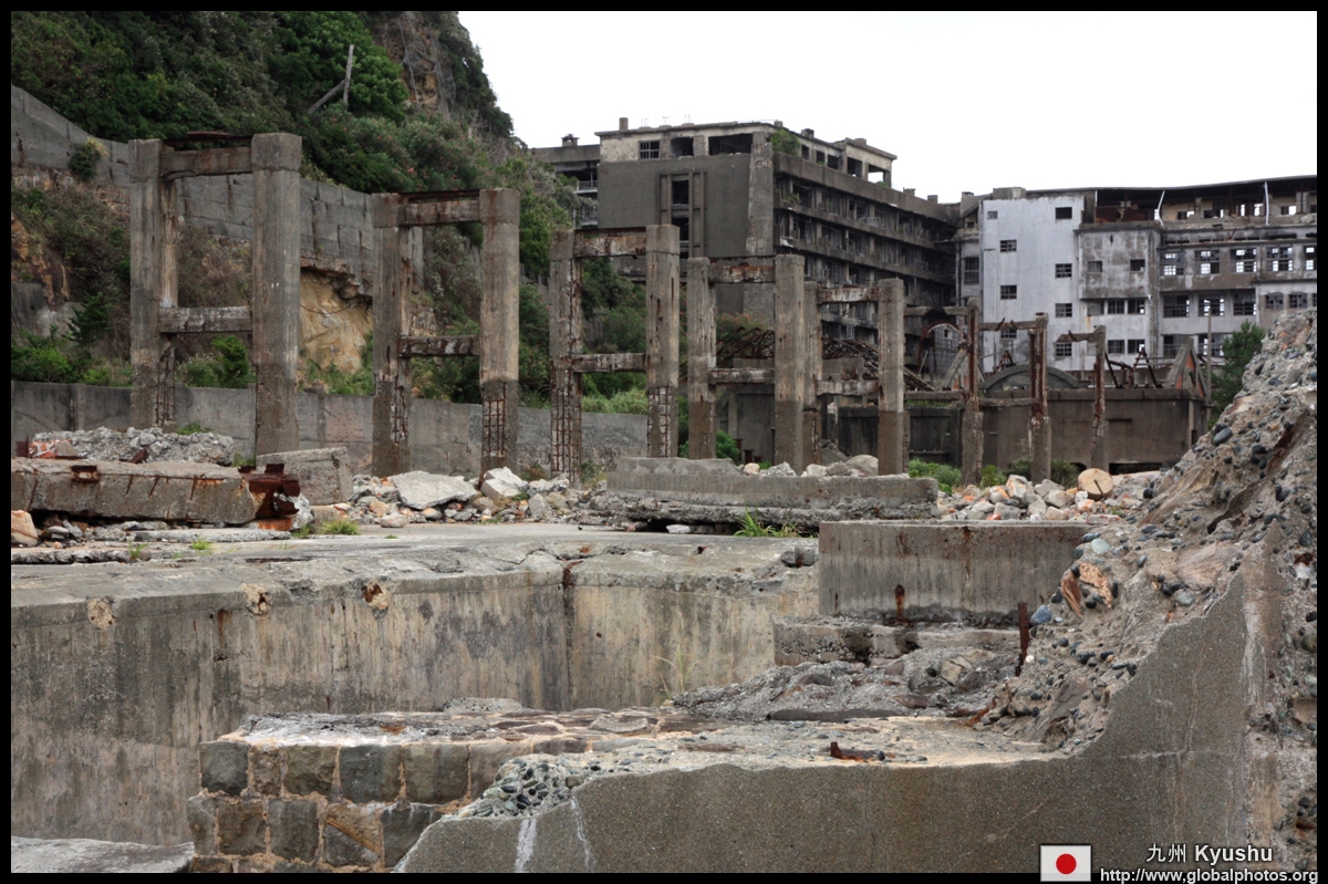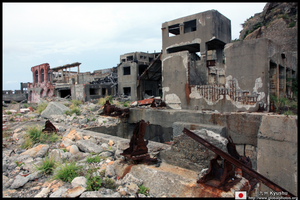 Gunkanjima is located about 20km ofshore from Nagasaki. Its prosperity began when coal was discovered in 1810 and Mitsubishi developed coal mining on the island in 1890. Miners lived in dormitories on the island and the population reached oveer 5200 in 1960. The mines closed in 1974 and the island was subsequently abandoned. Today, visitors can only reach the island via escorted local tour, although they give English pamphlets to non-Japanese speakers.