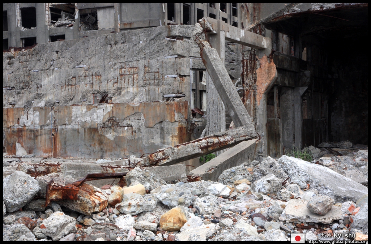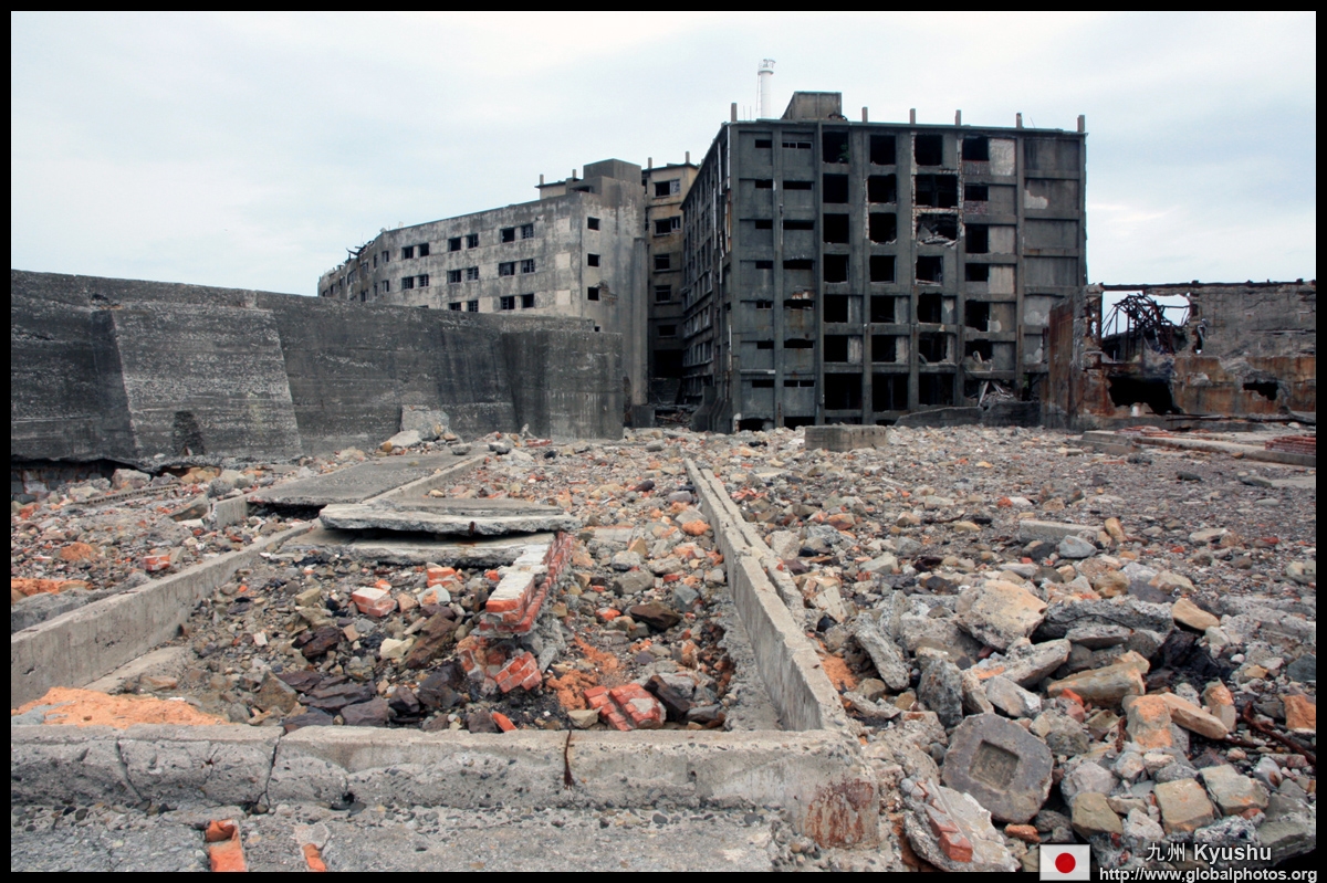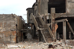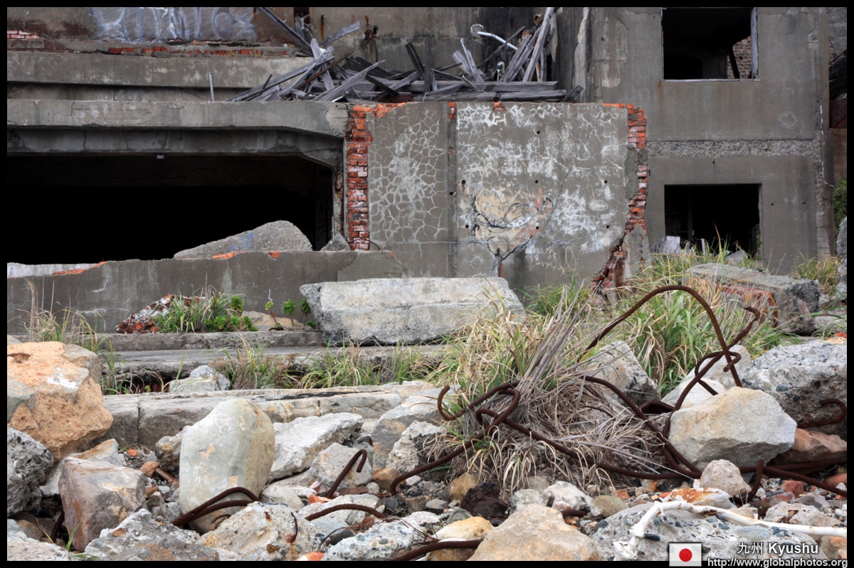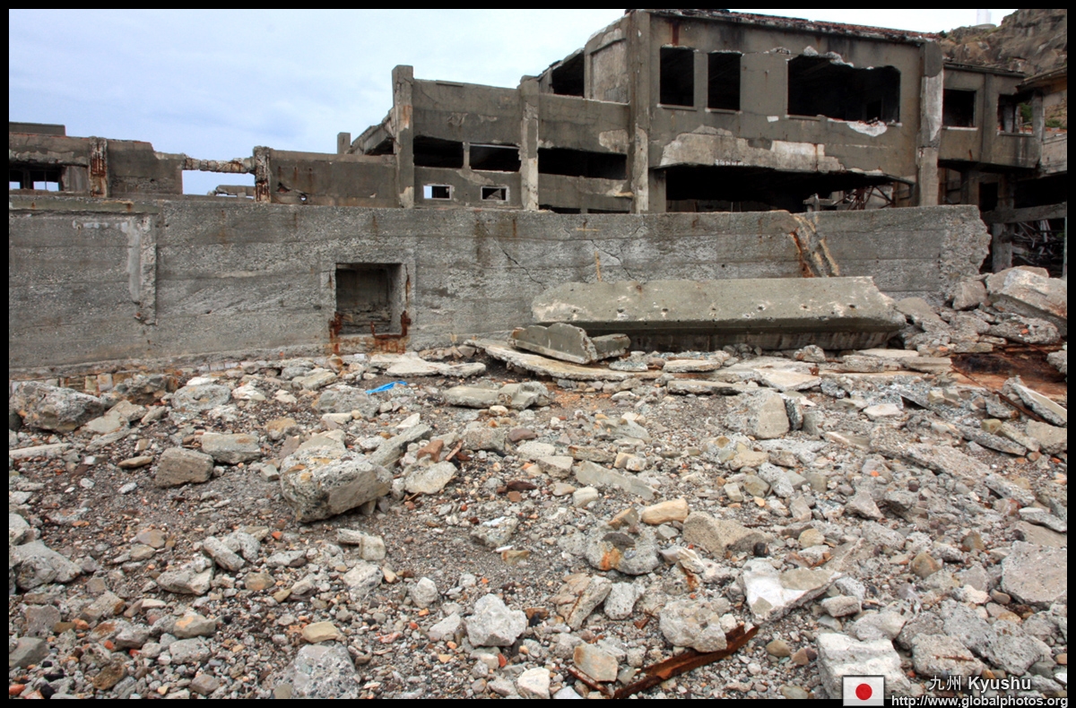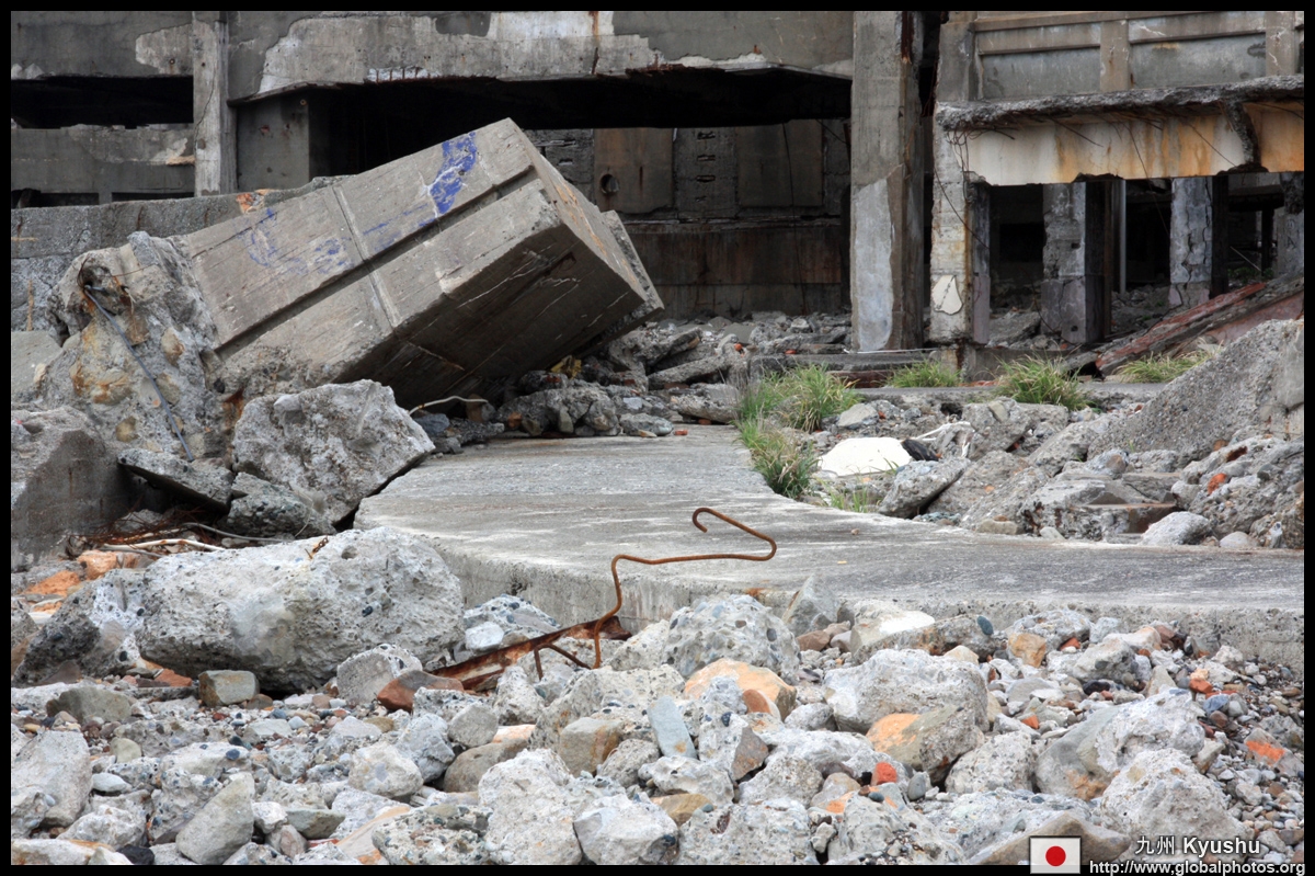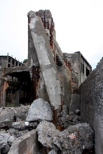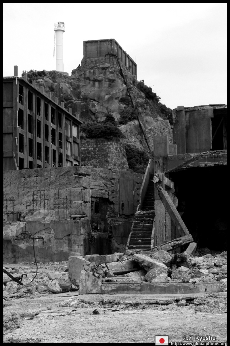 Gunkanjima is located about 20km ofshore from Nagasaki. Its prosperity began when coal was discovered in 1810 and Mitsubishi developed coal mining on the island in 1890. Miners lived in dormitories on the island and the population reached oveer 5200 in 1960. The mines closed in 1974 and the island was subsequently abandoned. Today, visitors can only reach the island via escorted local tour, although they give English pamphlets to non-Japanese speakers.