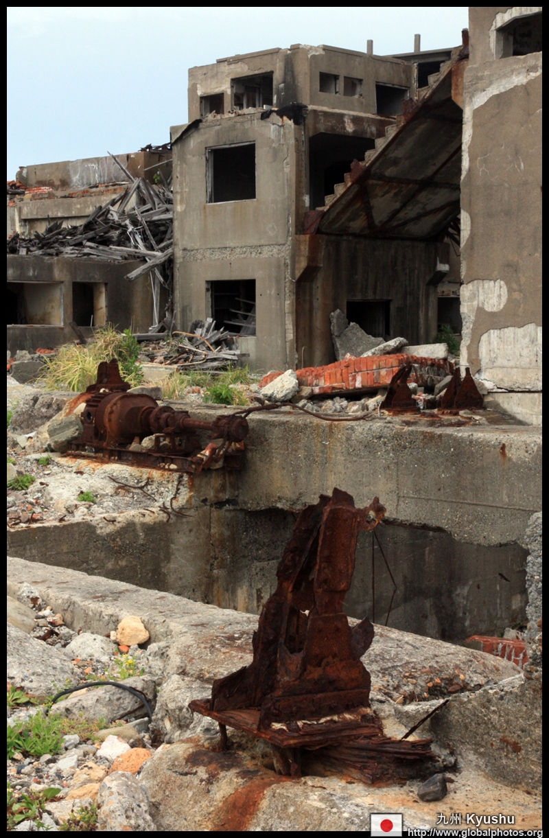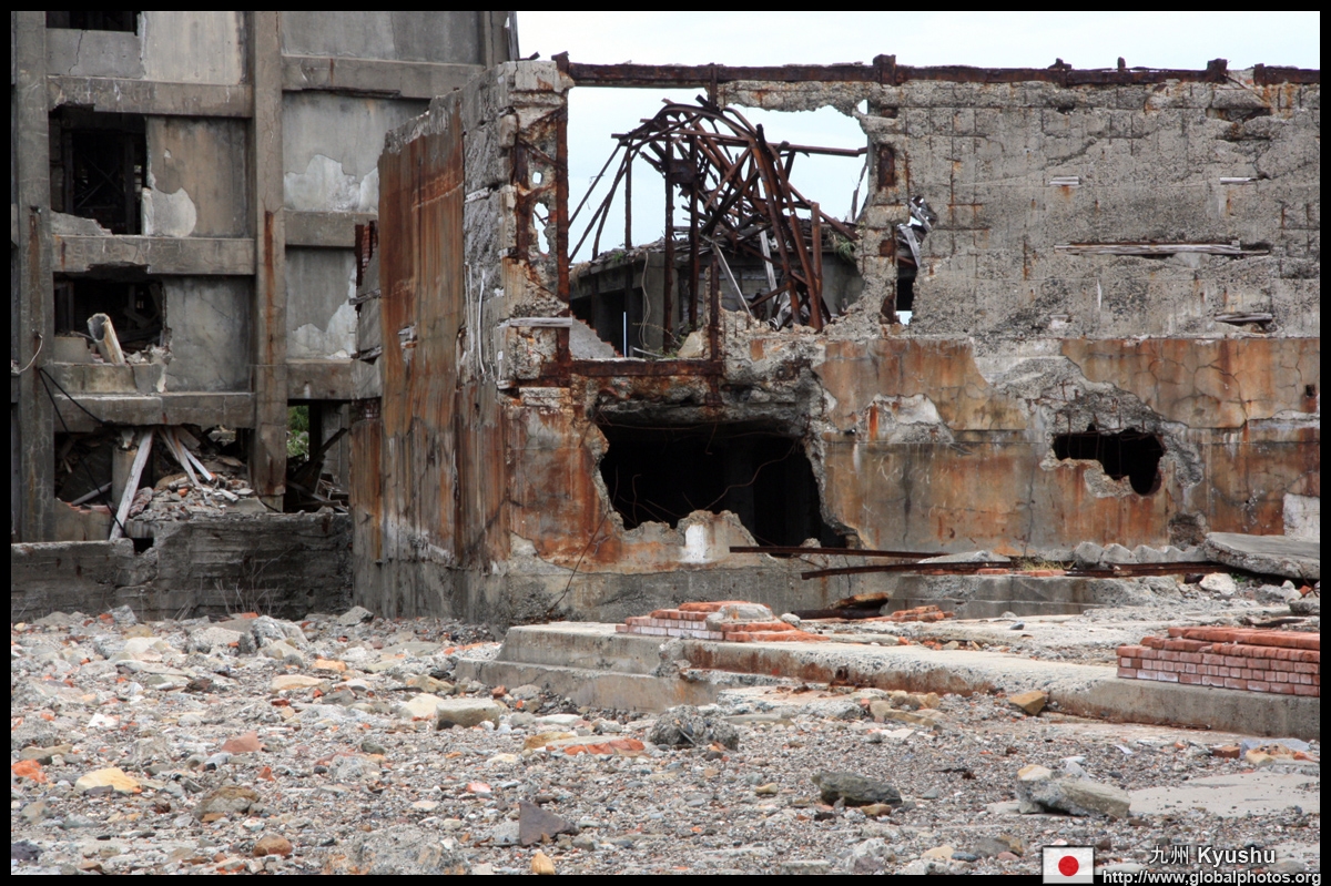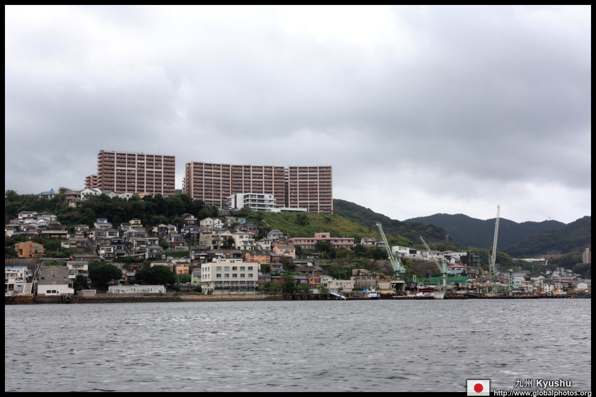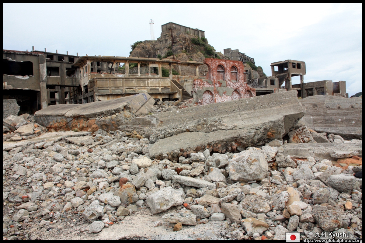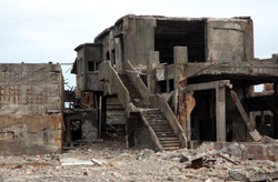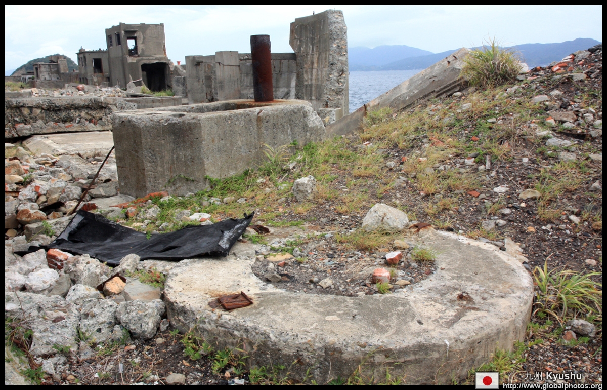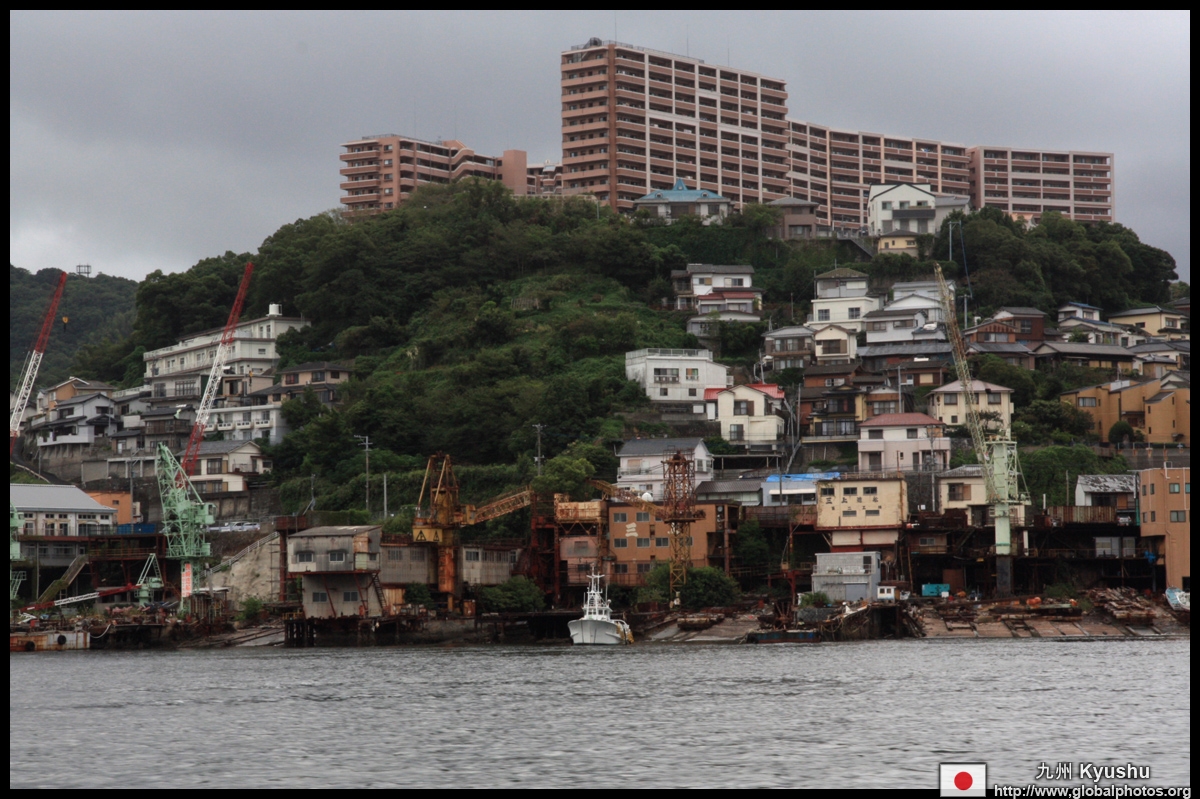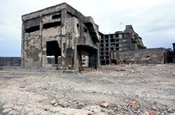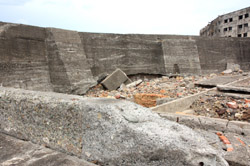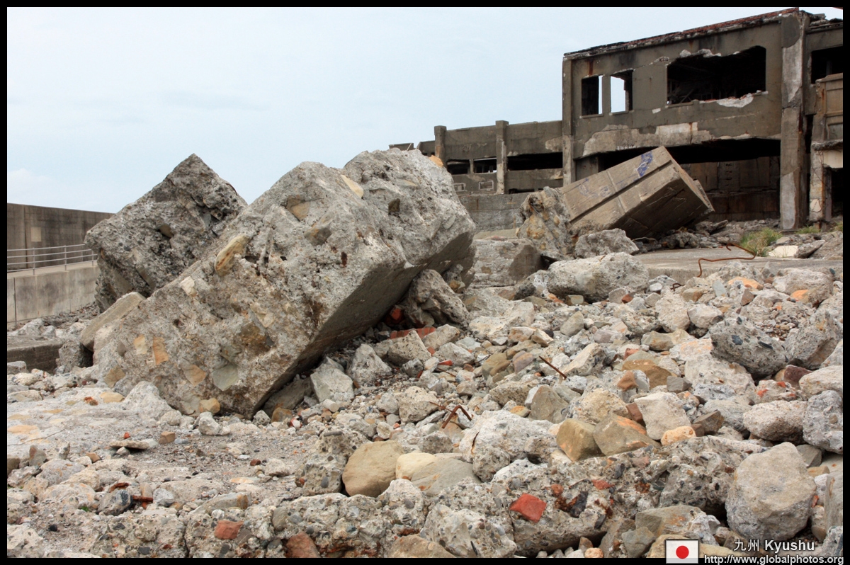 Gunkanjima is located about 20km ofshore from Nagasaki. Its prosperity began when coal was discovered in 1810 and Mitsubishi developed coal mining on the island in 1890. Miners lived in dormitories on the island and the population reached oveer 5200 in 1960. The mines closed in 1974 and the island was subsequently abandoned. Today, visitors can only reach the island via escorted local tour, although they give English pamphlets to non-Japanese speakers.