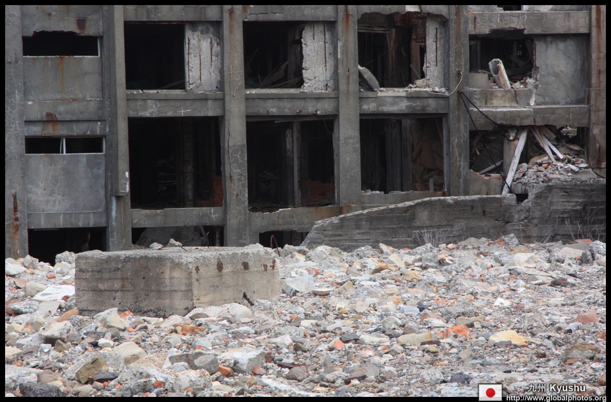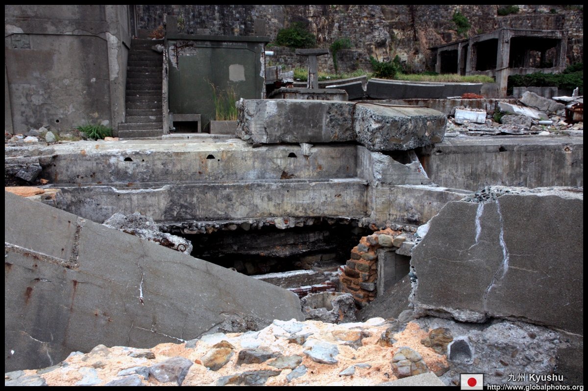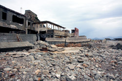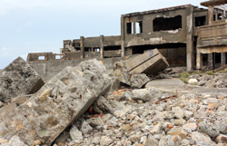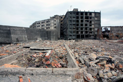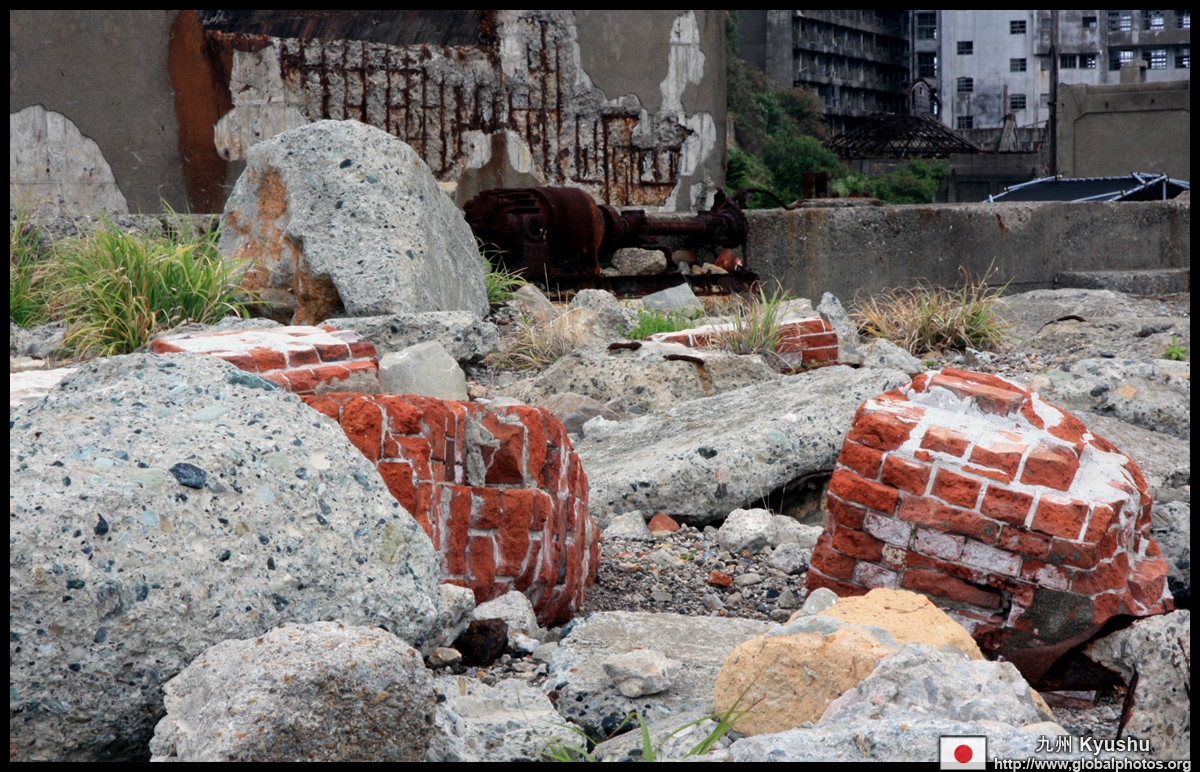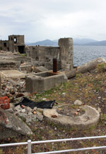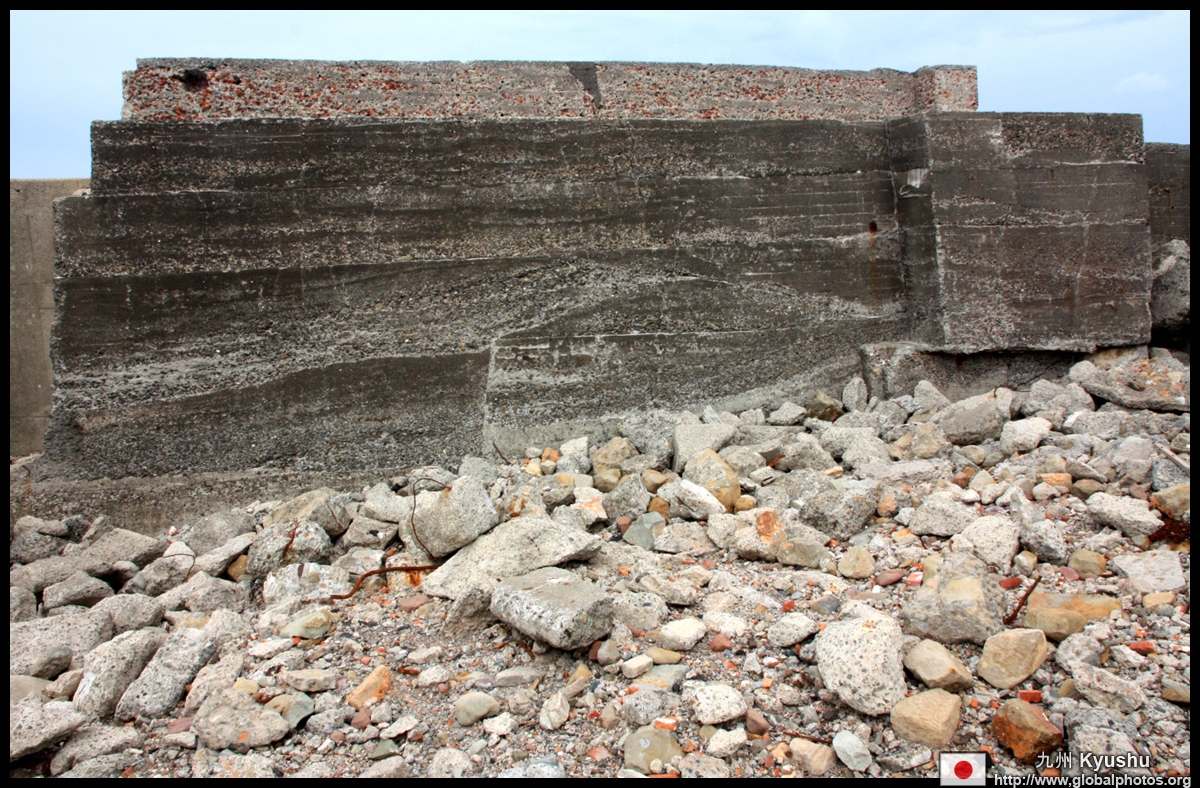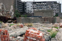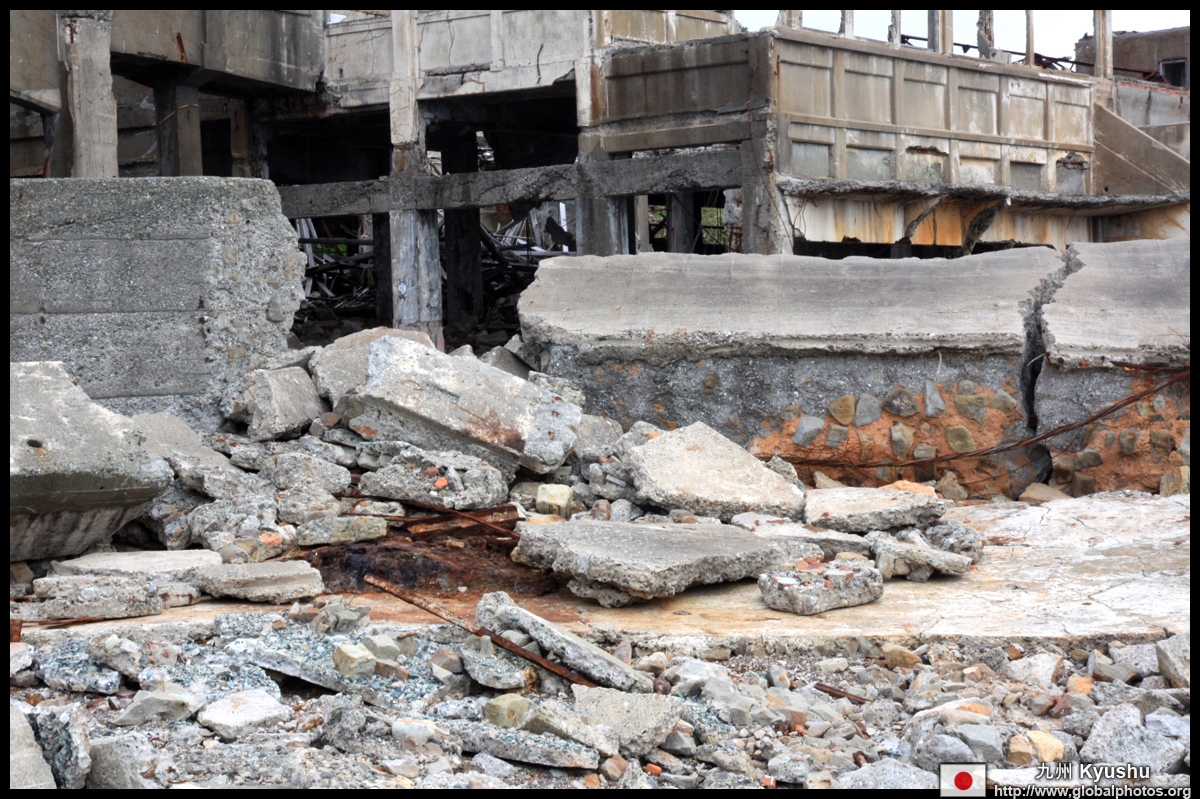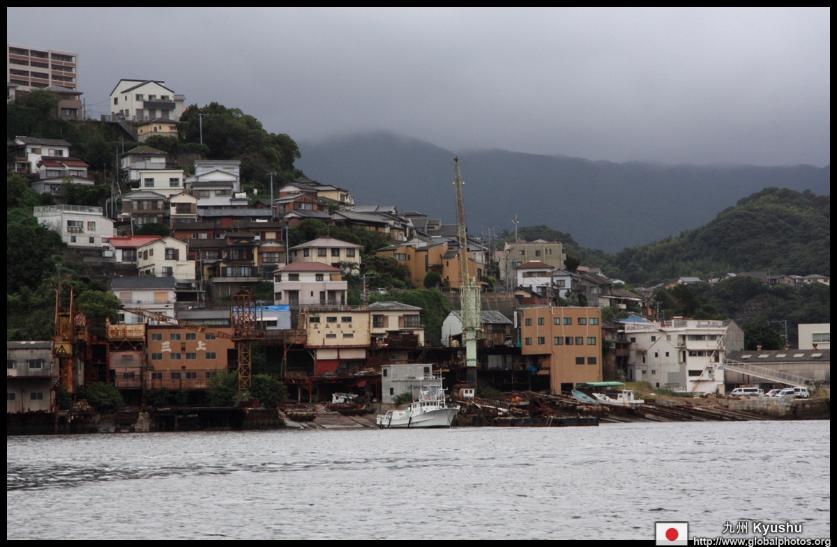 Gunkanjima is located about 20km ofshore from Nagasaki. Its prosperity began when coal was discovered in 1810 and Mitsubishi developed coal mining on the island in 1890. Miners lived in dormitories on the island and the population reached oveer 5200 in 1960. The mines closed in 1974 and the island was subsequently abandoned. Today, visitors can only reach the island via escorted local tour, although they give English pamphlets to non-Japanese speakers.