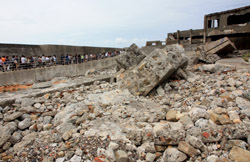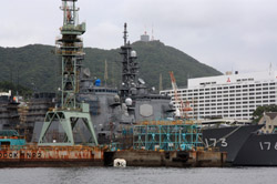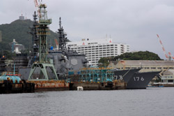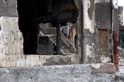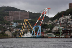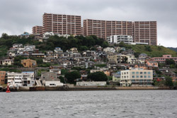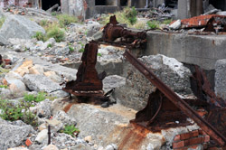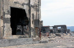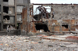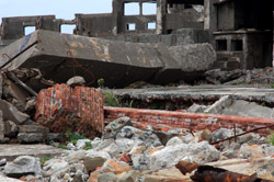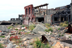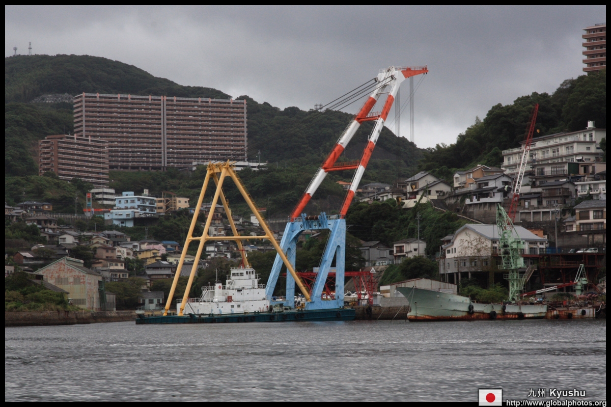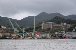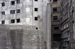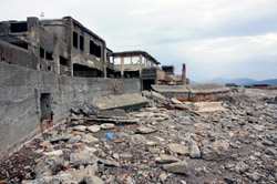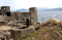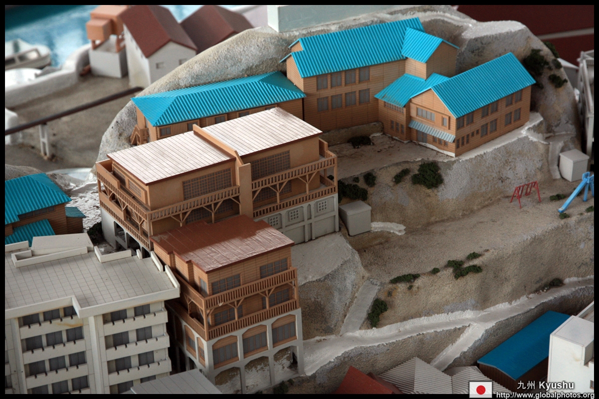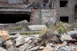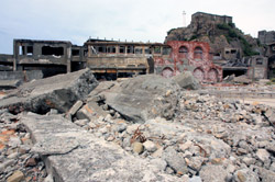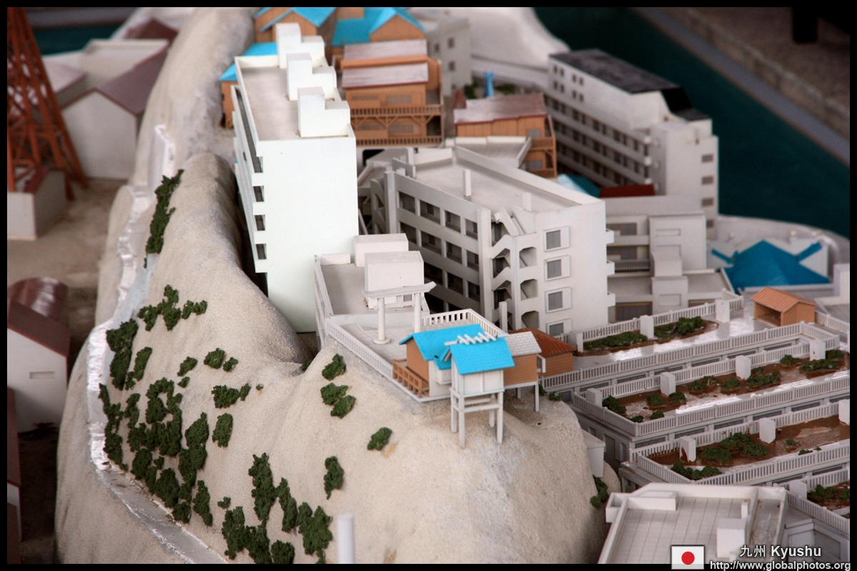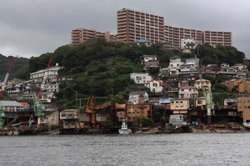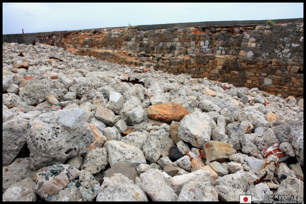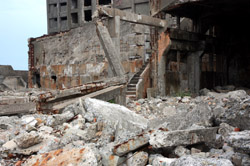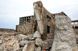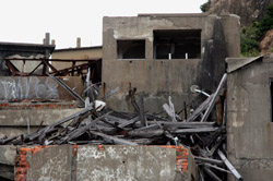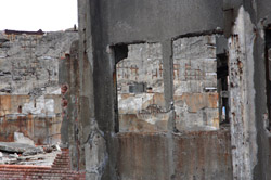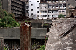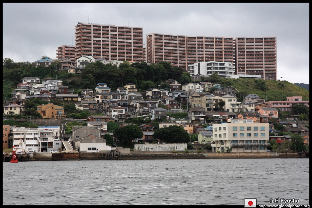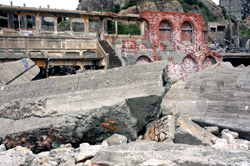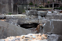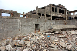 Gunkanjima is located about 20km ofshore from Nagasaki. Its prosperity began when coal was discovered in 1810 and Mitsubishi developed coal mining on the island in 1890. Miners lived in dormitories on the island and the population reached oveer 5200 in 1960. The mines closed in 1974 and the island was subsequently abandoned. Today, visitors can only reach the island via escorted local tour, although they give English pamphlets to non-Japanese speakers.