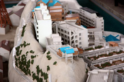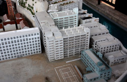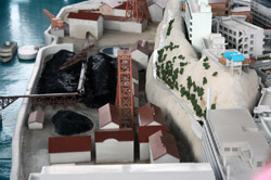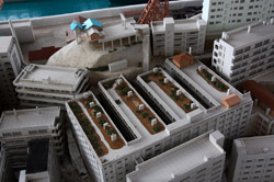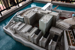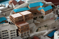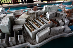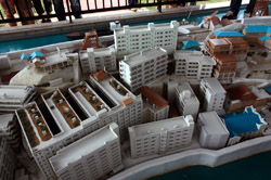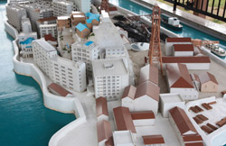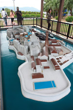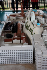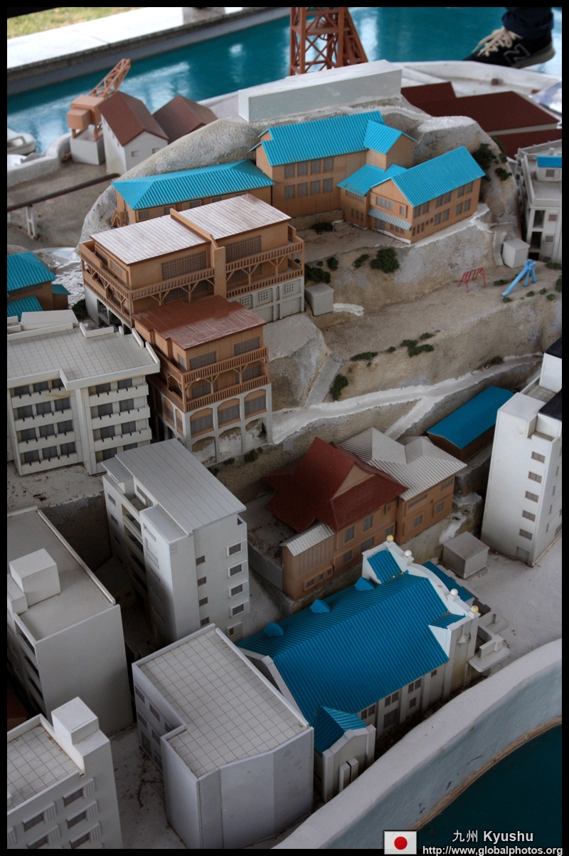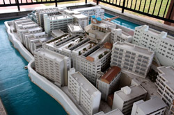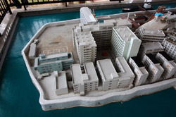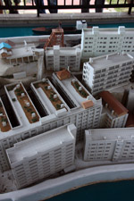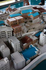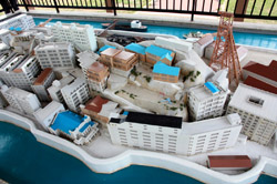 At a pit stop island, the guide explained the various buildings on a scale model of the island. It was fairly self-contained, with schools, a hospital, worker housing, temple, and cinema.