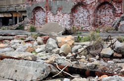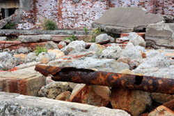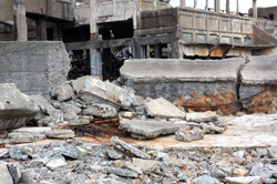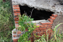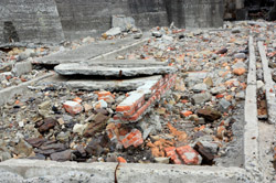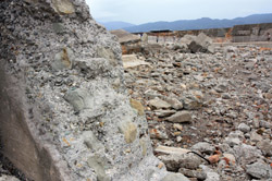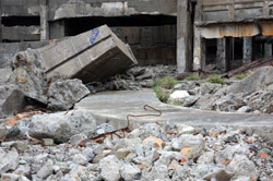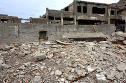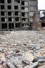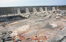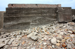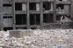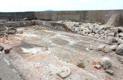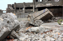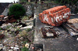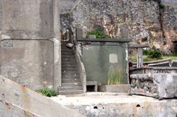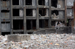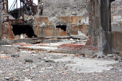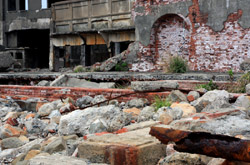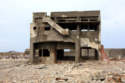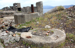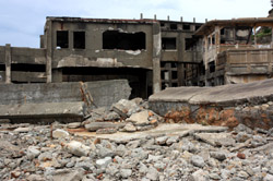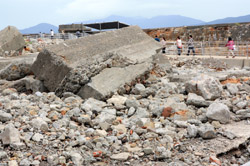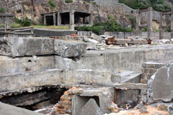 Visitors can only land at one pier, and walk along 3 observation areas in a defined path. Nobody can actually venture into the abandoned site for safety reasons. In the distance are the elementary and junior high schools.