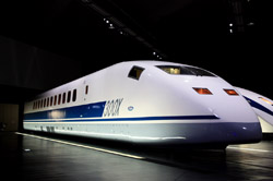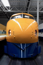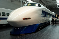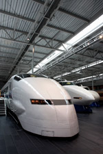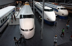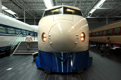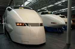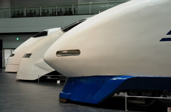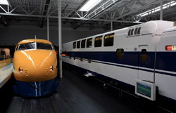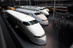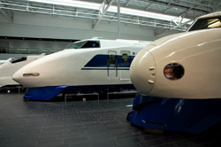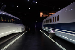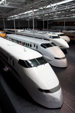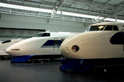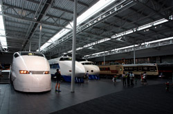 Several generations of Shinkansen trains are on display in the main hall.