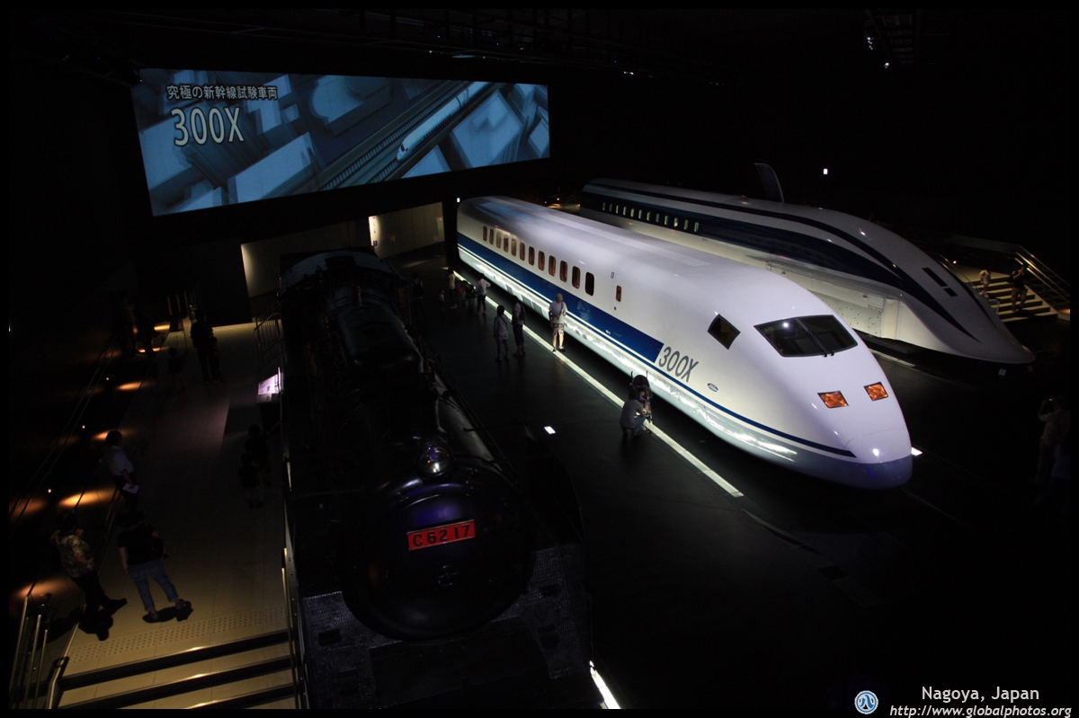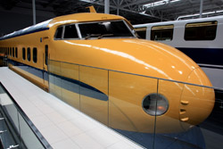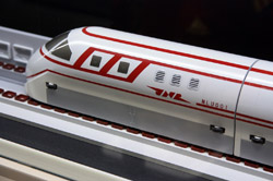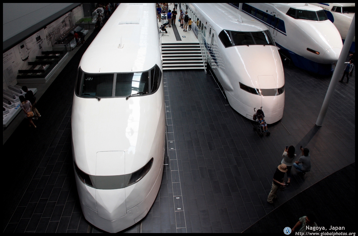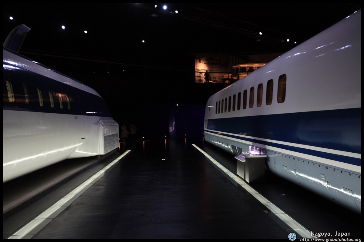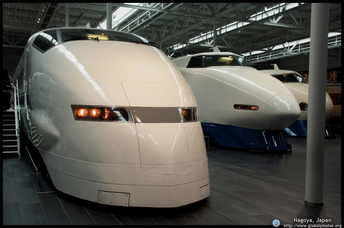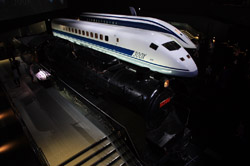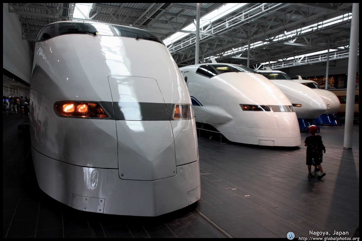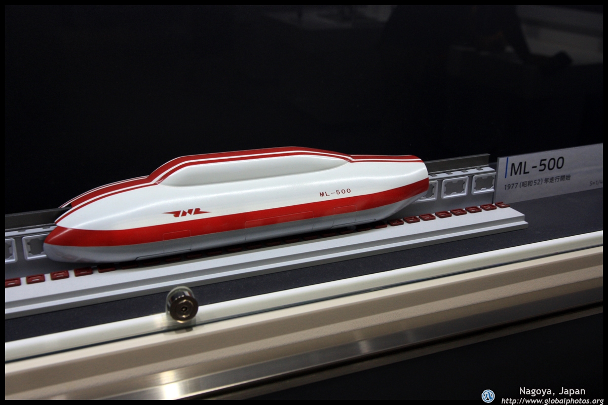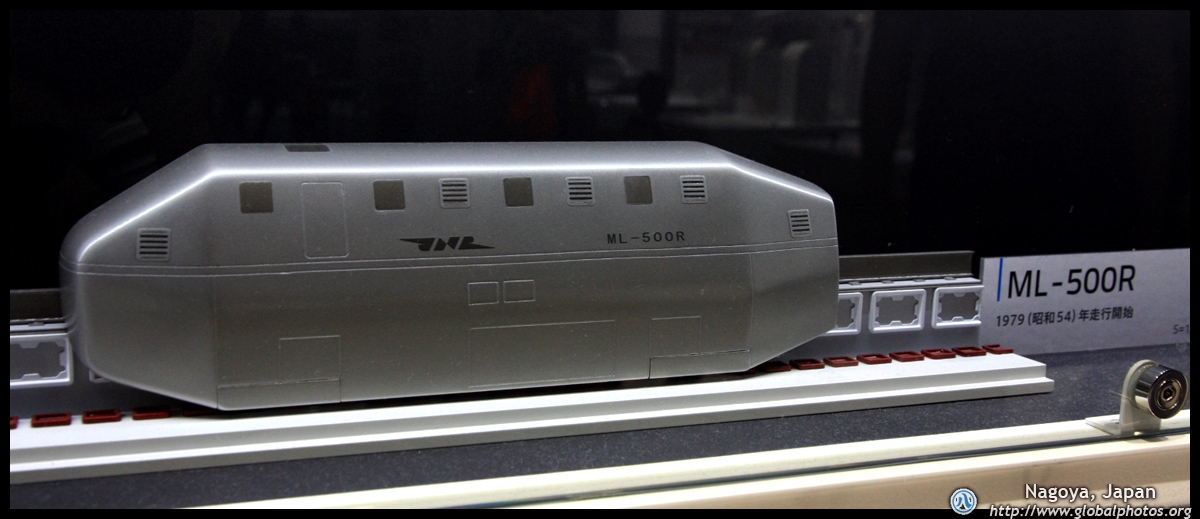 Various prototype designs of maglev trains are on display. The Japanese were already researching this technology in the 1970's.