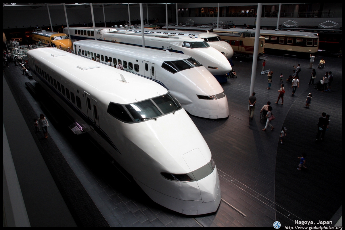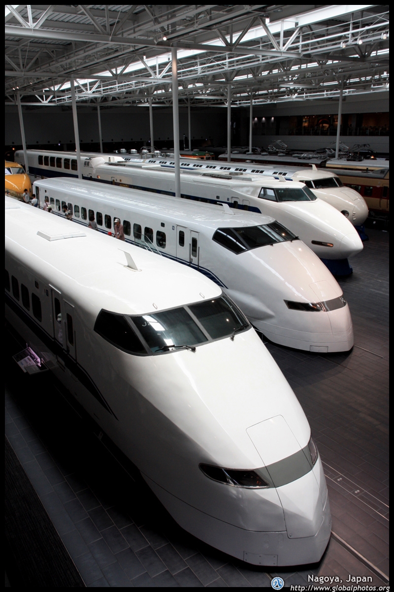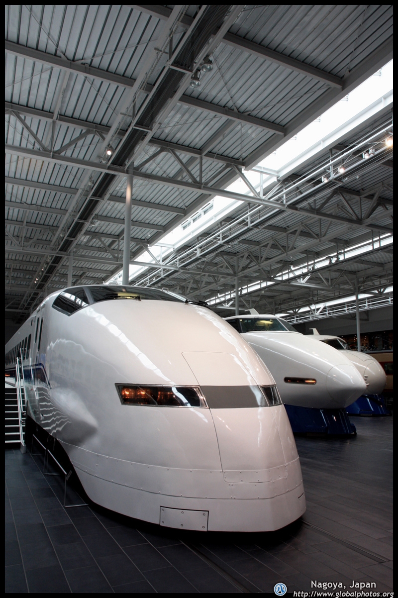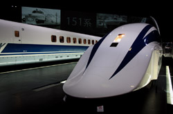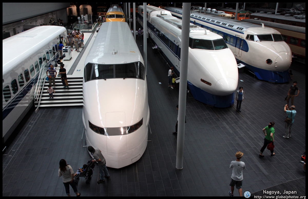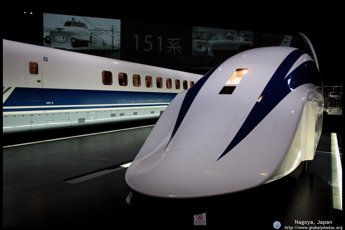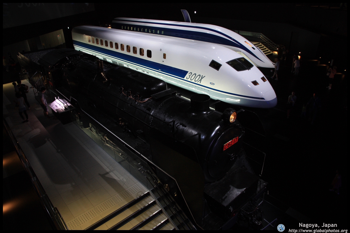 Various prototype designs of maglev trains are on display. The Japanese were already researching this technology in the 1970's.