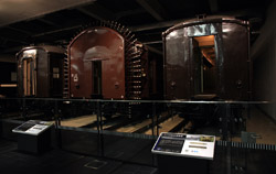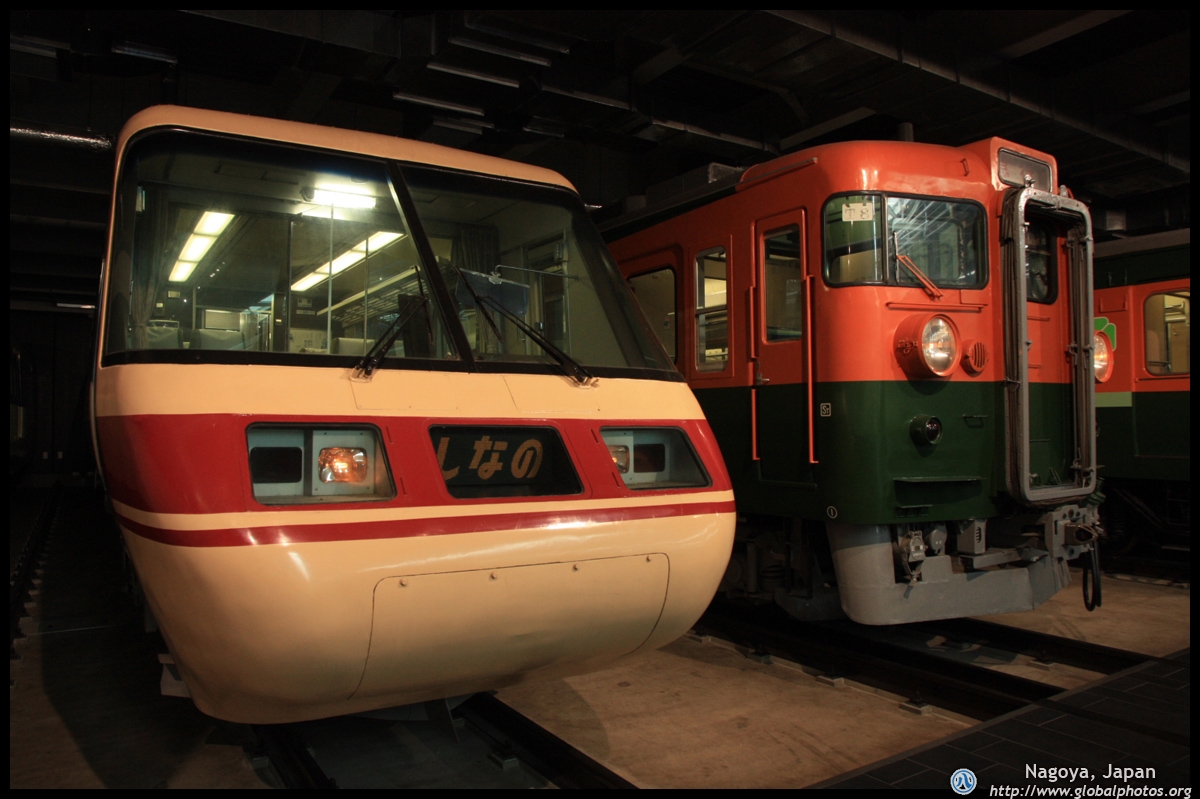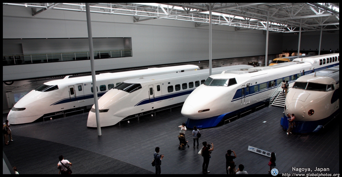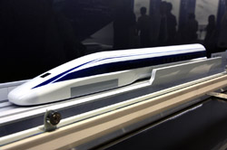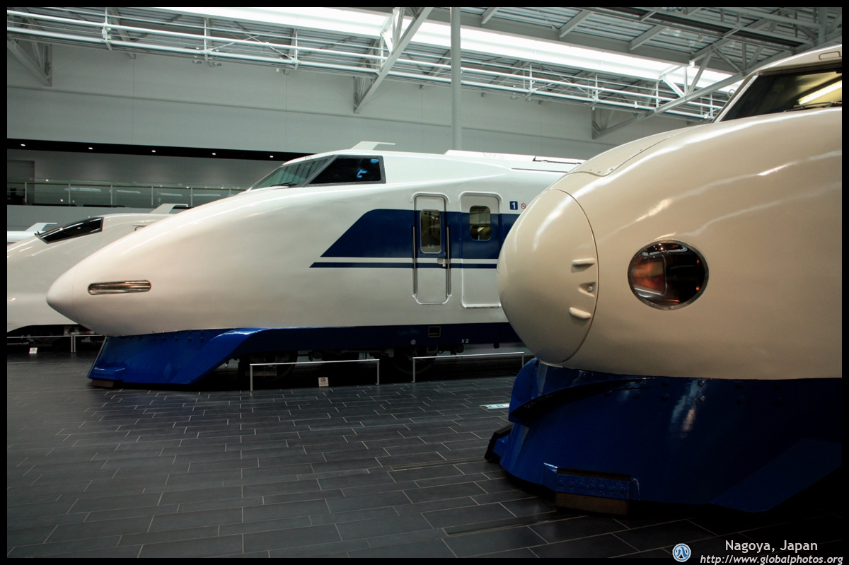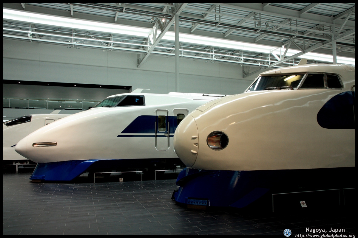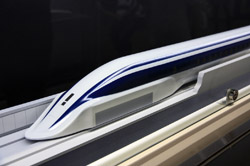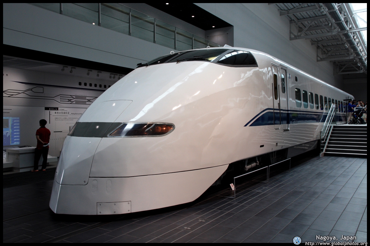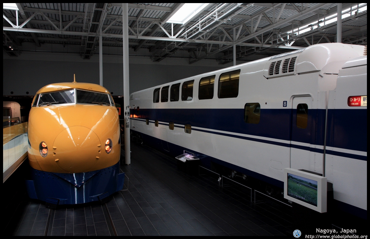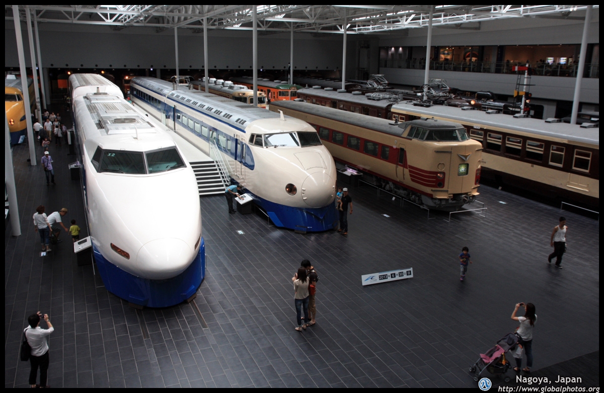 Various prototype designs of maglev trains are on display. The Japanese were already researching this technology in the 1970's.