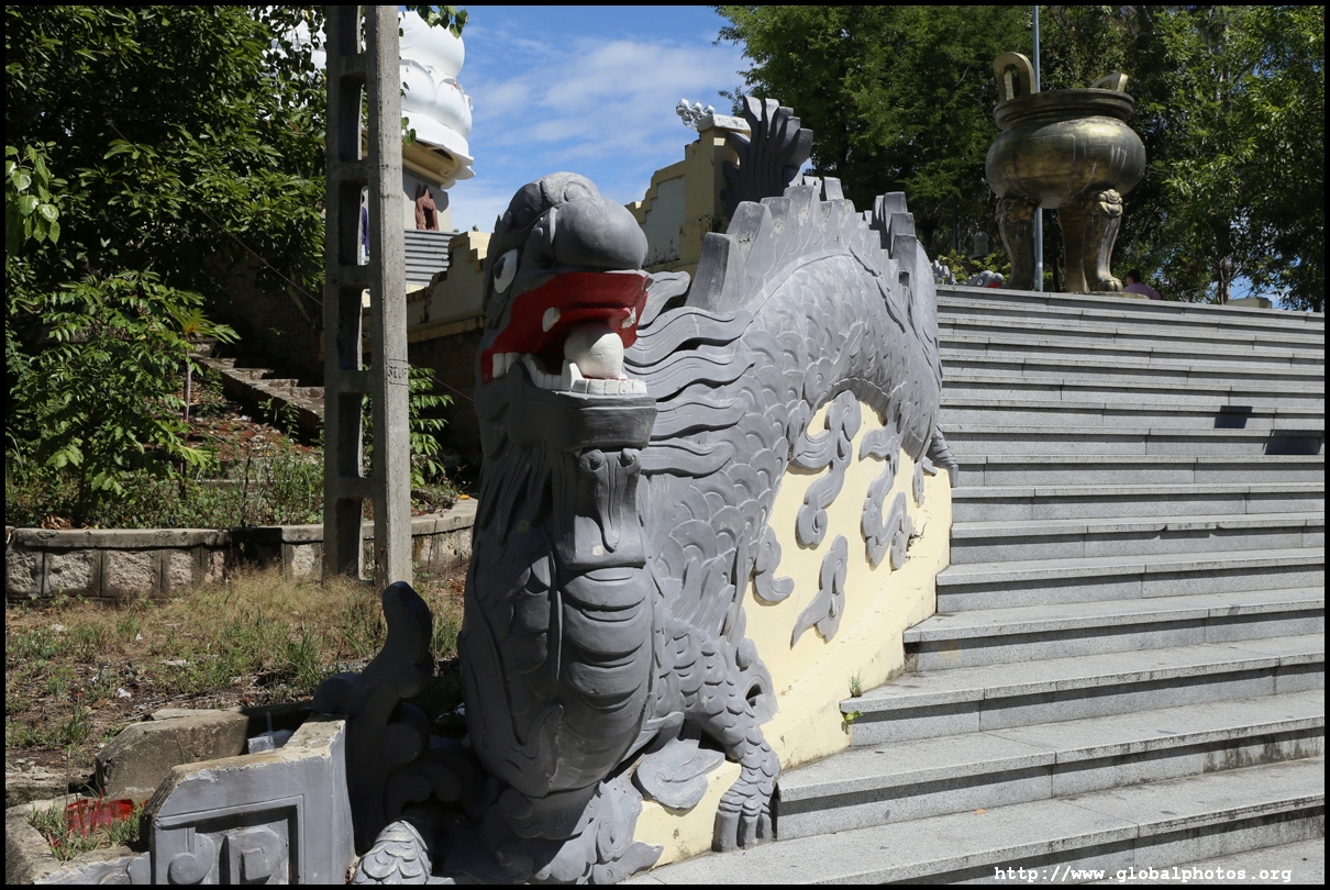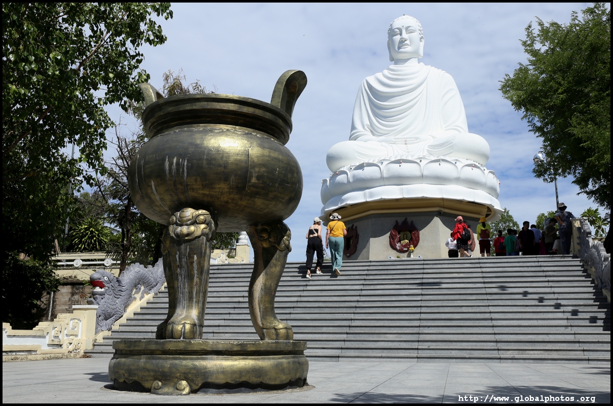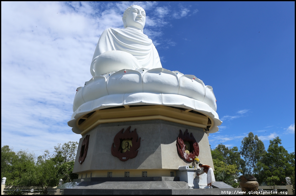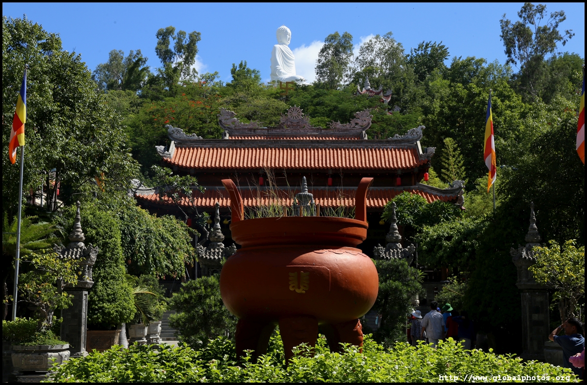 Located along the main road out of Nha Trang into the mountains just beyond the train station, Long Son Temple is built along the hillside and dates from 1900, with the worshipping facility at street level while 2 large Buddha statues sit uphill, first in a reclining position, followed by a sitting one at the top of the hill.