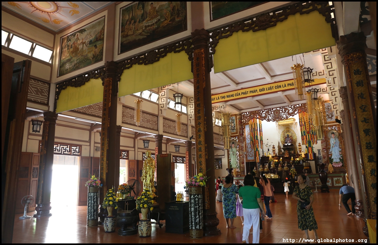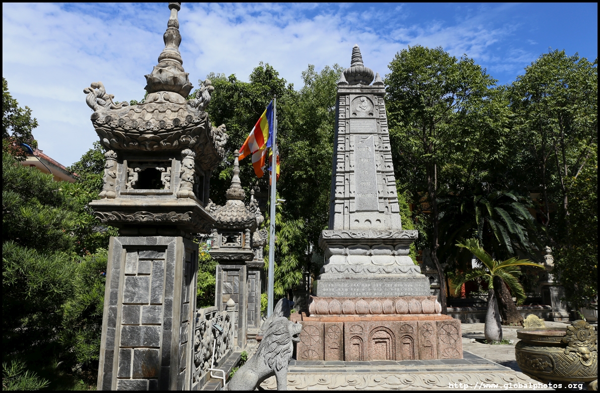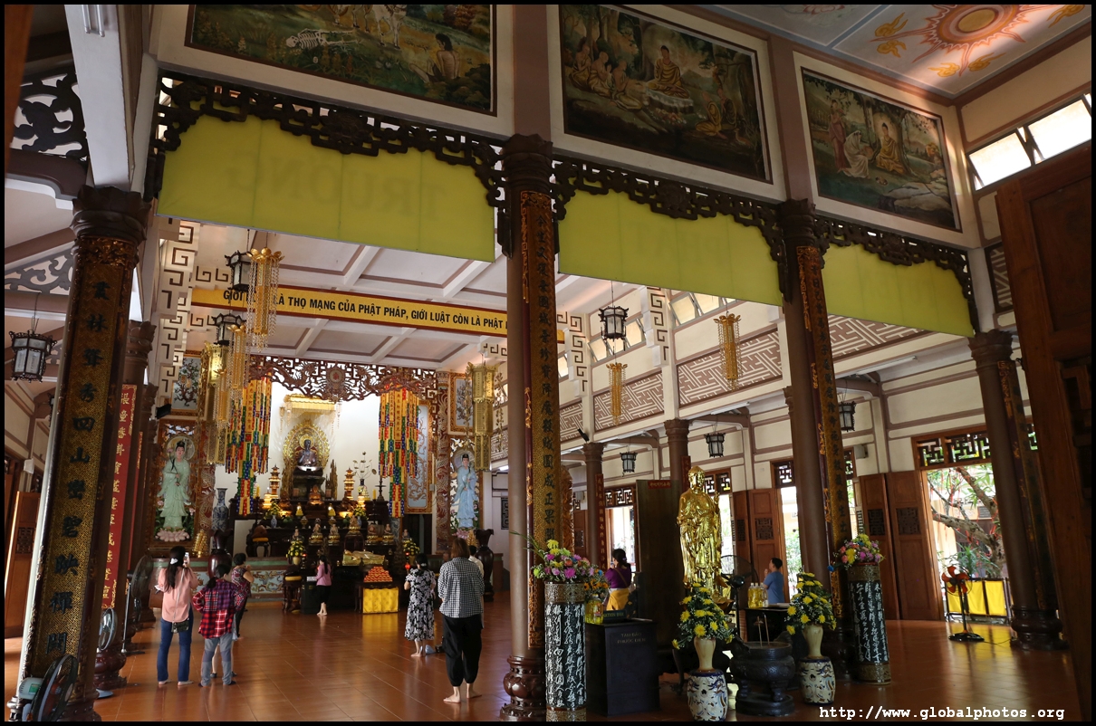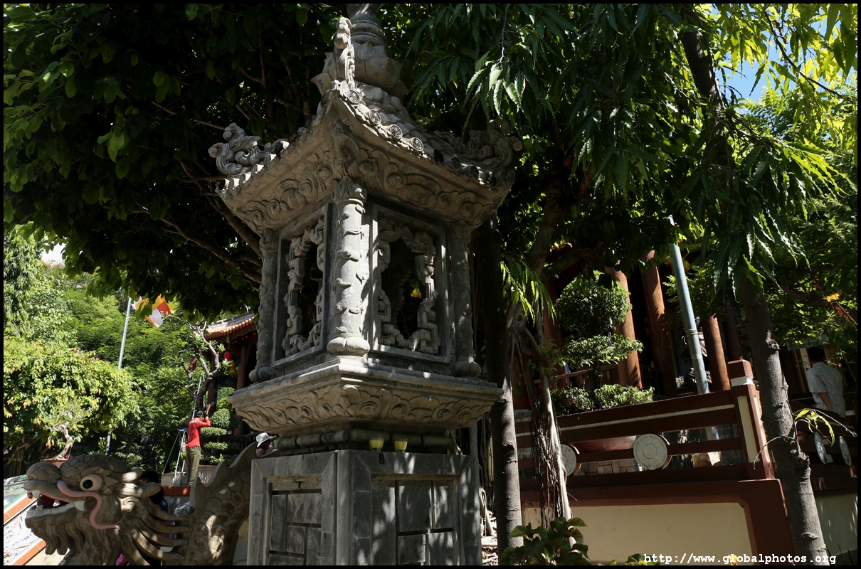 Located along the main road out of Nha Trang into the mountains just beyond the train station, Long Son Temple is built along the hillside and dates from 1900, with the worshipping facility at street level while 2 large Buddha statues sit uphill, first in a reclining position, followed by a sitting one at the top of the hill.