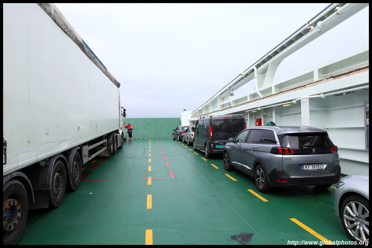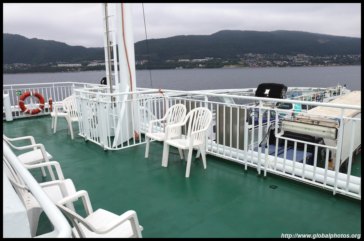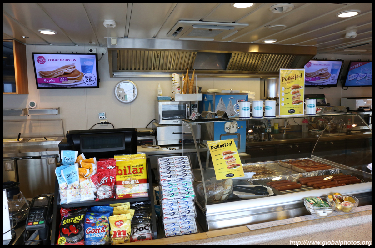 Norway's car ferries can offer a lot of nice amenities on board. This one has a large lounge area where you can grab a bite and enjoy the scenery. You are not trapped in your car at all.