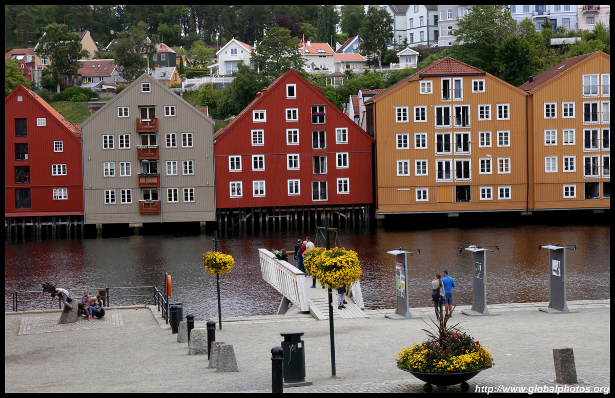 The city is built around the mouth of the Nidelva River. A promenade extends along one stretch of river next to the main train station, offering nice views of the colourful buildings along this waterfront.