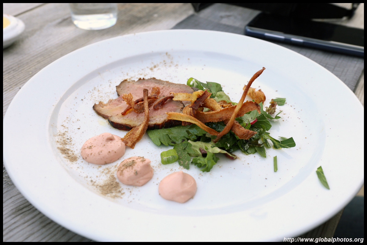 I settled in a riverfront restaurant to enjoy their tasting menu. Of interest was the whale meat, which was heavily marinated. After this dish, I still don't really know what whale tastes like.