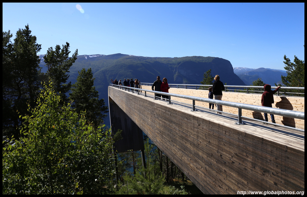 Although most of this road is closed for the winter, the section from Stegastein is open year-round. This viewpoint juts out 30m from the cliffside, 650m above the Aurlandsfjord.