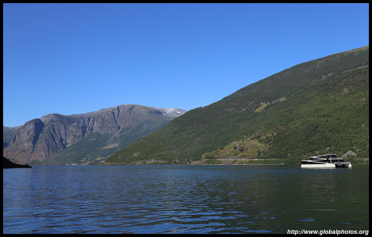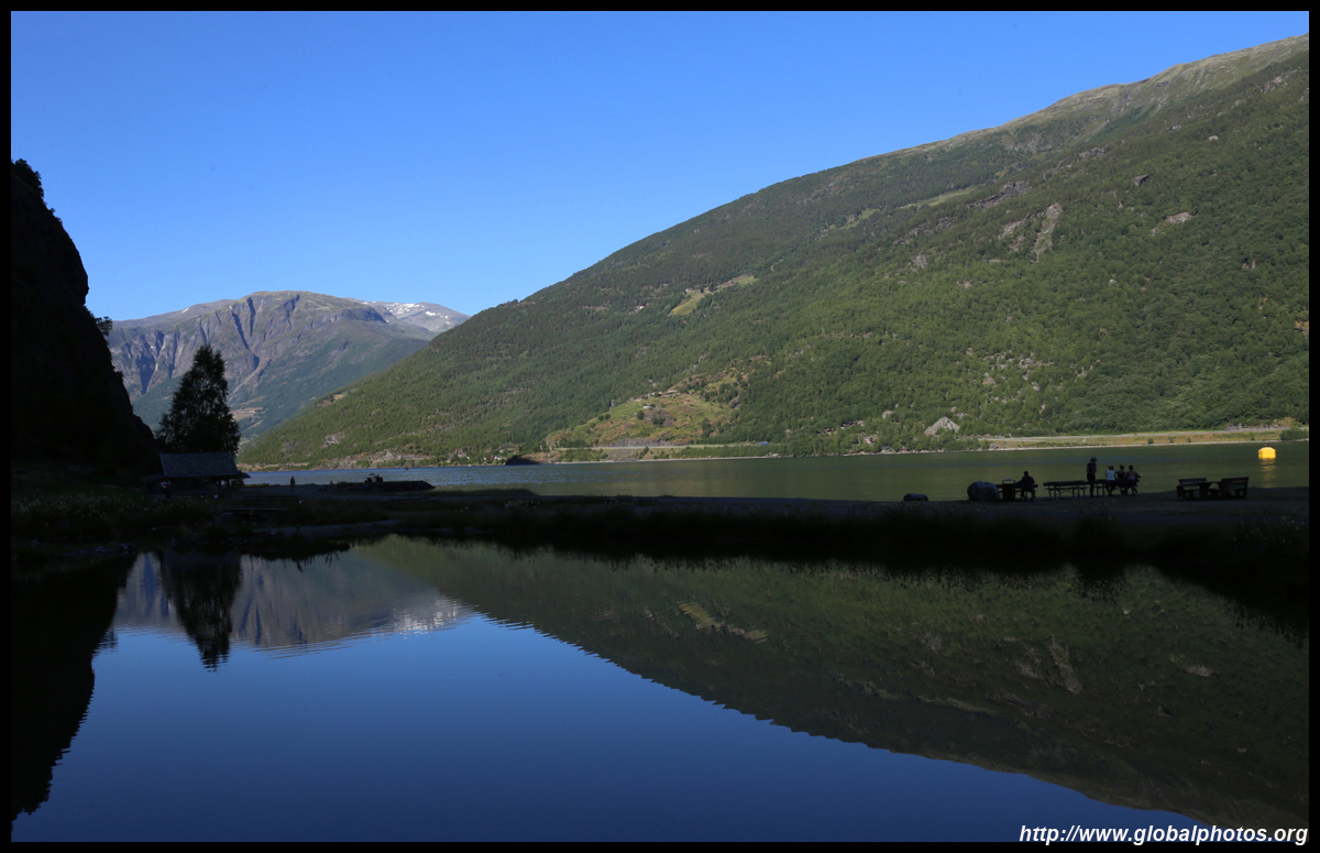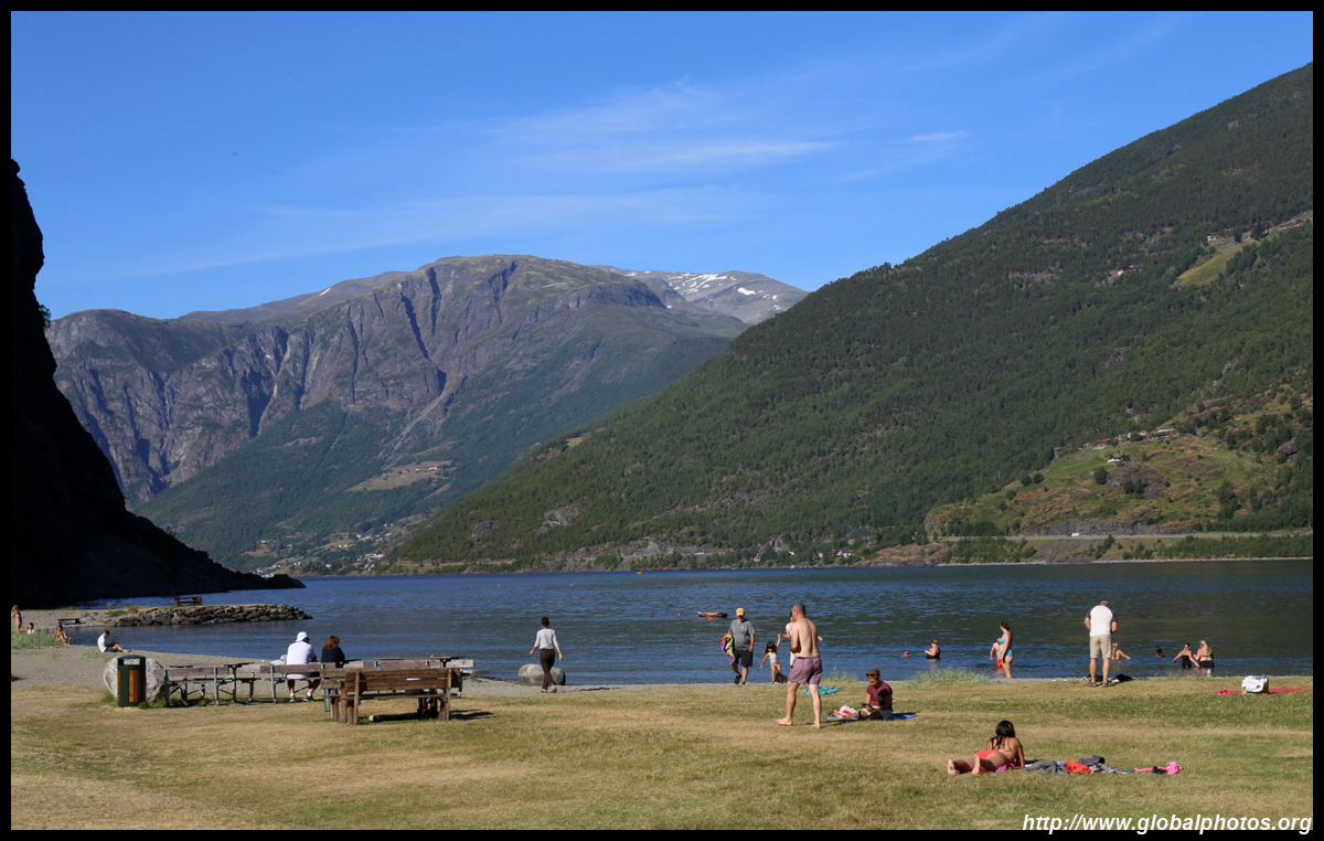 Further down the fjord at Flam, there is a busier beach with very calm waters.