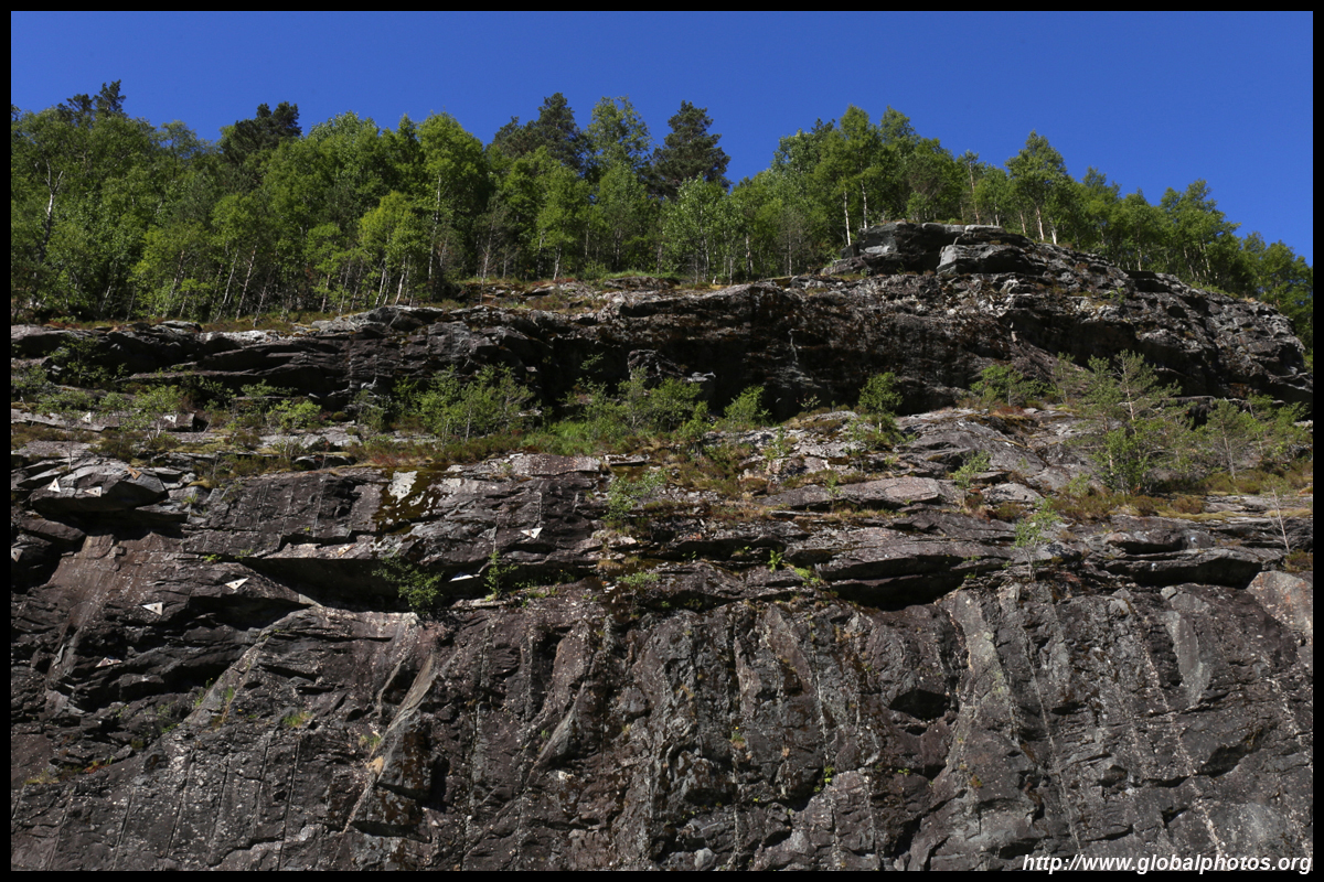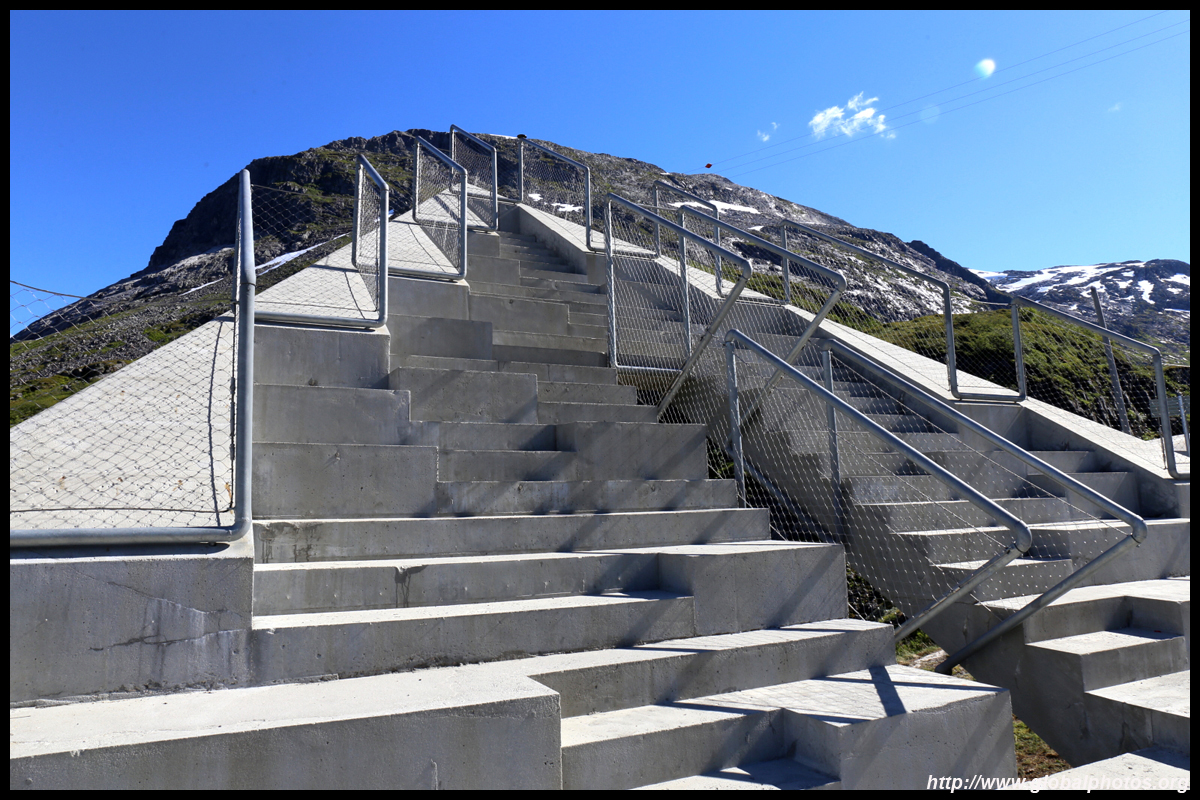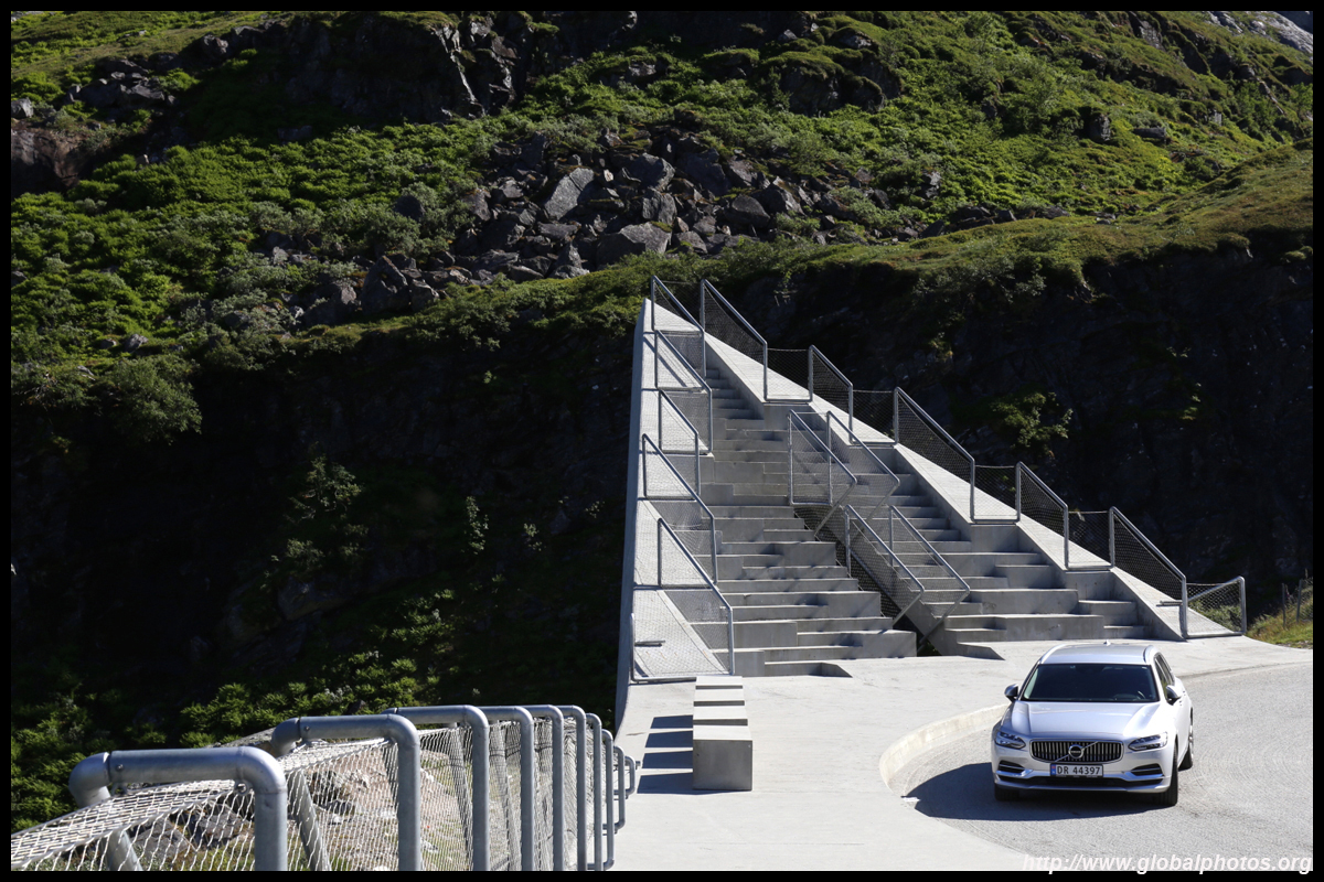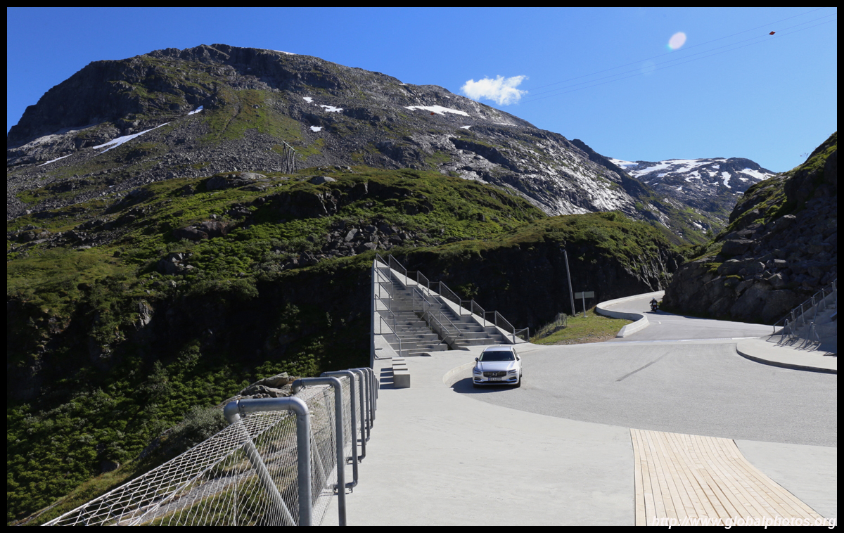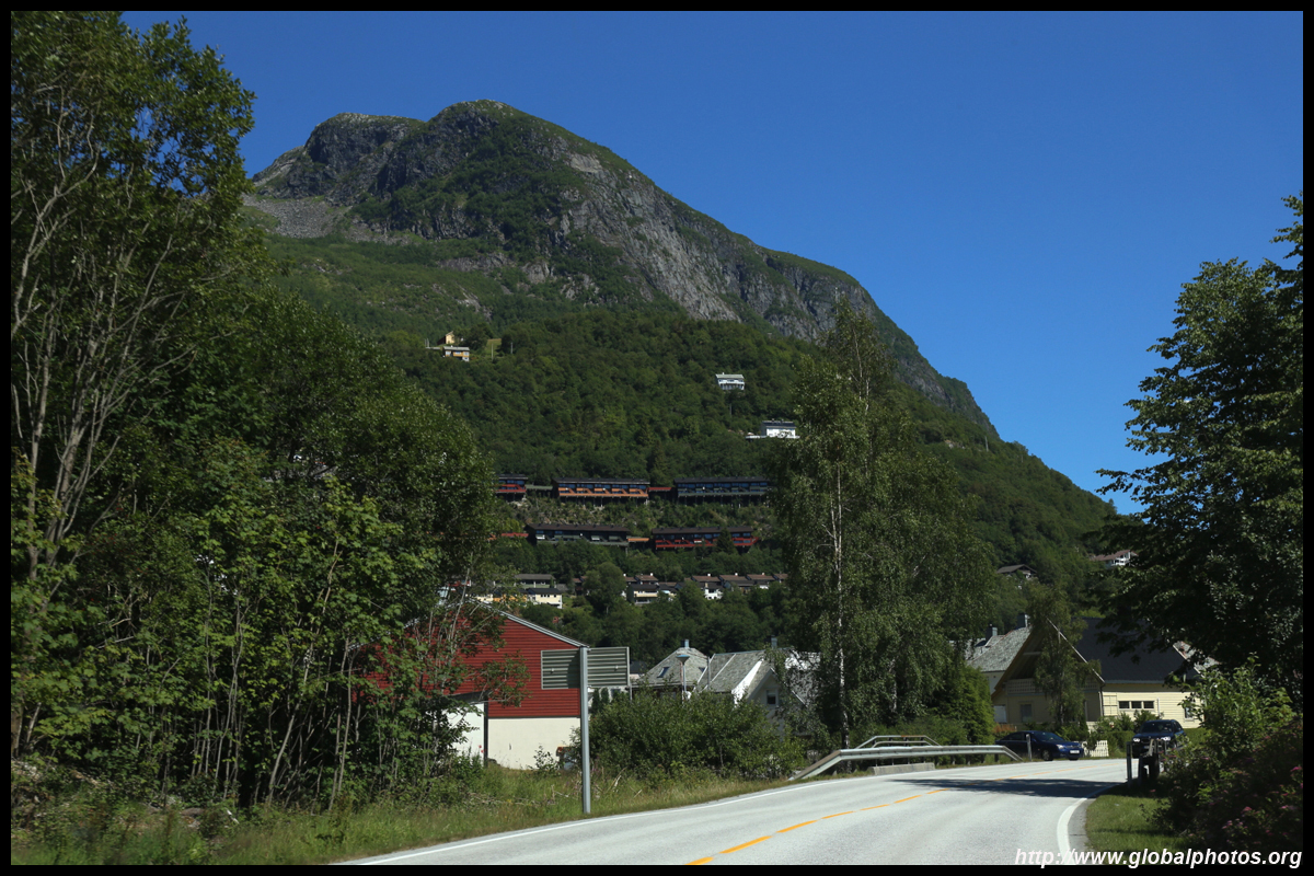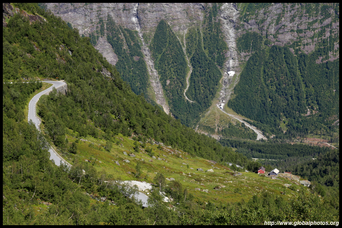 The road will start zig-zagging uphill. This is the Gaularfjellet, one of the country's 18 scenic routes. Originally requested in 1853, it finally opened in 1938 and became a major transport route across the mountain. Stop at the Utsikten observation area where you can admire the road's ascent as well as the mountain backdrop at 700m above sea level.