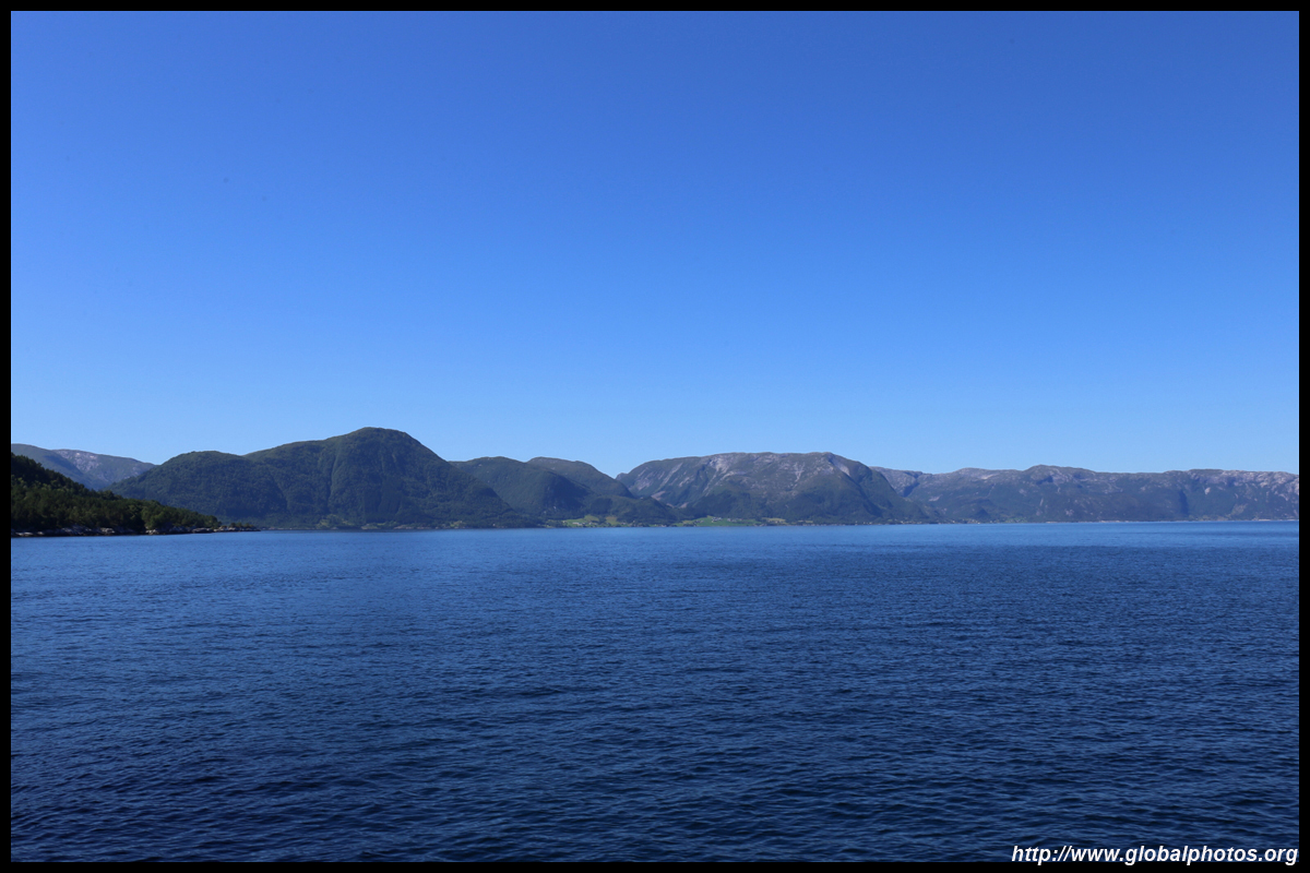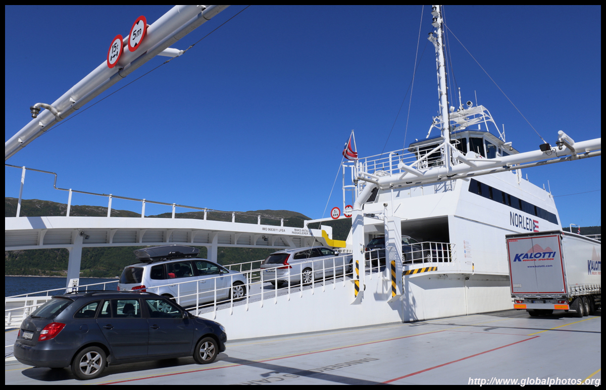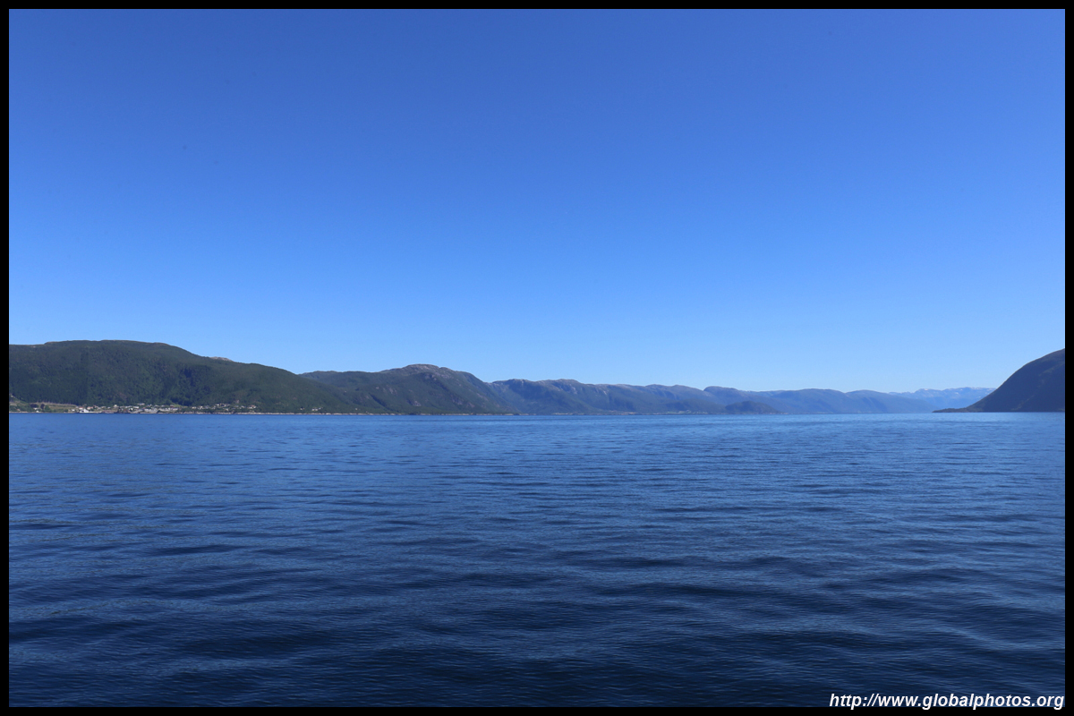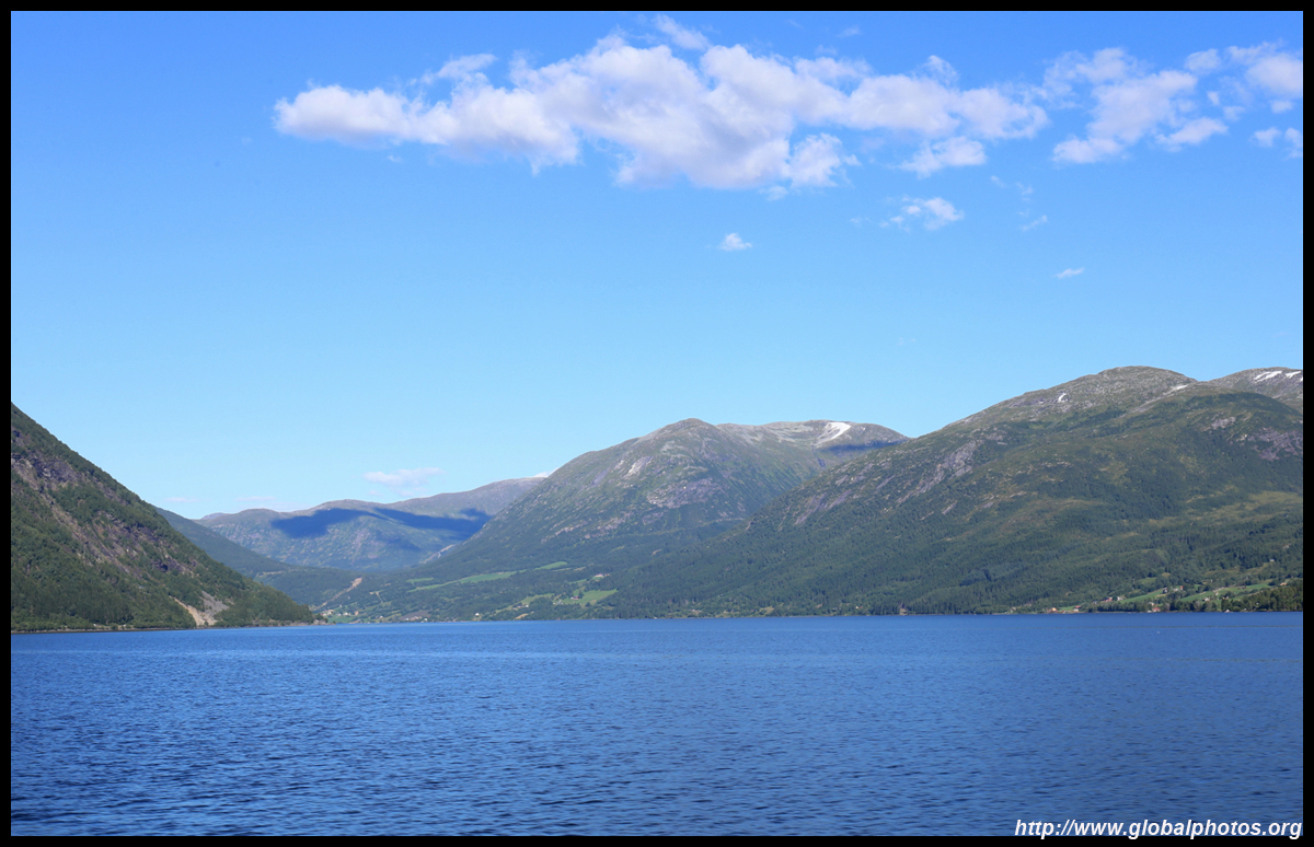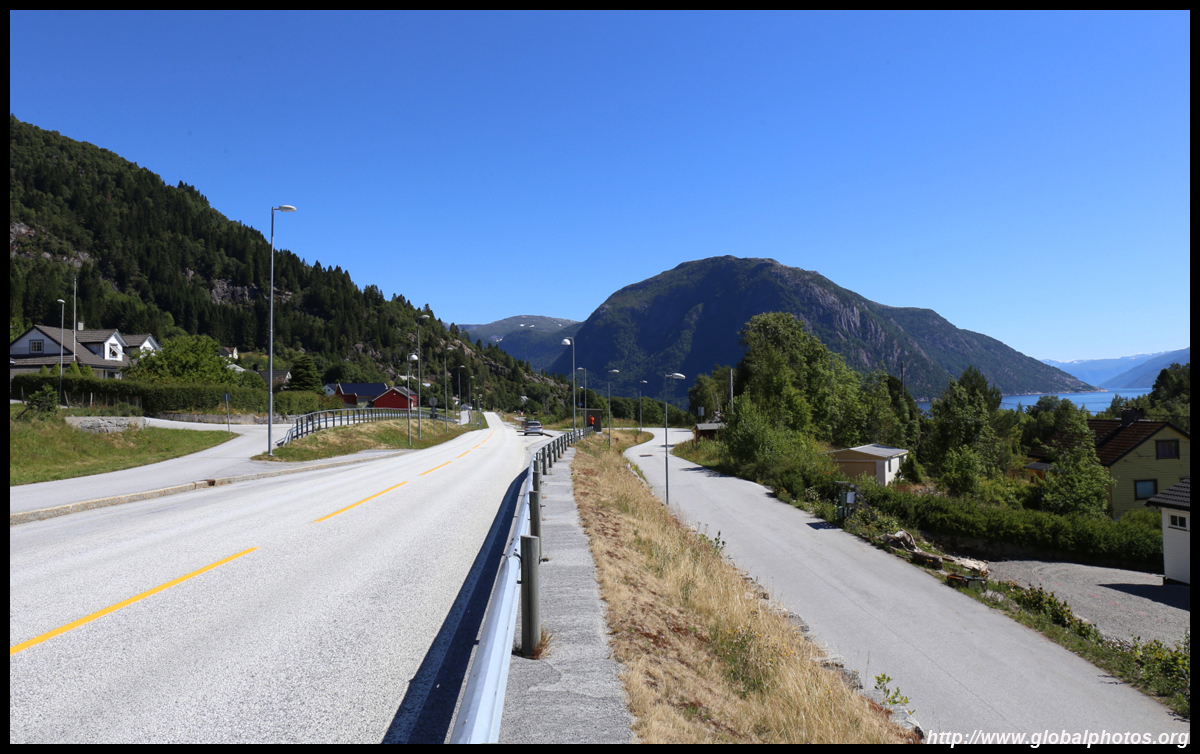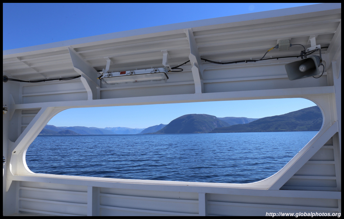 The road turns into a ferry at Ytre Oppedal. Many highways in the country pass through bodies of water, and regular ferries transport both vehicles and people across, where the road resumes.