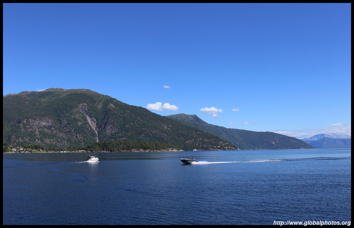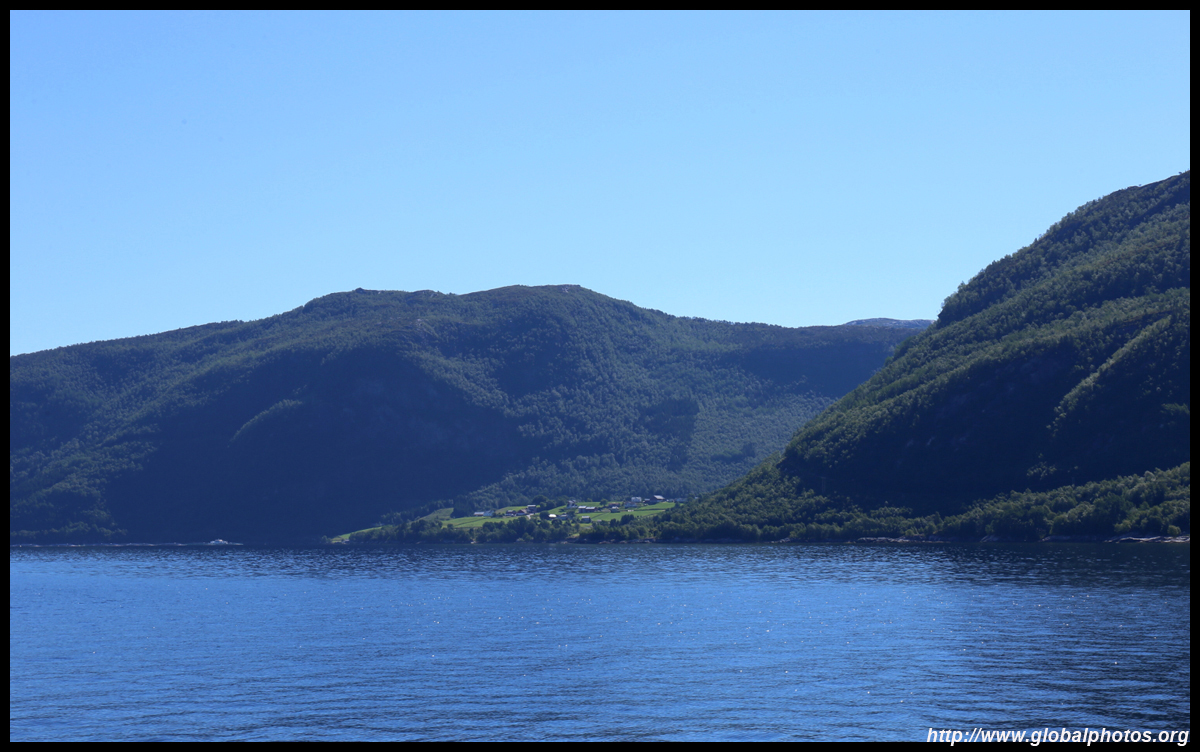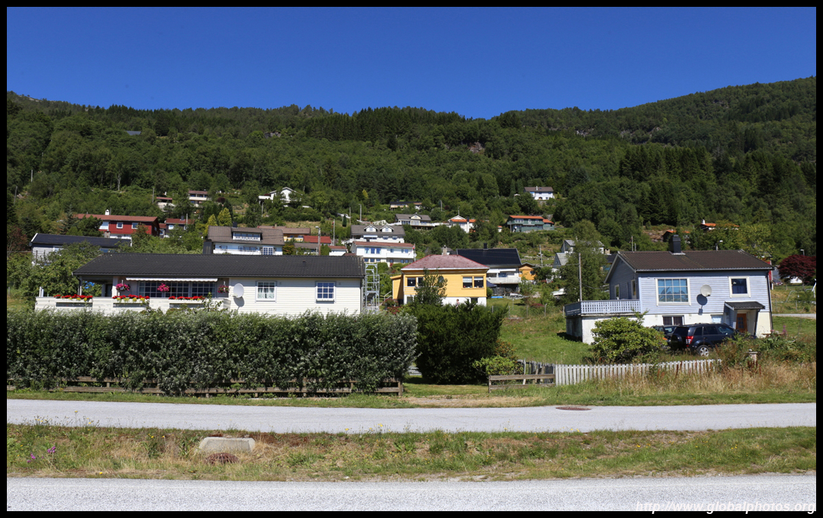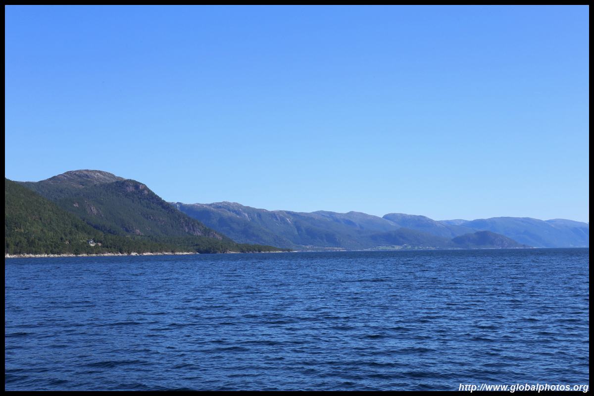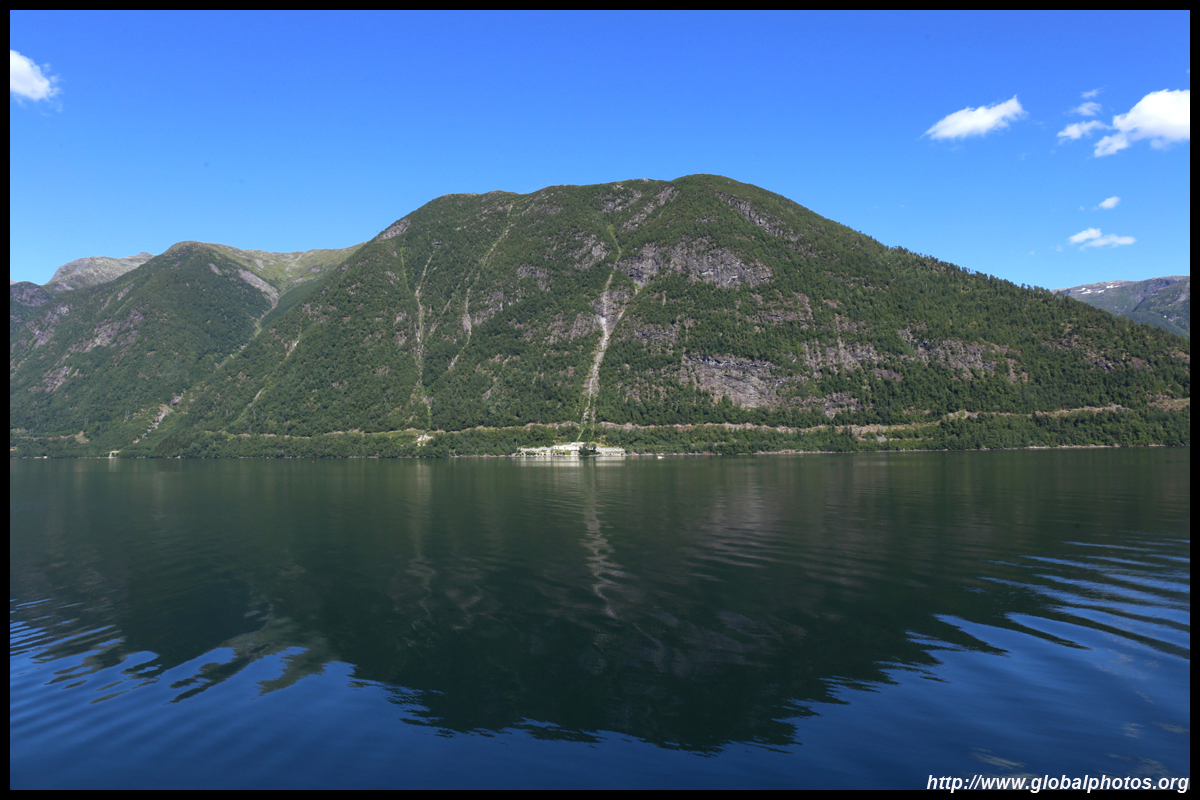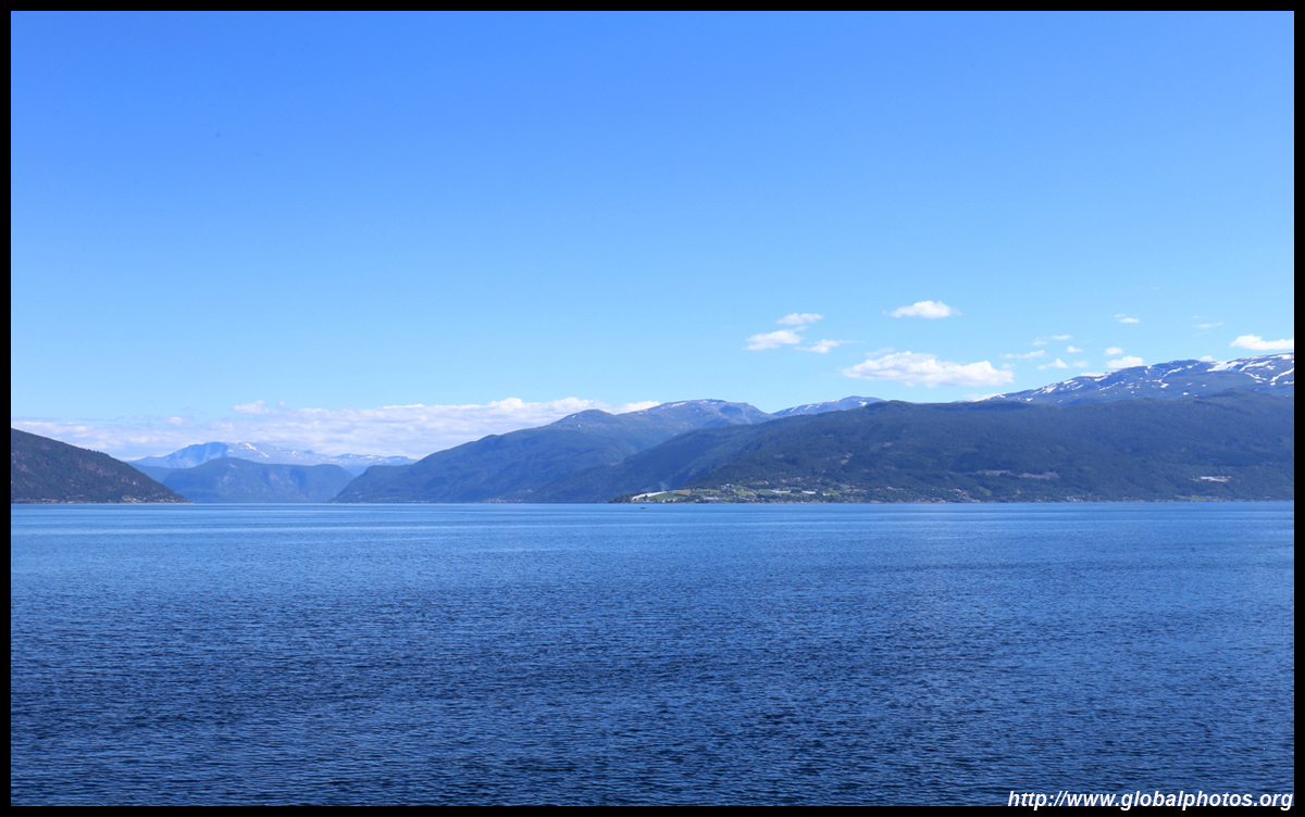 The road turns into a ferry at Ytre Oppedal. Many highways in the country pass through bodies of water, and regular ferries transport both vehicles and people across, where the road resumes.